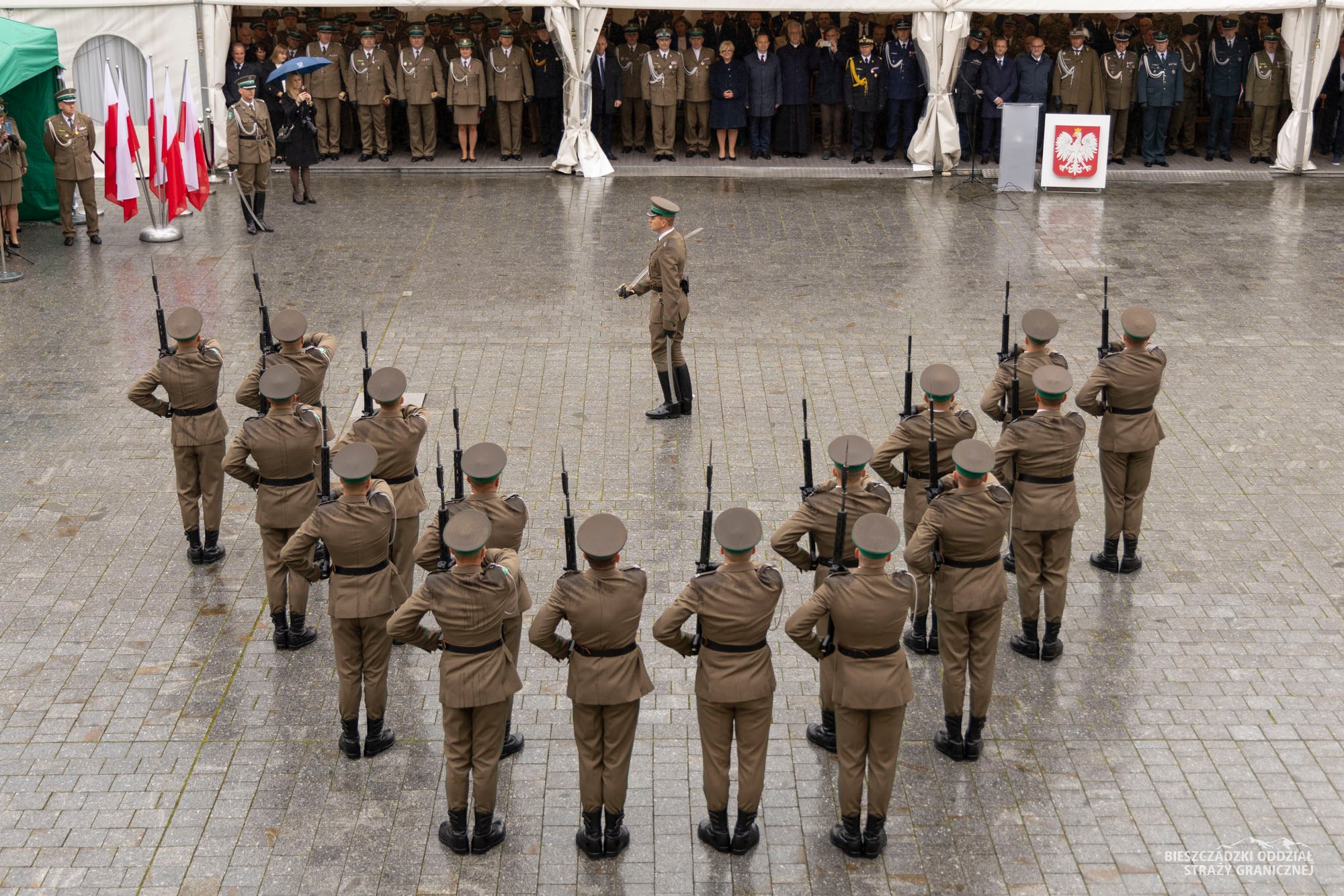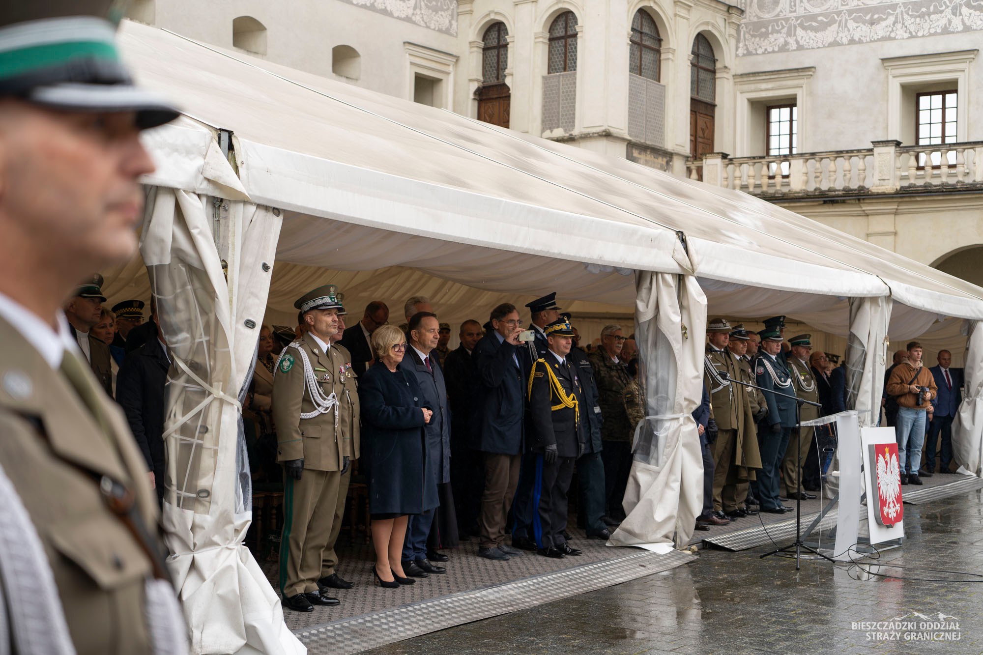 Oficjalna część wydarzenia odbyła się na dziedzińcu zamku w Krasiczynie. W obchodach uczestniczyli m.in. Wojewoda Podkarpacki Teresa Kubas-Hul, Marszałek Województwa Podkarpackiego Władysław Ortyl, samorządowcy, przedstawiciele służb granicznych Ukrainy, kierownicy służb i instytucji z Podkarpacia, byli komendanci BiOSG oraz liczne grono funkcjonariuszy i pracowników. Powiat Sanocki reprezentowali wicestarosta Damian Biskup oraz Elżbieta Kokoszka – dyrektor Zespołu Szkół nr 5 w Sanoku, przy której powstają klasy mundurowe.