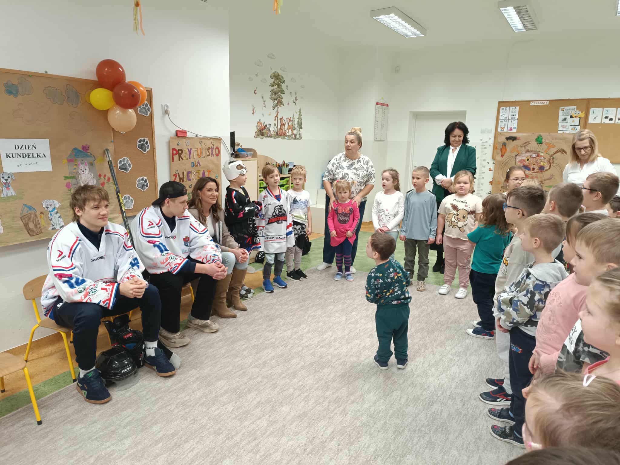 28 października dzieci wraz z nauczycielkami i zawodnikami STS Sanok przygotowały krótkie zajęcia edukacyjne na temat psów i kotów. Rozmawiały o potrzebach zwierząt, właściwej opiece oraz o tym, jak ważna jest empatia i odpowiedzialność wobec czworonogów.