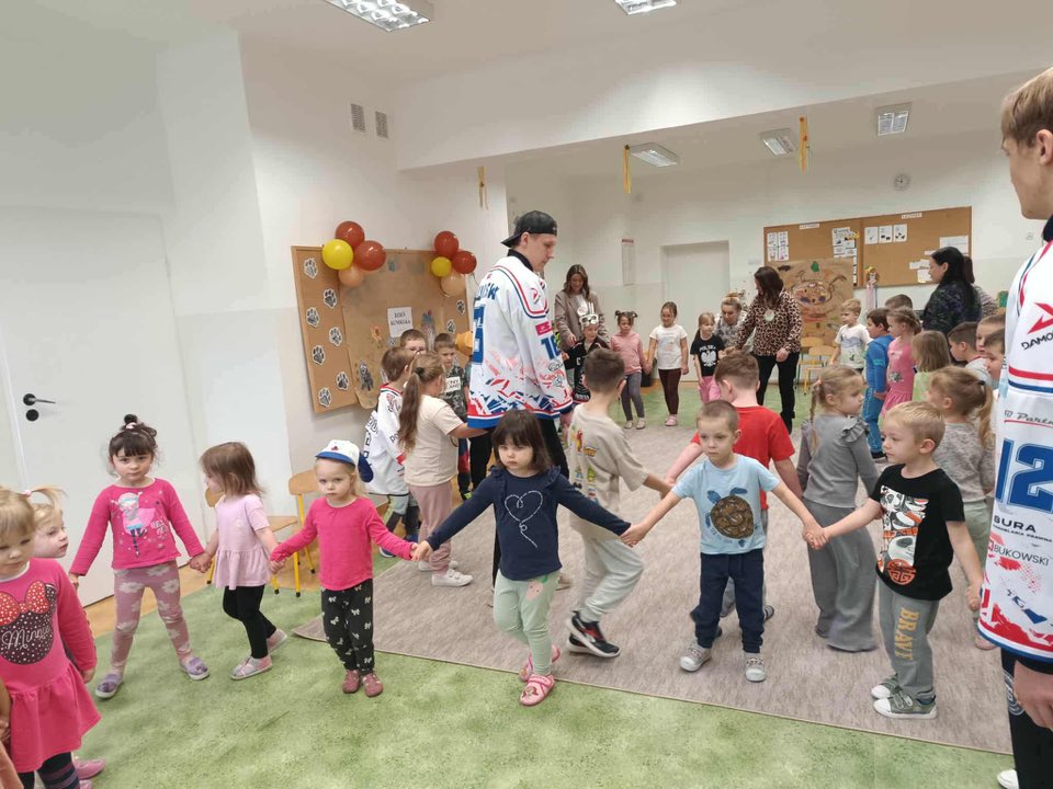 Największą radość sprawiło przekazanie zebranych darów. Przedszkolaki mogły osobiście wręczyć karmę, koce i akcesoria, a hokeiści podziękowali dzieciom i wręczyli im pamiątkowe upominki.