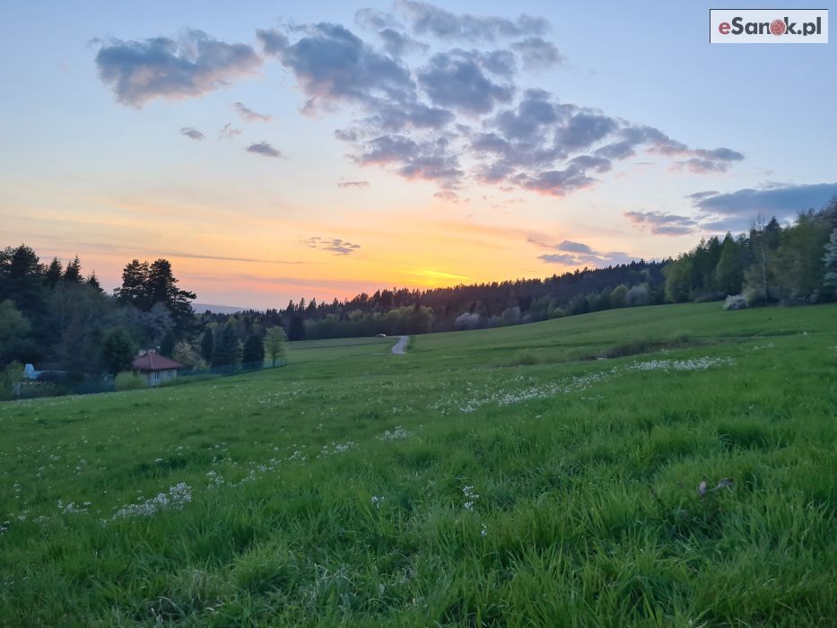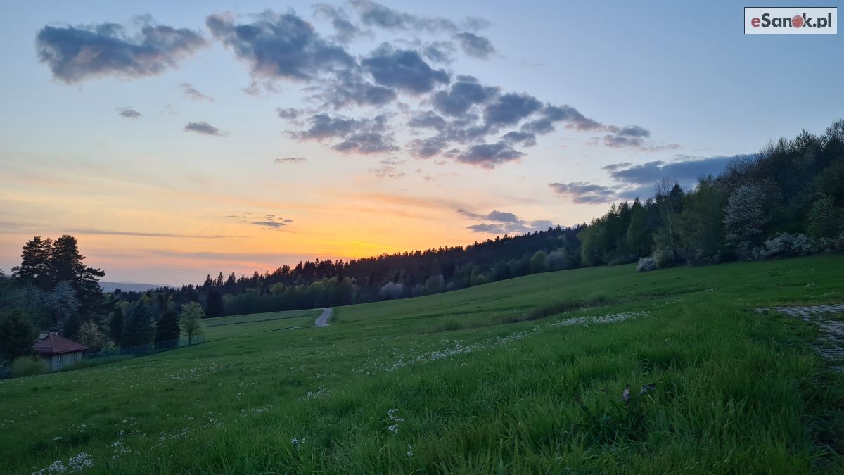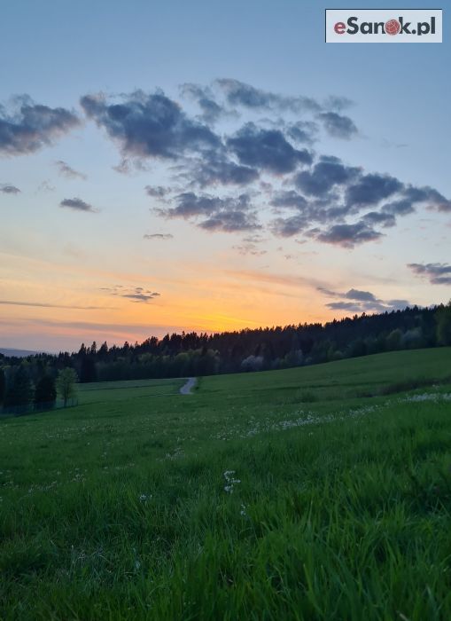 Pogoda w regionie zachwyca. Dzisiejszy zachód słońca był prawdziwym widowiskiem – na niebie dominowały ciepłe odcienie pomarańczu, różu oraz złota. Tło dla tego zjawiska stworzyły malownicze wzgórza i otwarta przestrzeń, z których Bezmiechowa słynie w całym kraju.