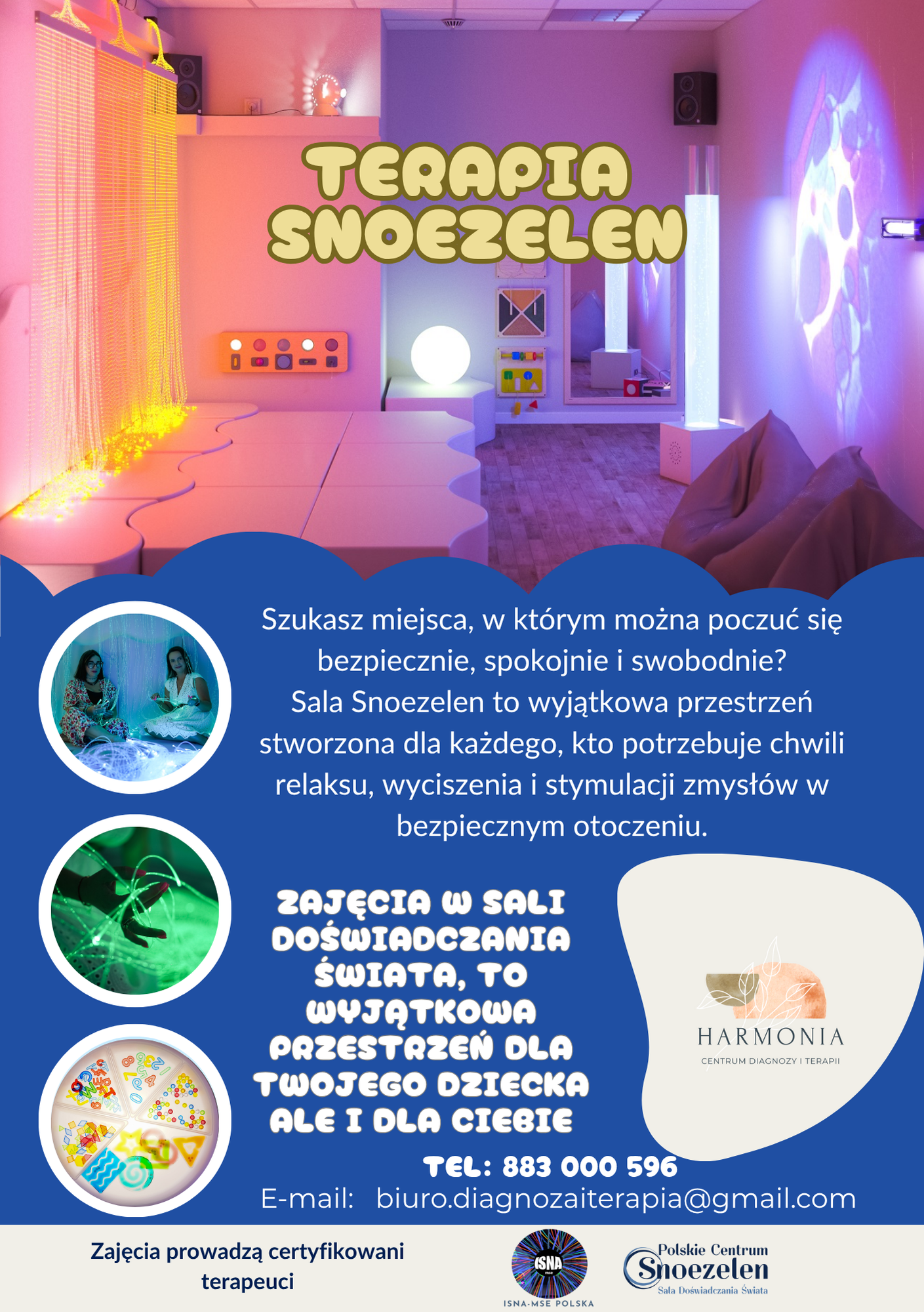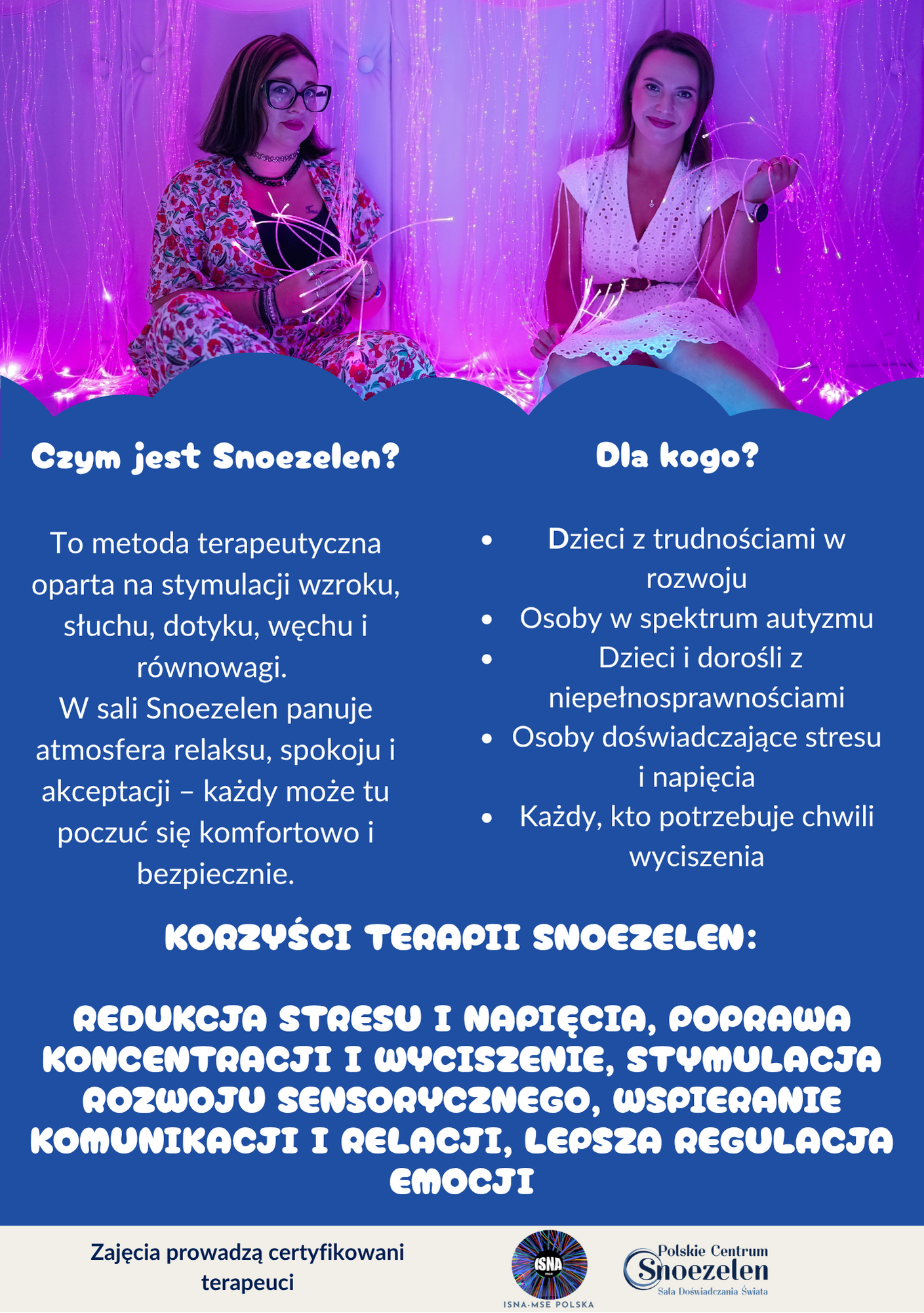 - Terapia Snoezelen w Sali Doświadczania Świata – relaks, wyciszenie i harmonijna stymulacja wszystkich zmysłów;