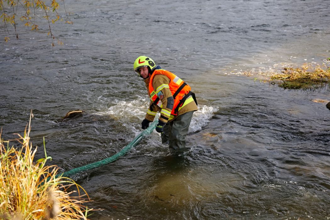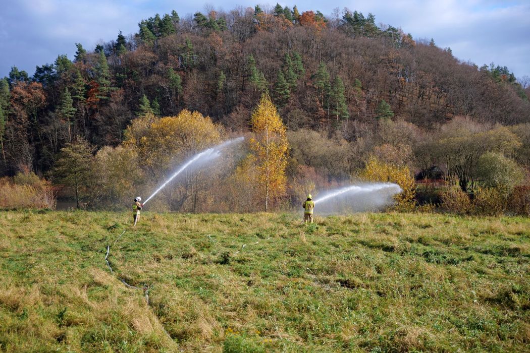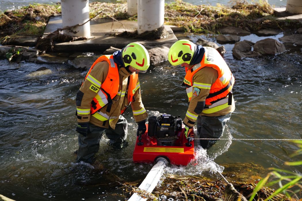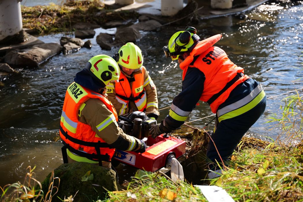 Następnie uczestnicy przenieśli się nad rzekę San, gdzie odbyła się część praktyczna. Strażacy ćwiczyli podawanie wody z wozu na wóz oraz współdziałanie jednostek w warunkach zbliżonych do realnych akcji. Ćwiczenia przebiegły sprawnie, a ich dynamiczny przebieg pokazał duże zaangażowanie druhów po obu stronach granicy.