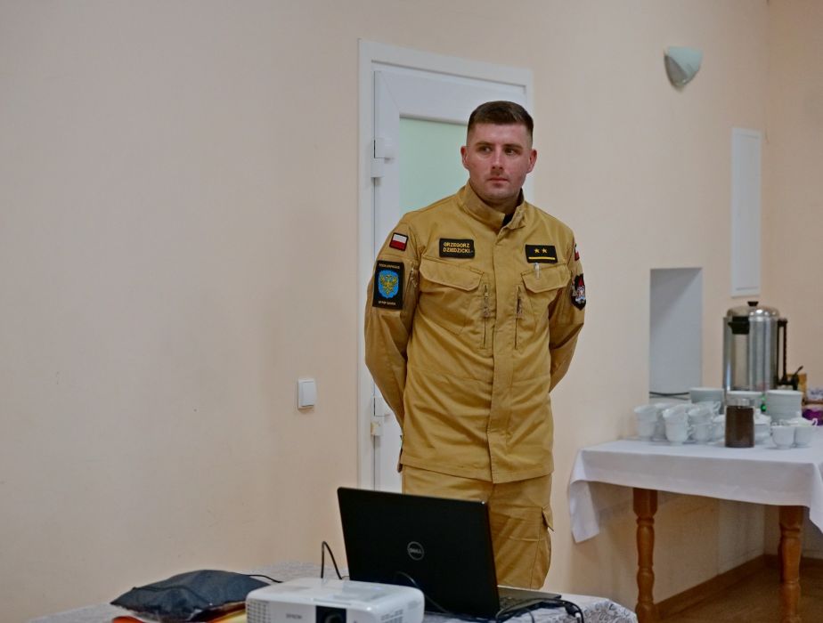 Część teoretyczną poprowadził mł. kpt. Grzegorz Dziedzicki z Komendy Powiatowej Państwowej Straży Pożarnej w Sanoku. Podczas wykładu omówił zasady bezpieczeństwa oraz procedury działań podczas gaszenia pożarów na terenach leśnych.