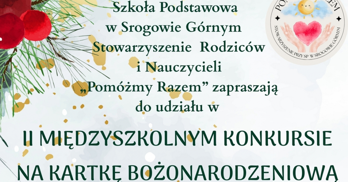 Szkoła Podstawowa w Srogowie Górnym wraz ze Stowarzyszeniem Rodziców i Nauczycieli „Pomóżmy Razem” po raz drugi zapraszają dzieci i młodzież z całej gminy do udziału w Międzyszkolnym Konkursie na Kartkę Bożonarodzeniową. To wydarzenie, które nie tylko rozwija kreatywność najmłodszych, ale również niesie realną pomoc – wszystkie wykonane prace trafią do podopiecznych domów pomocy z powiatu sanockiego i bieszczadzkiego.