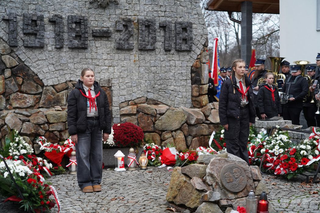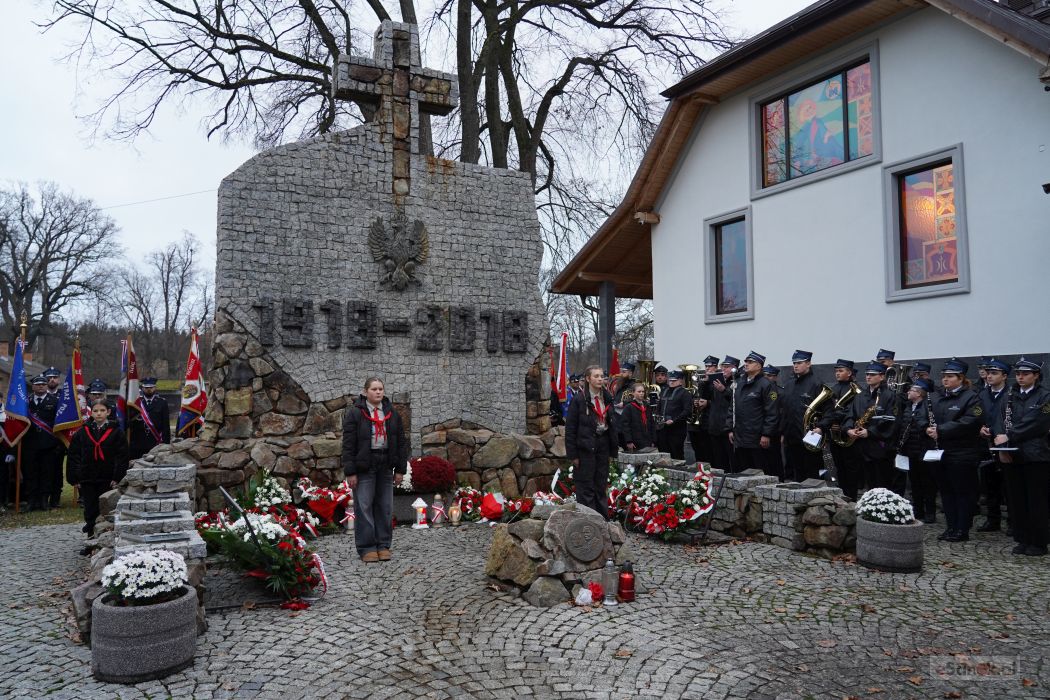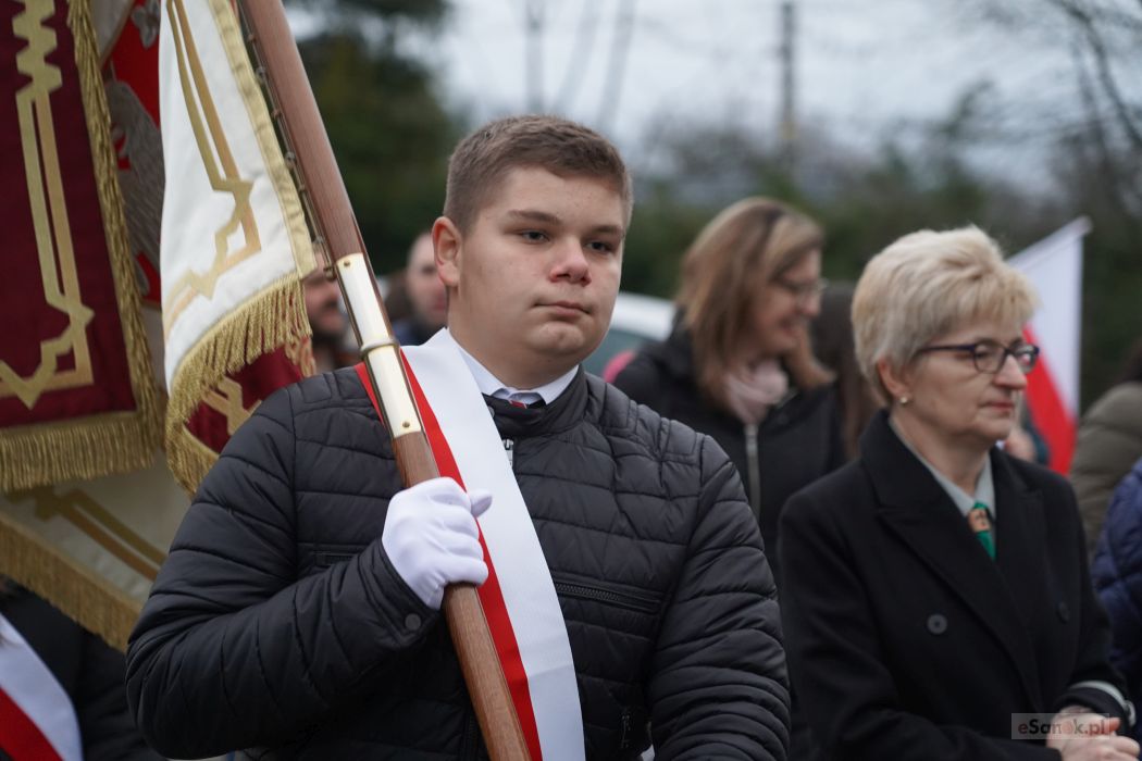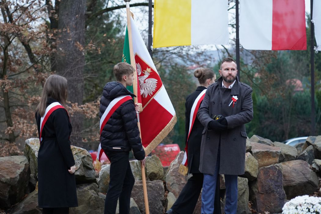 Po zakończeniu Mszy uczestnicy przemaszerowali pod Pomnik 100-lecia Niepodległości. Proboszcz parafii, ks. Tomasz Sieradzki, odmówił modlitwę w intencji poległych obrońców Ojczyzny, a następnie delegacje złożyły wieńce i wiązanki, oddając hołd tym, którzy walczyli o wolną Polskę. Uroczystość przy pomniku zwieńczył Apel Poległych, który poprowadził były dyrektor szkoły Andrzej Cecuła.