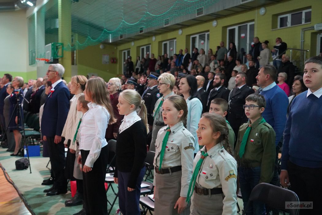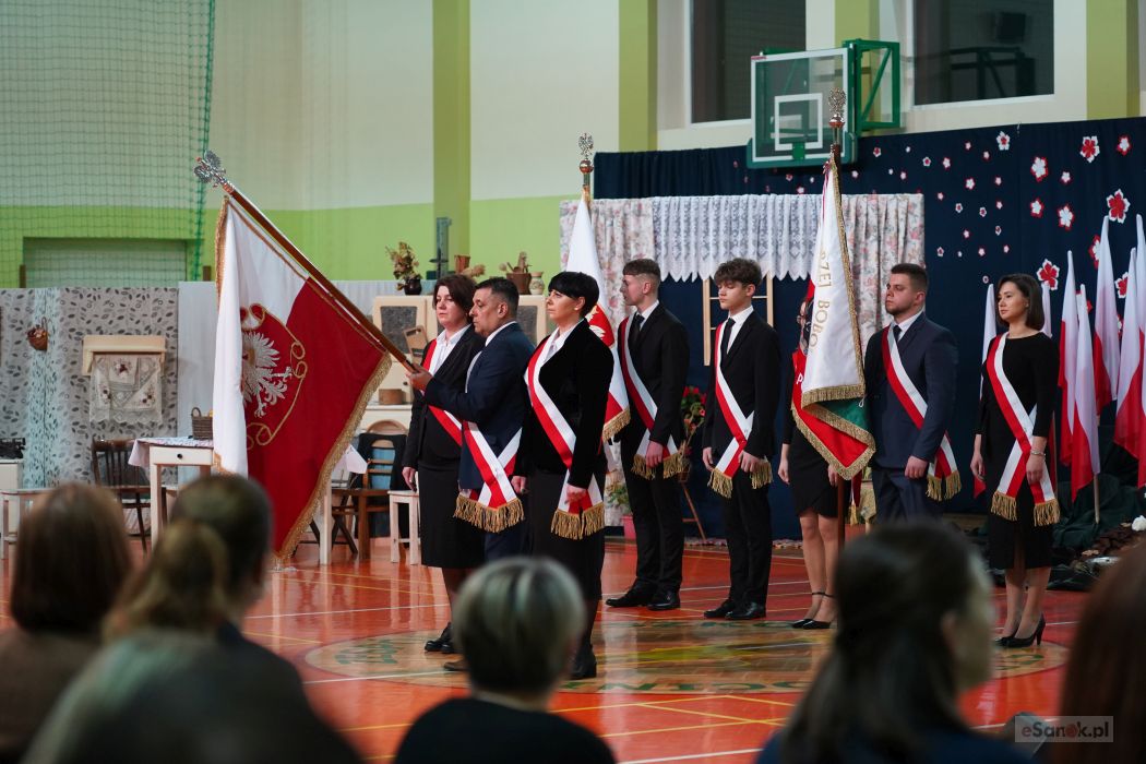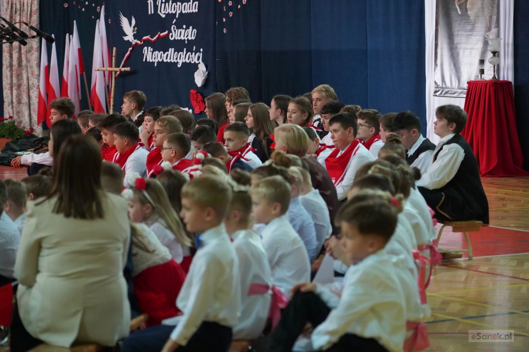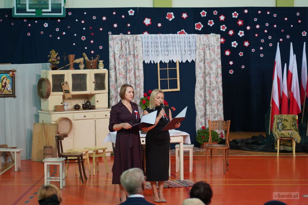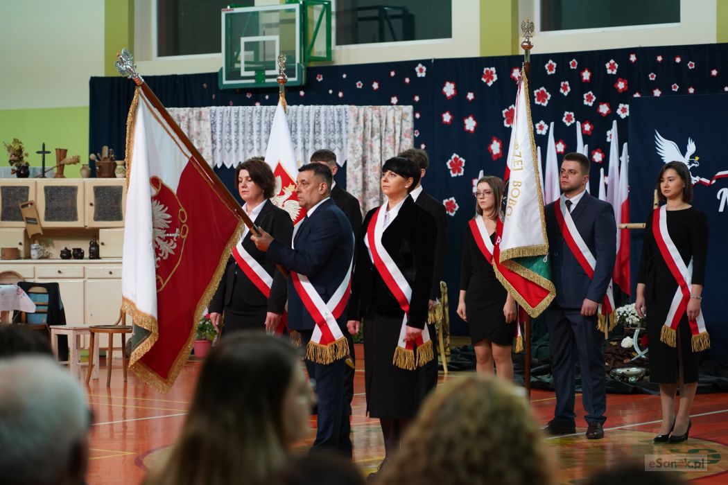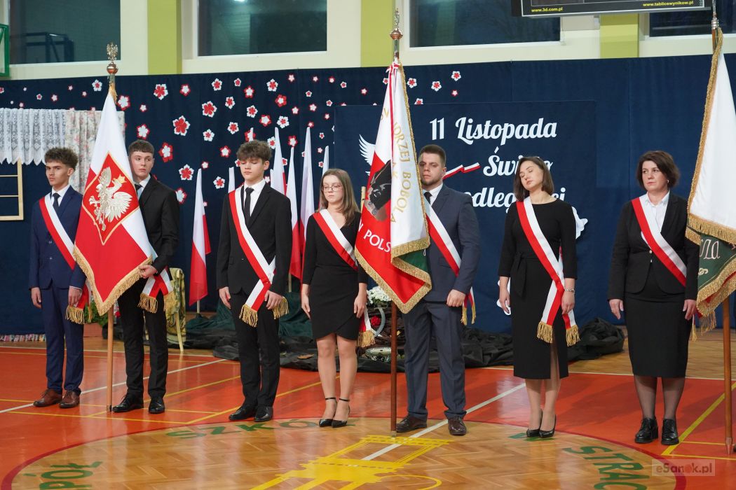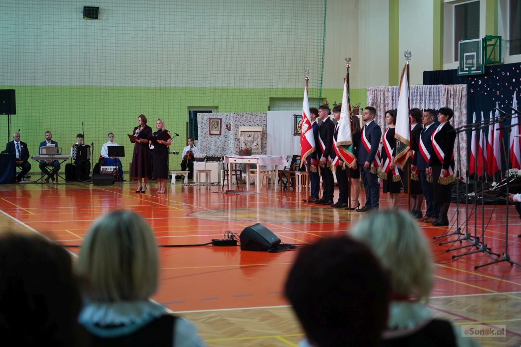 Druga część obchodów odbyła się w Szkole Podstawowej im. Ignacego Łukasiewicza w Strachocinie. Zebranych przywitał Wójt Gminy Sanok Paweł Wdowiak, a następnie głos zabrała dyrektor szkoły Magdalena Wiszyńska. Po wprowadzeniu sztandarów i odśpiewaniu hymnu państwowego rozpoczęto część artystyczną uroczystości.