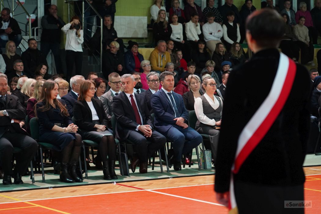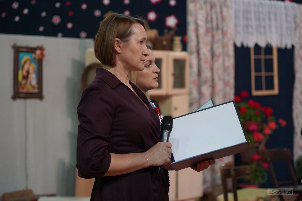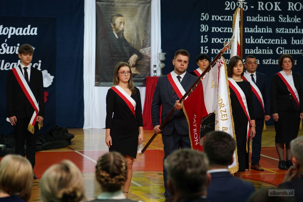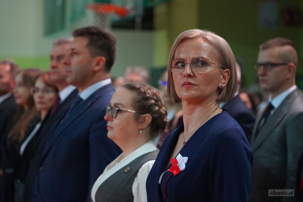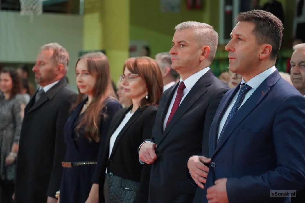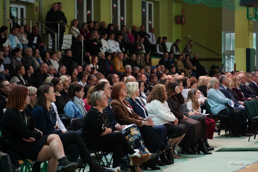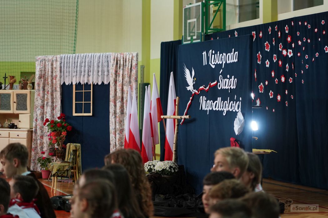 Druga część obchodów odbyła się w Szkole Podstawowej im. Ignacego Łukasiewicza w Strachocinie. Zebranych przywitał Wójt Gminy Sanok Paweł Wdowiak, a następnie głos zabrała dyrektor szkoły Magdalena Wiszyńska. Po wprowadzeniu sztandarów i odśpiewaniu hymnu państwowego rozpoczęto część artystyczną uroczystości.