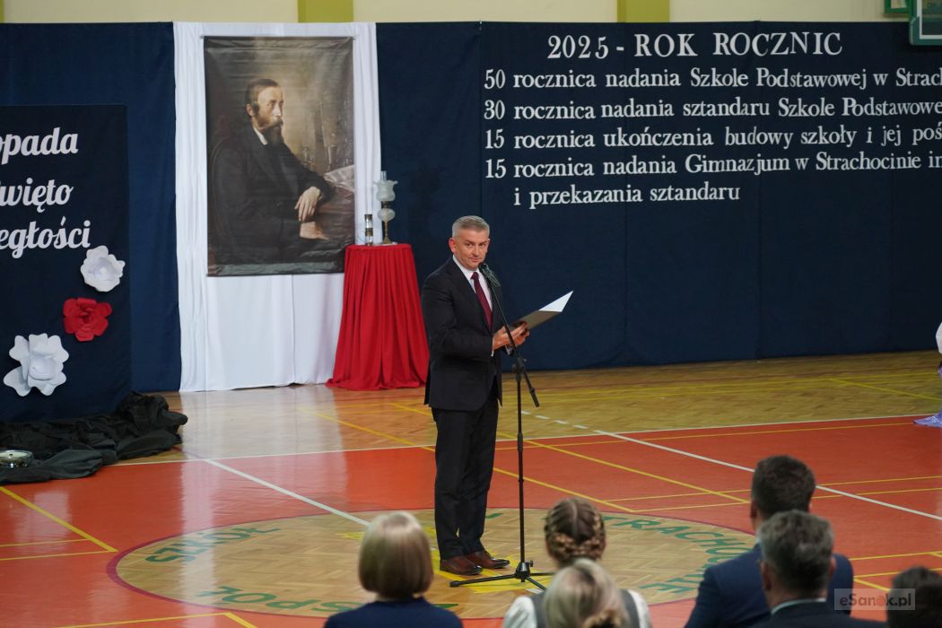 Podczas wydarzenia przypomniano również o ważnych rocznicach, które przypadają w roku 2025. Szkoła w Strachocinie będzie obchodzić 50-lecie nadania imienia Ignacego Łukasiewicza, 30-lecie nadania sztandaru, 15-lecie nadania imienia i sztandaru gimnazjum oraz 15-lecie ukończenia budowy i poświęcenia budynku szkoły. Uczestnikom zaprezentowano rys historyczny placówki, sylwetkę jej patrona oraz dzieje szkolnych sztandarów.