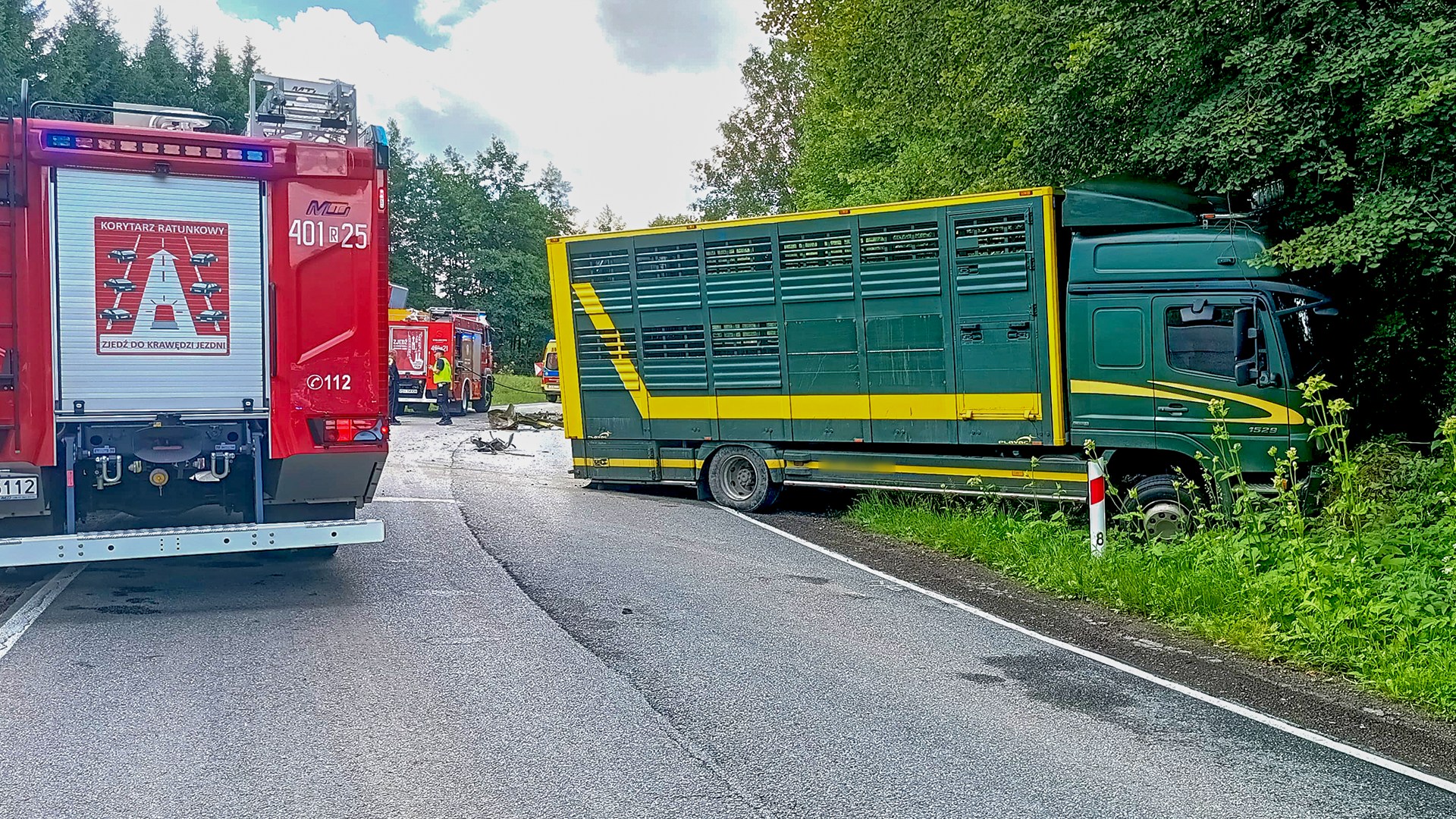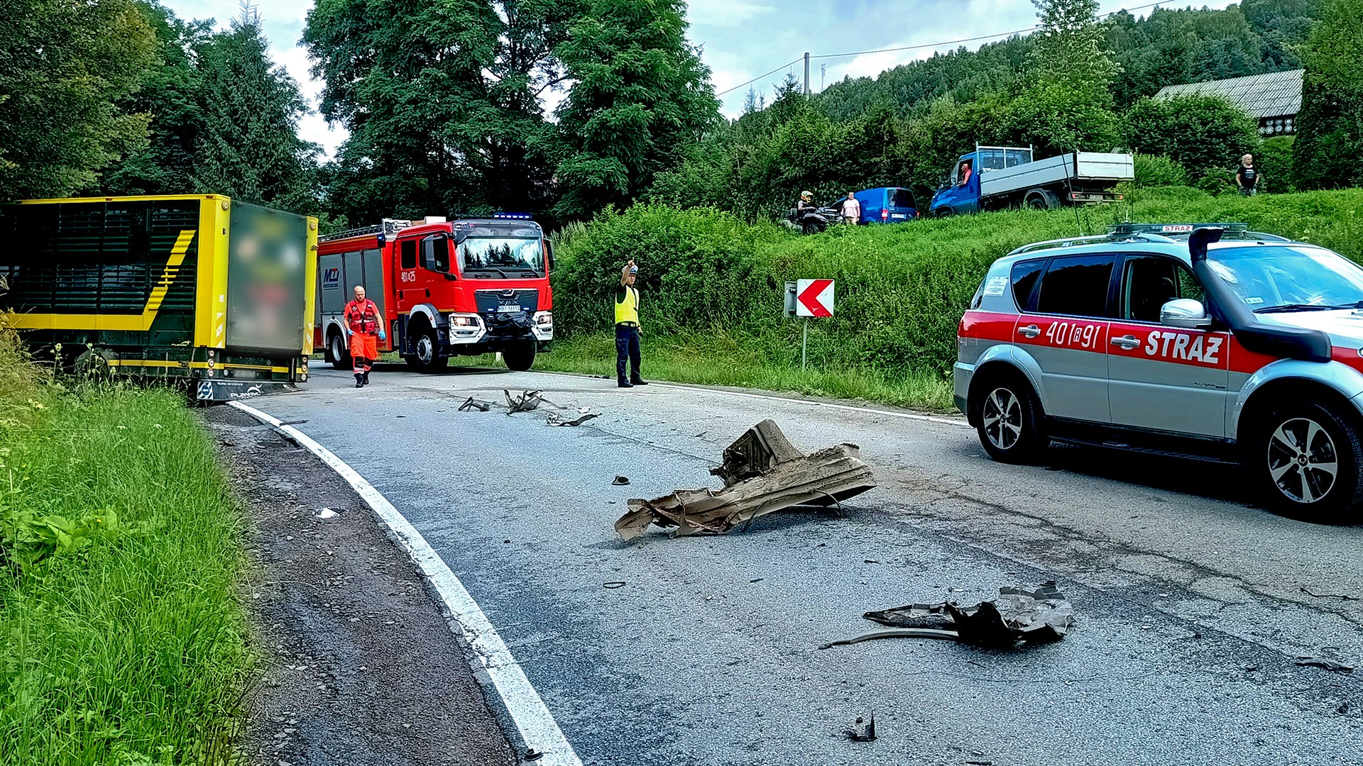 Wczoraj, około godziny 10:00, w miejscowości Hoszów (gmina Ustrzyki Dolne), na łuku drogi wojewódzkiej DW896, doszło do poważnego zderzenia czołowego samochodu osobowego z ciężarówką przeznaczoną do transportu zwierząt hodowlanych.