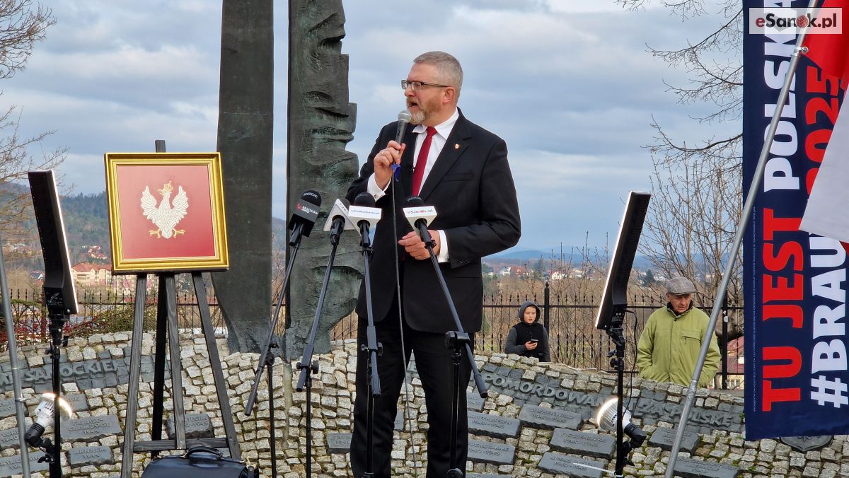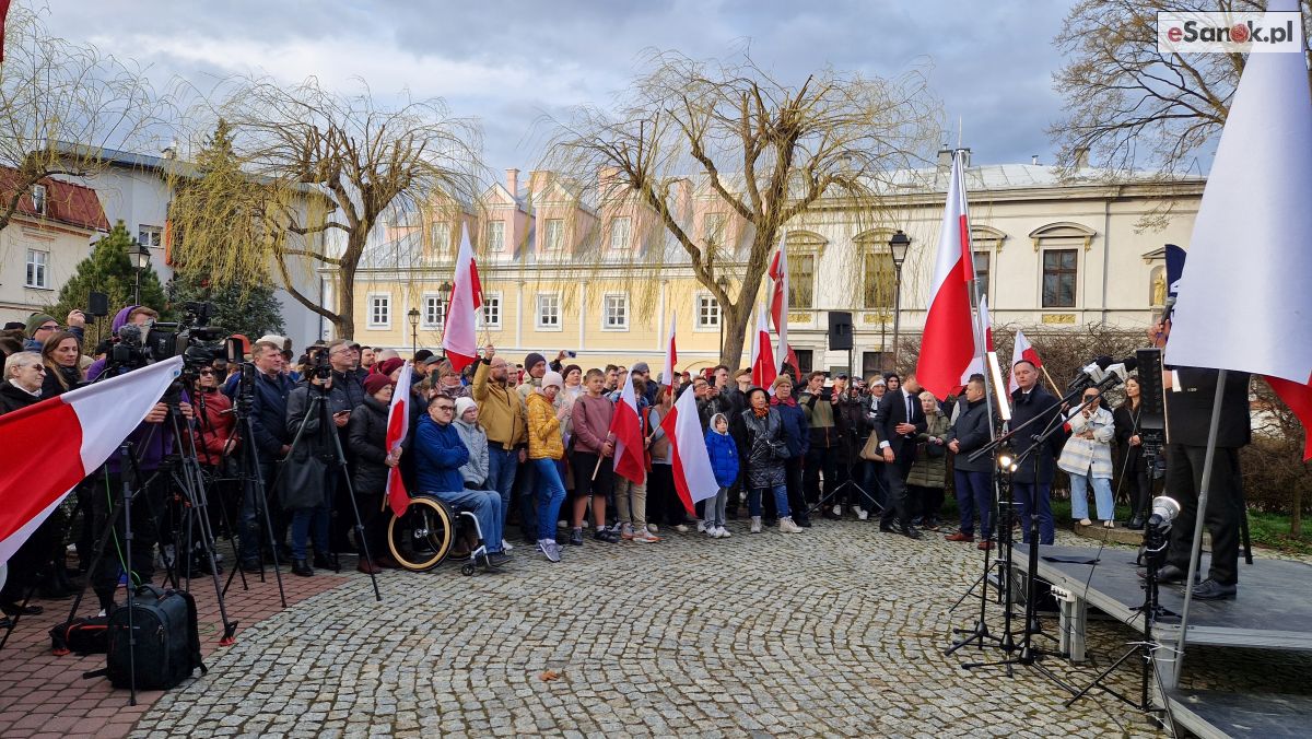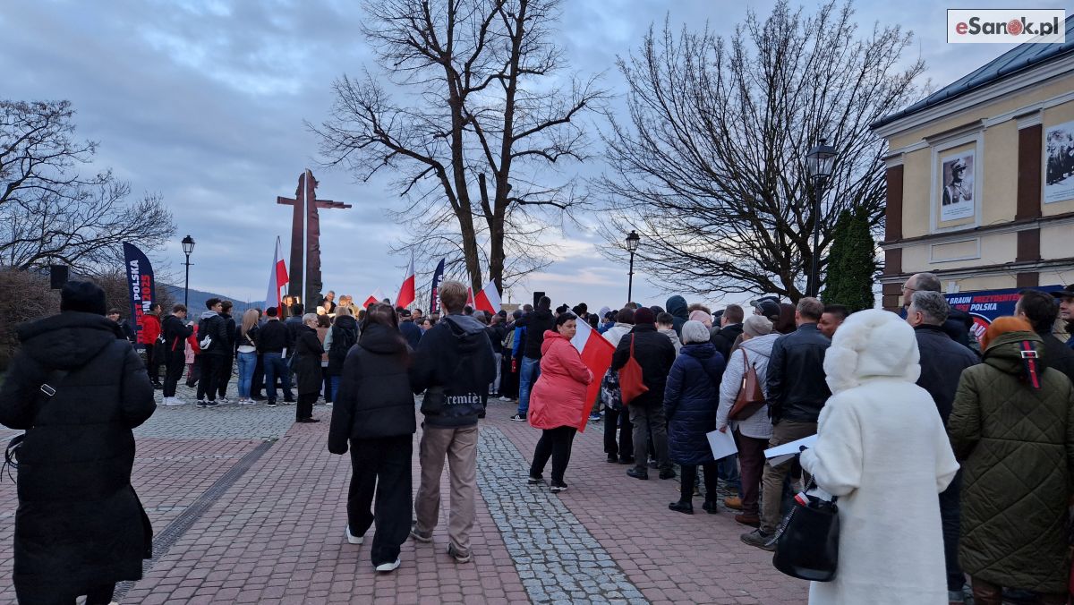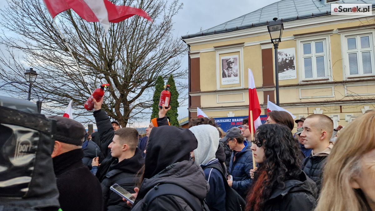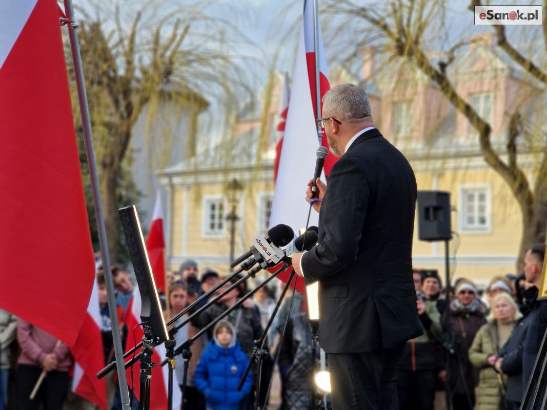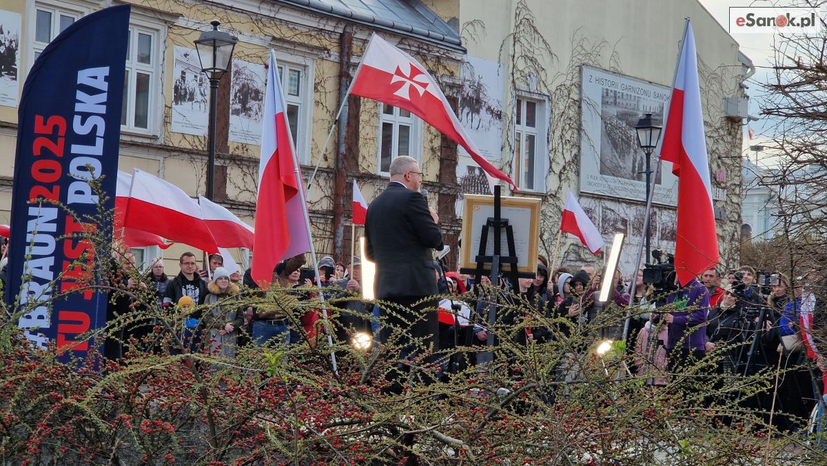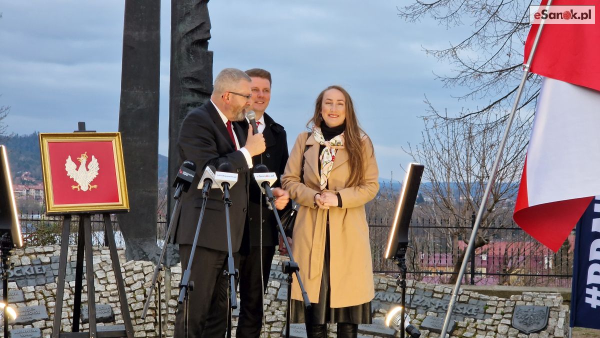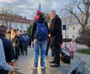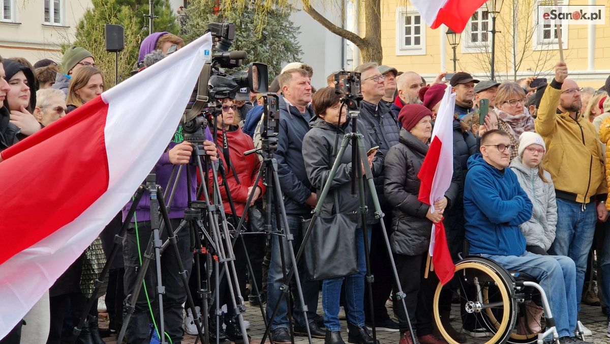 SANOK. W piątek, 28 marca br. mieszkańcy Sanoka mieli okazję spotkać się z kandydatem na prezydenta RP, Grzegorzem Braunem. Wydarzenie odbyło się na placu św. Jana, gdzie przed oficjalnym wystąpieniem kandydata, głos zabrali działacze związani z jego partią – Paweł Kuźma i Karolina Pikuła. To oni wprowadzili zebranych w tematykę spotkania, które było doskonałą okazją do poznania programu wyborczego Grzegorza Brauna.