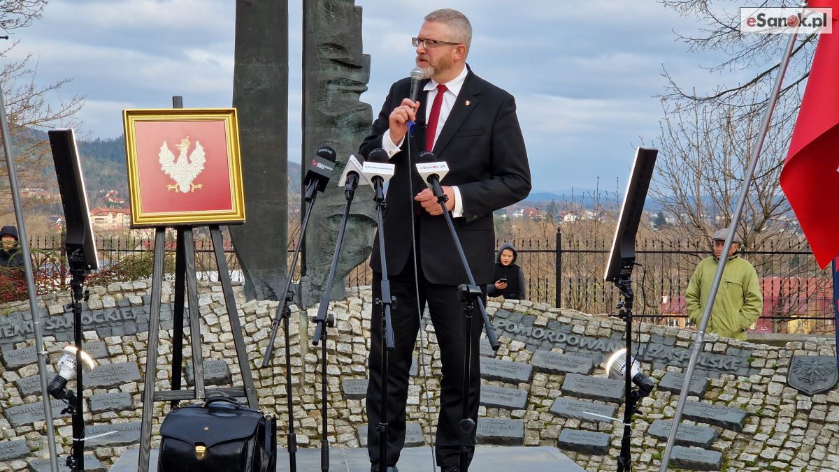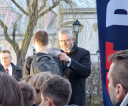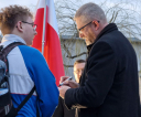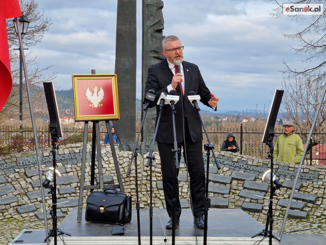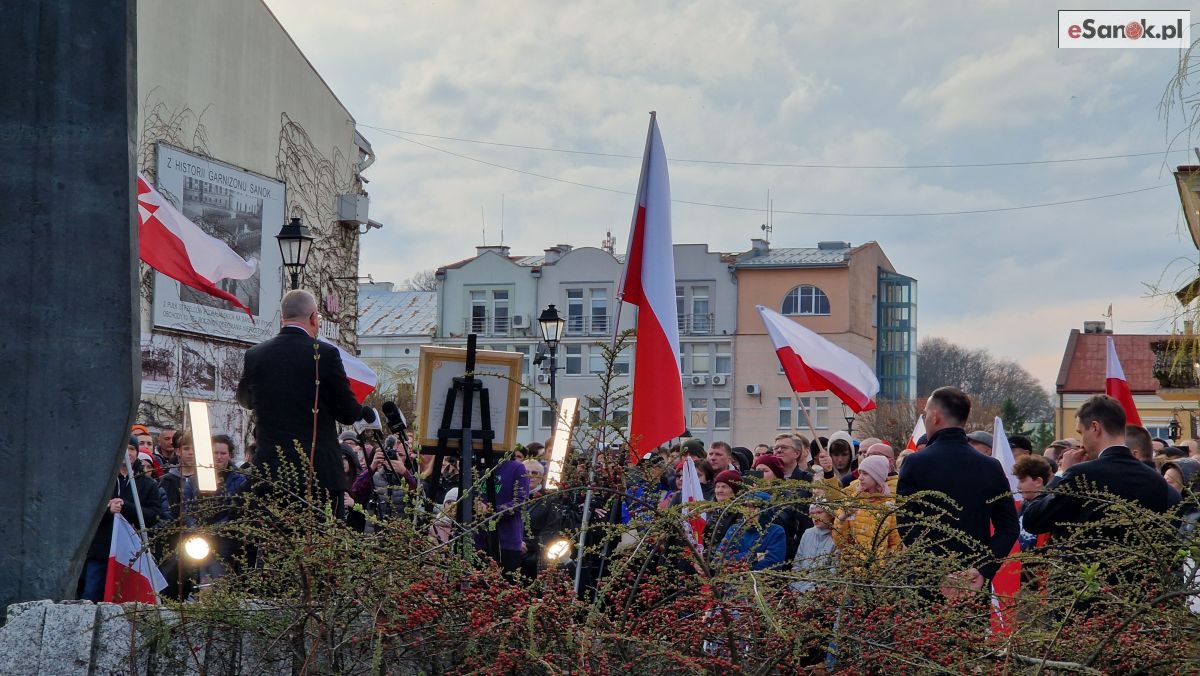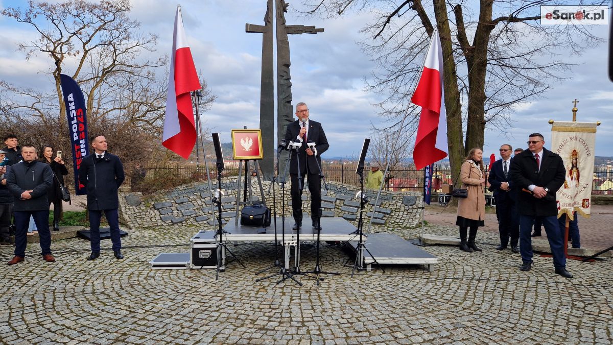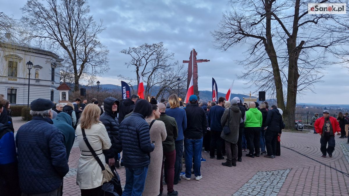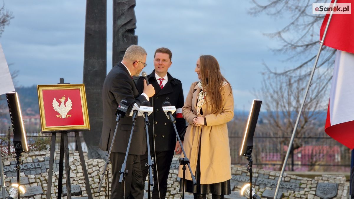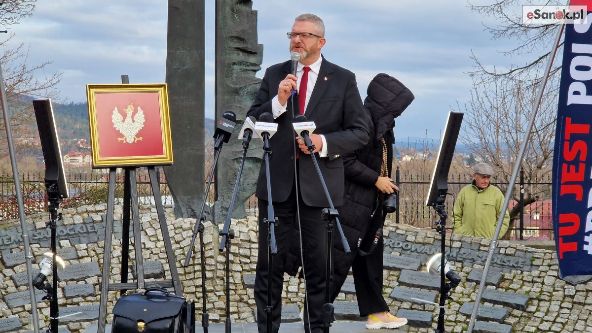 SANOK. W piątek, 28 marca br. mieszkańcy Sanoka mieli okazję spotkać się z kandydatem na prezydenta RP, Grzegorzem Braunem. Wydarzenie odbyło się na placu św. Jana, gdzie przed oficjalnym wystąpieniem kandydata, głos zabrali działacze związani z jego partią – Paweł Kuźma i Karolina Pikuła. To oni wprowadzili zebranych w tematykę spotkania, które było doskonałą okazją do poznania programu wyborczego Grzegorza Brauna.