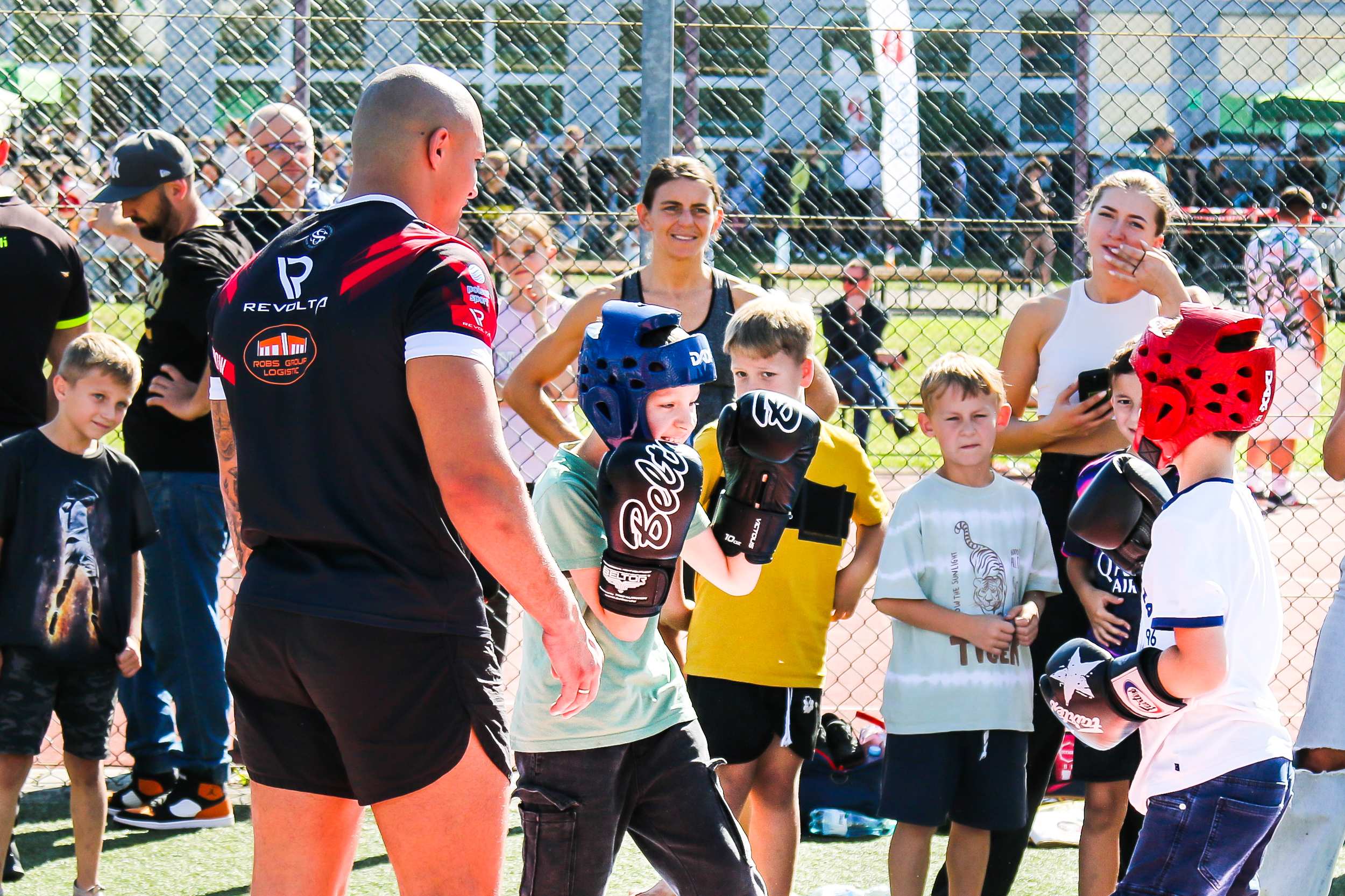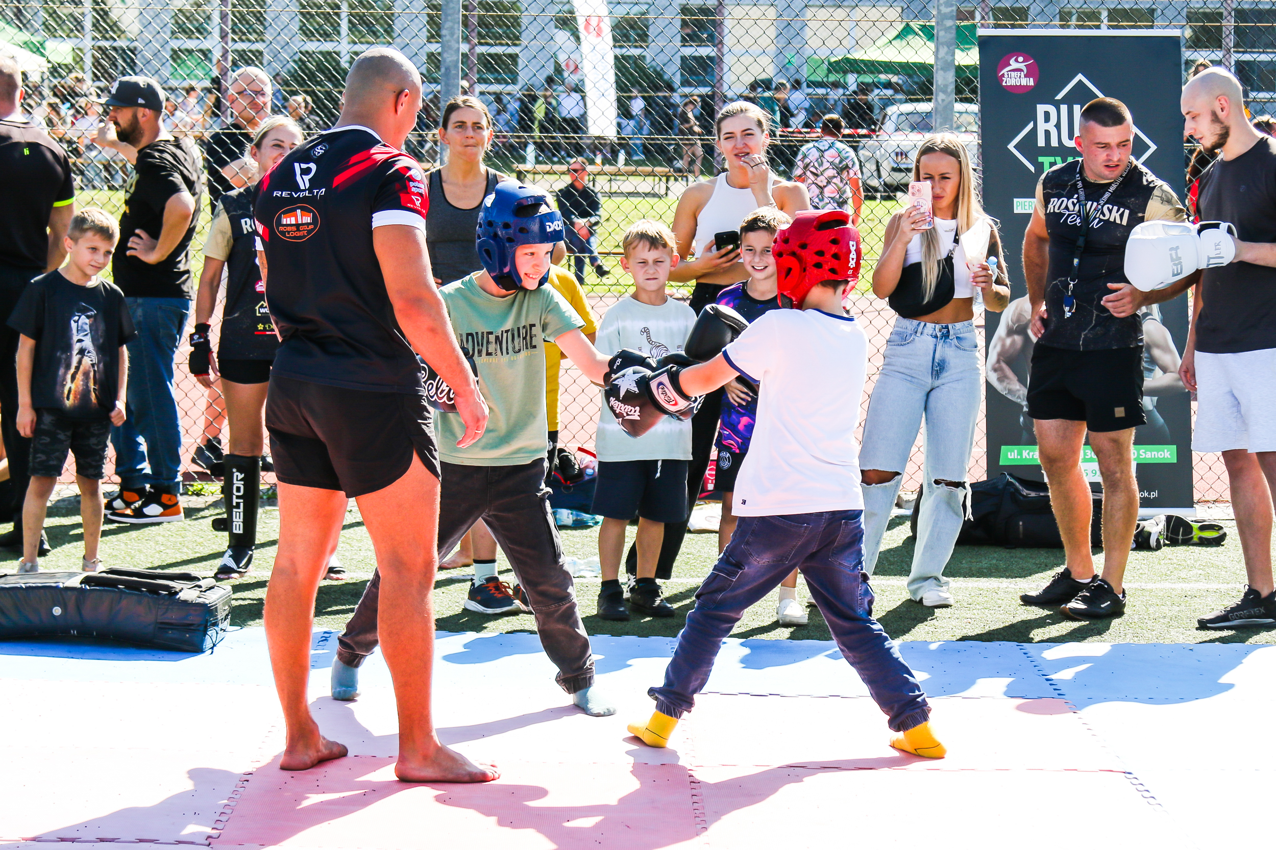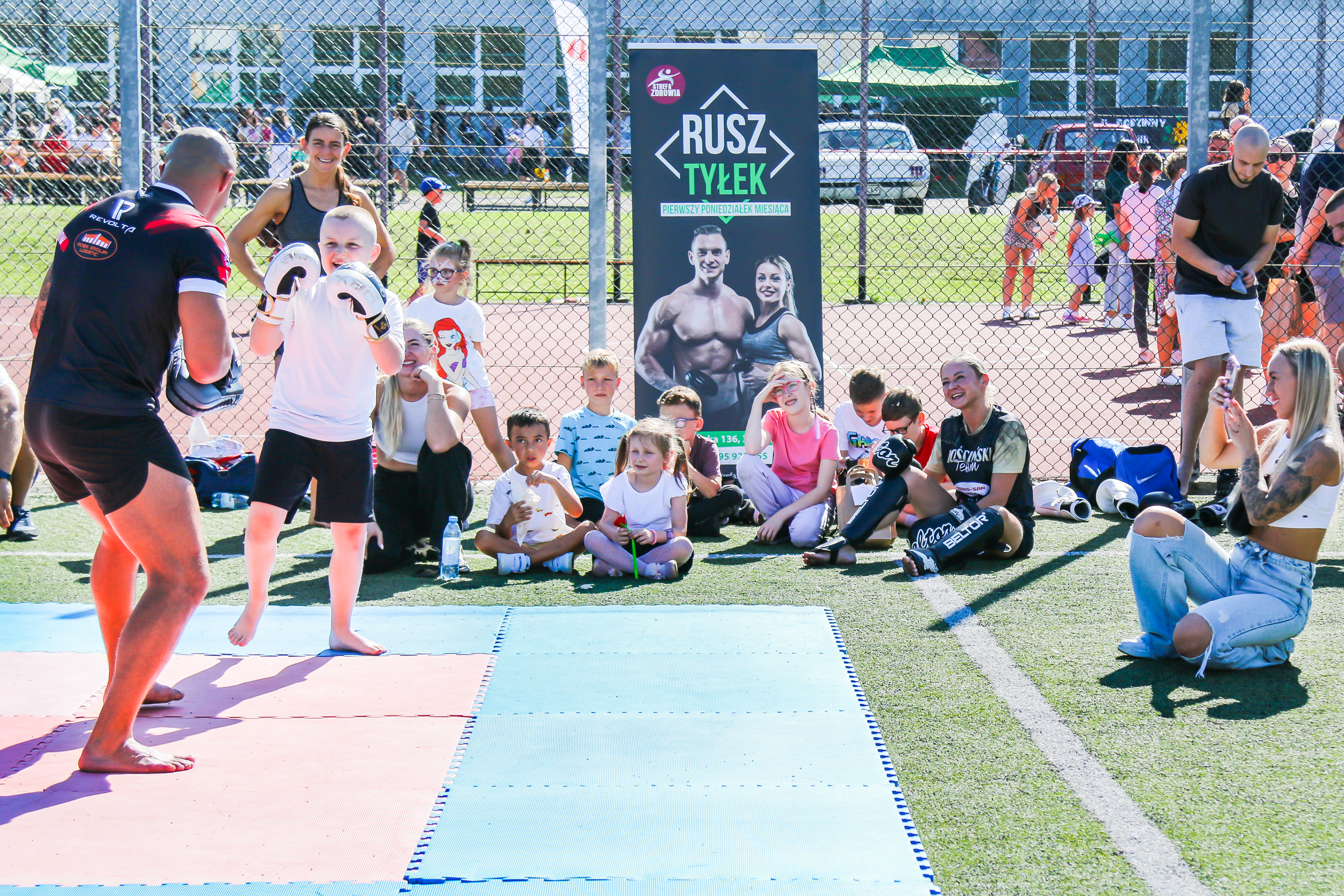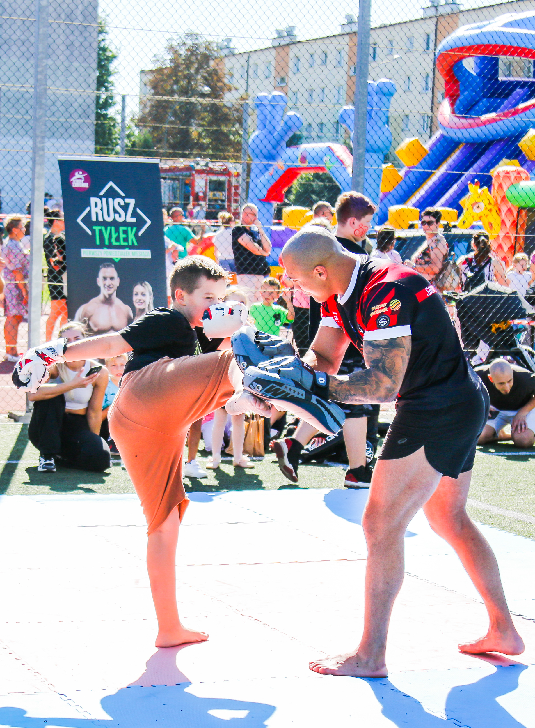 Wielkim wydarzeniem pikniku było także spotkanie z mistrzem kickboxingu Kamilem Rościńskim, który poprowadził otwarty trening.