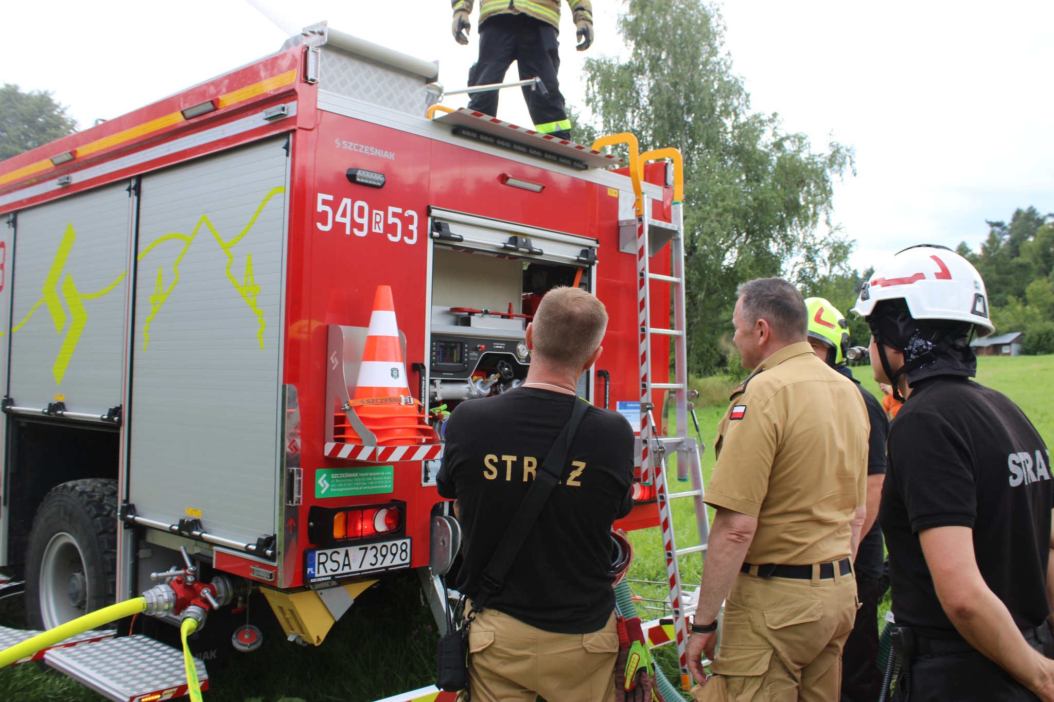 Poczynania strażaków obserwowali Zastępca Podkarpackiego Komendanta PSP st. Bryg. Mgr inż. Dariusz Homa oraz Zastępca Komendanta Powiatowego PSP w Sanoku st. Bryg. Krzysztof Marszałek. Obecność kadry kierowniczej podkreślała rangę wydarzenia i znaczenie doskonalenia współdziałania jednostek.