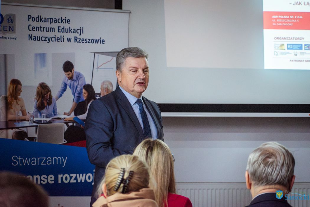 Głos zabrali również reprezentanci Powiatu Sanockiego: Robert Pieszczoch, Starosta Sanocki, oraz Damian Biskup, Wicestarosta Sanocki. Obecni byli także: Andrzej Betlej (Członek Zarządu Powiatu), Wacław Krawczyk (Przewodniczący Komisji Oświaty, Sportu i Rynku Pracy) oraz Małgorzata Gądela, Naczelnik Wydziału Społeczno-Oświatowego.