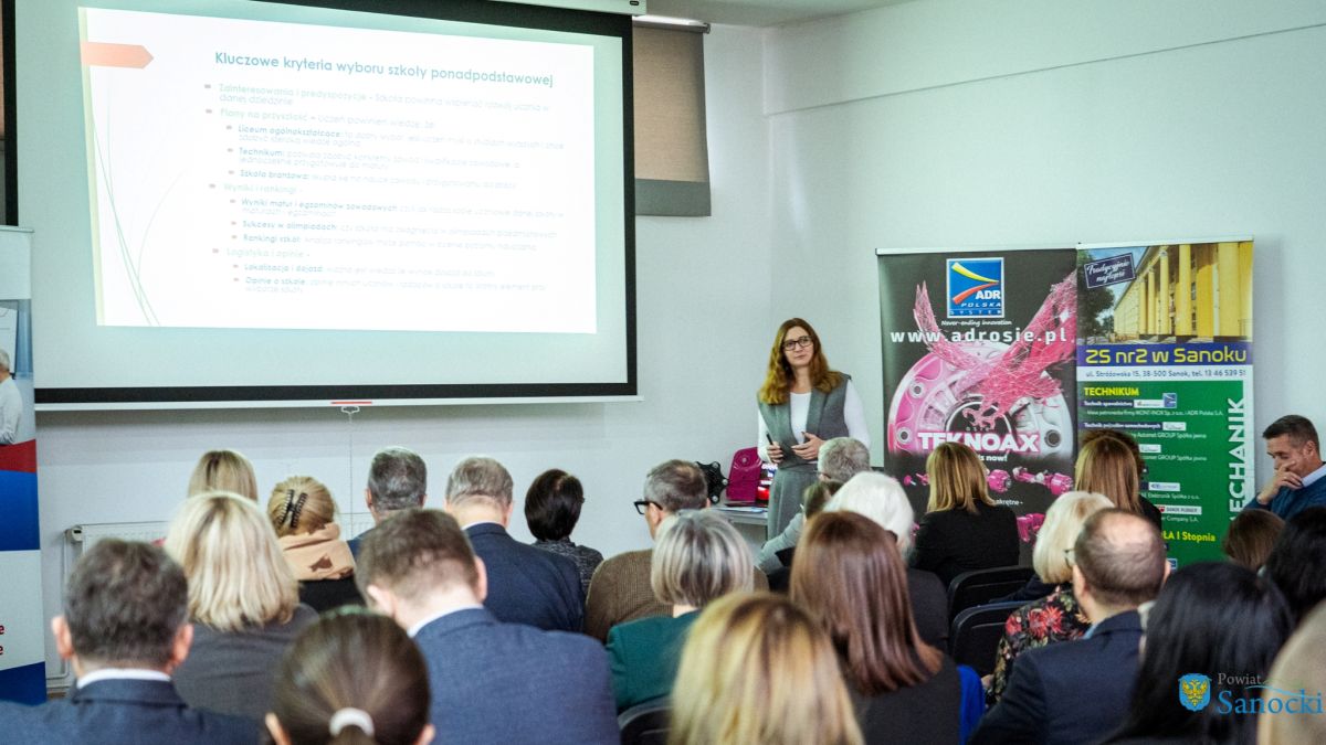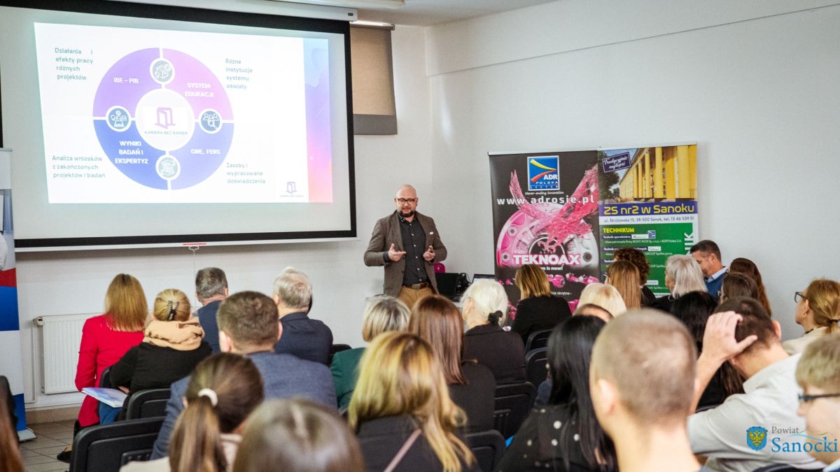 Program konferencji obfitował w merytoryczne wystąpienia. Swoją prezentację przedstawiła Bożena Chabros-Jaklik, dyrektor Zespołu Szkół nr 2 w Sanoku. O preorientacji zawodowej młodzieży opowiadały Anna Balińska i Ewelina Ciupka z Powiatowego Urzędu Pracy. Tomasz Kasprzak z Instytutu Badań Edukacyjnych zaprezentował projekt „Kariera bez barier”, natomiast Bartłomiej Podkalicki, kierownik szkolenia w ADR Polska, przedstawił praktyczne aspekty nauki zawodu. Swoje wystąpienia zaprezentowali także przedstawiciele Sanok Rubber Company S.A., Paweł Januszewski i Magdalena Bochnak, Mateusz Leśniak z Automet Group Sp. z o.o., oraz Piotr Kot, przewodniczący zespołu ds. promocji ZS2, który omówił dopasowanie oferty edukacyjnej szkoły do potrzeb dynamicznie zmieniającego się rynku pracy.