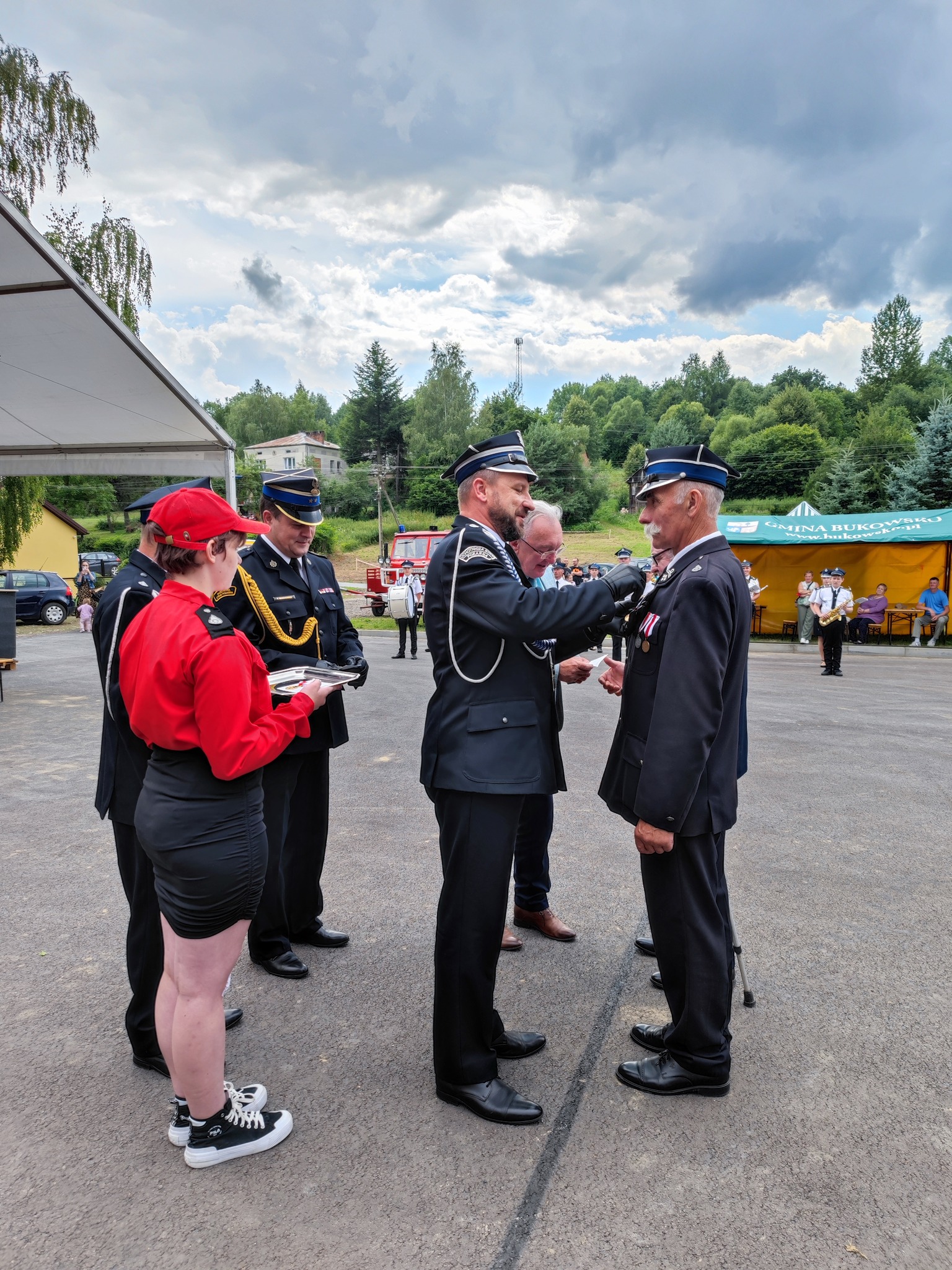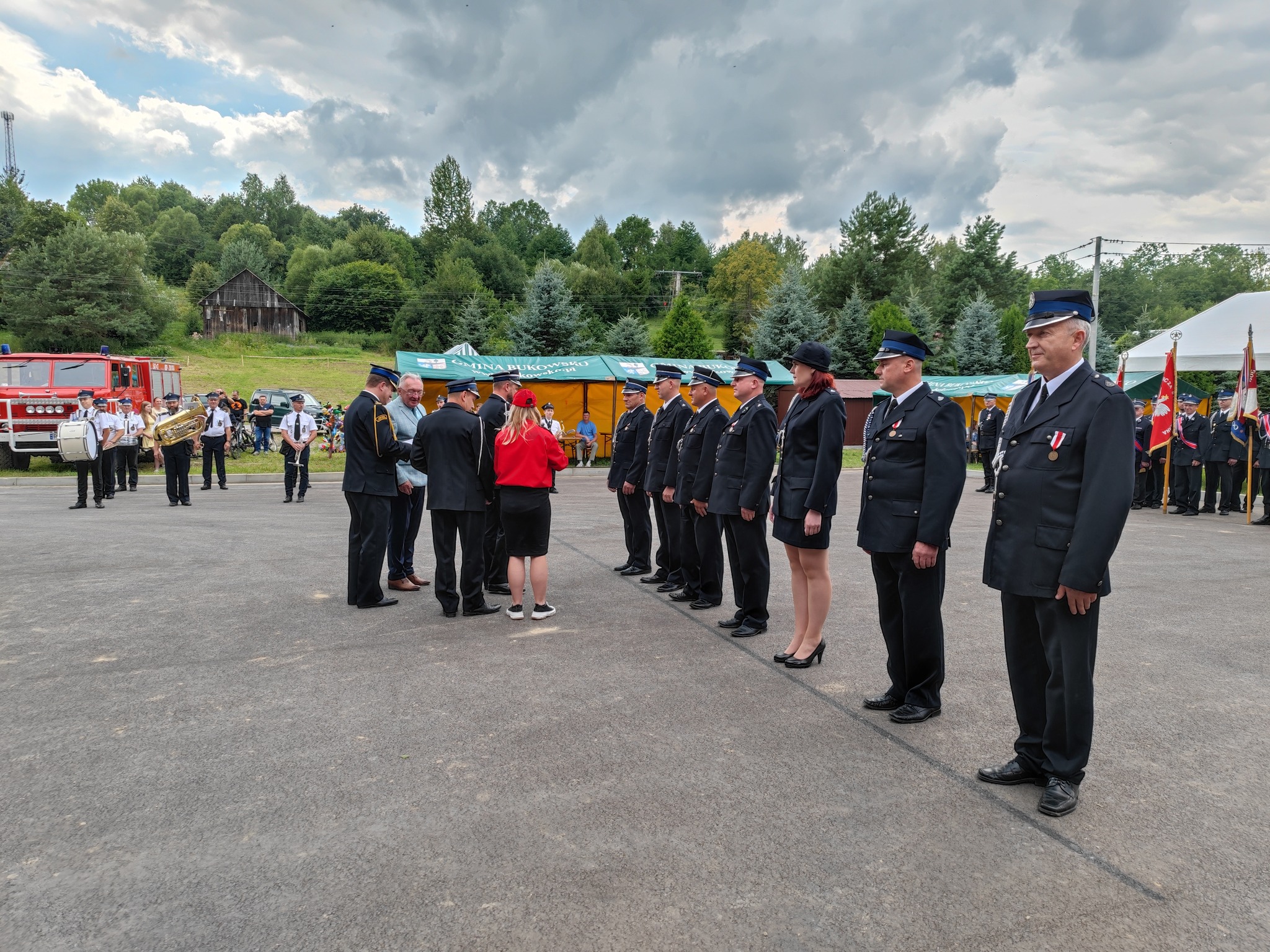 Obchody rozpoczęły się od oficjalnej części jubileuszu, podczas której uhonorowano zasłużonych druhów odznaczeniami i podziękowaniami za ich wieloletnią działalność. Przemówienia wygłosili przedstawiciele władz samorządowych, Państwowej Straży Pożarnej oraz zaprzyjaźnionych jednostek OSP. Nie zabrakło również prezentacji historii jednostki, która przybliżyła zgromadzonym jej rozwój i kluczowe momenty z minionych dekad.