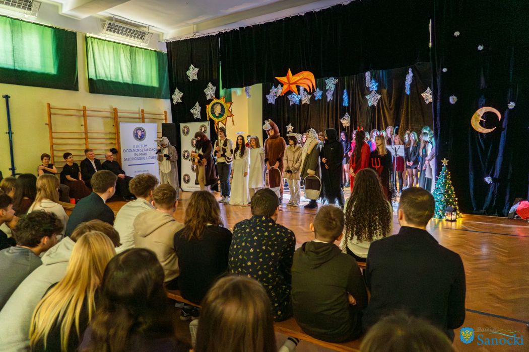 W II Liceum Ogólnokształcącym w Sanoku odbyły się tradycyjne jasełka, które wprowadziły całą społeczność szkolną w wyjątkowy, świąteczny nastrój. Wydarzenie było nie tylko okazją do wspólnego kolędowania, ale także momentem refleksji nad duchowym wymiarem Świąt Bożego Narodzenia.