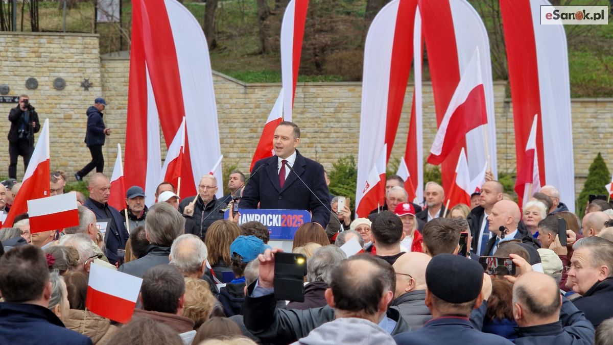SANOK / PODKARPACIE. Podczas spotkania kandydata na prezydenta Polski, Karola Nawrockiego, z mieszkańcami miasta doszło do niegroźnego, aczkolwiek kontrowersyjnego incydentu. Przeciwnik polityczny Nawrockiego, wyraźnie oburzony jego kampanią, postanowił zakłócić spotkanie, prezentując obraźliwy baner, który miał na celu zdyskredytowanie zarówno kandydata, jak i jego wyborców.