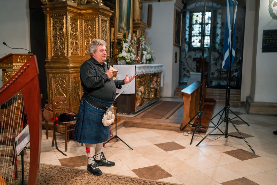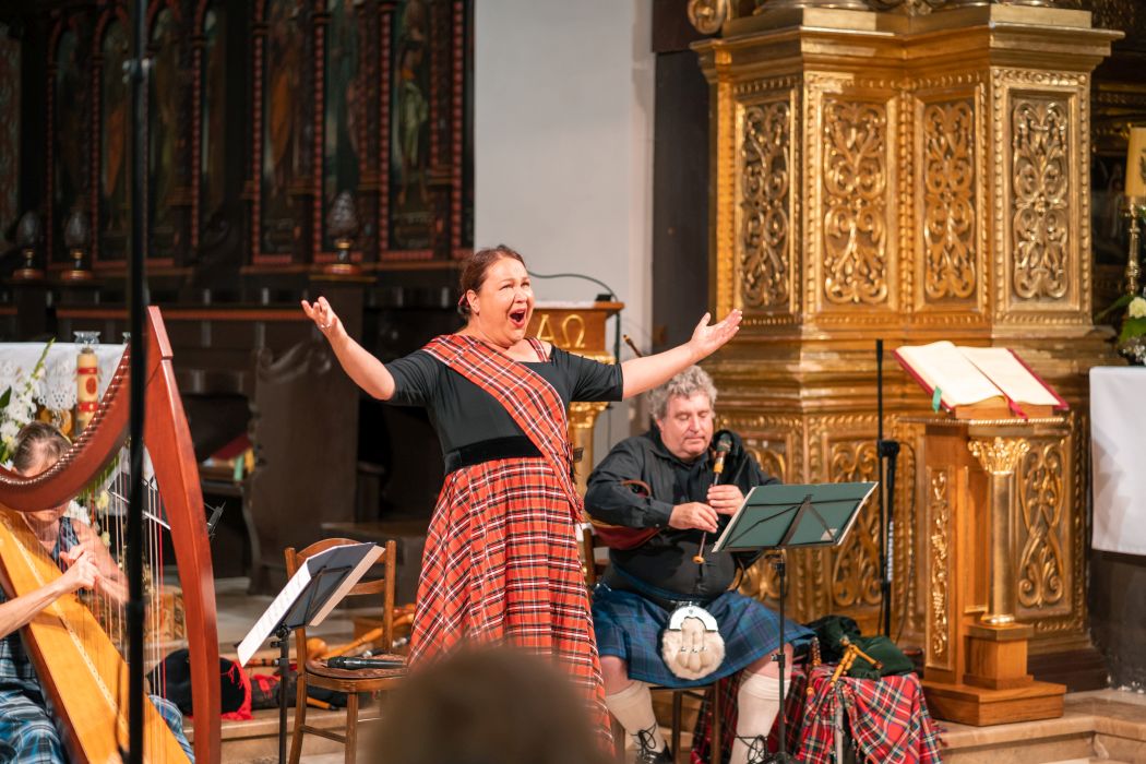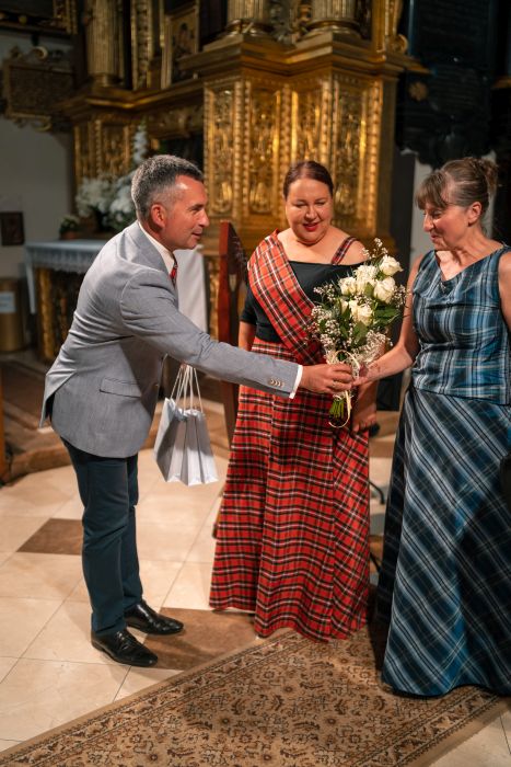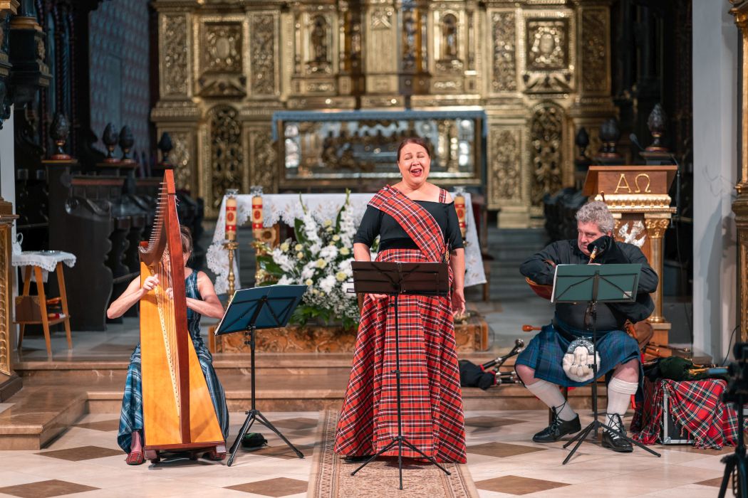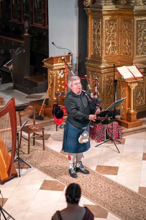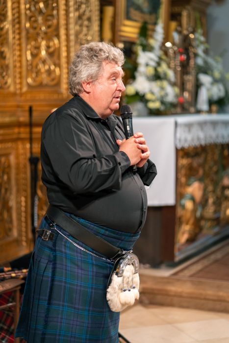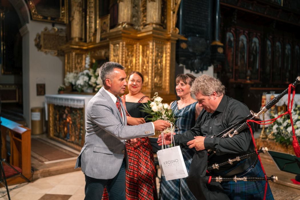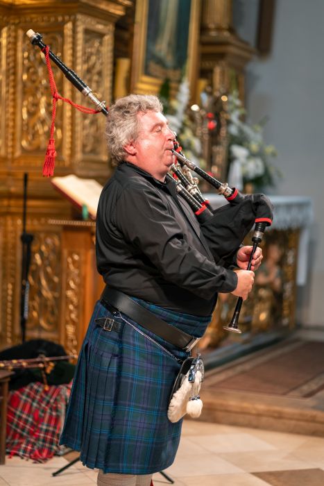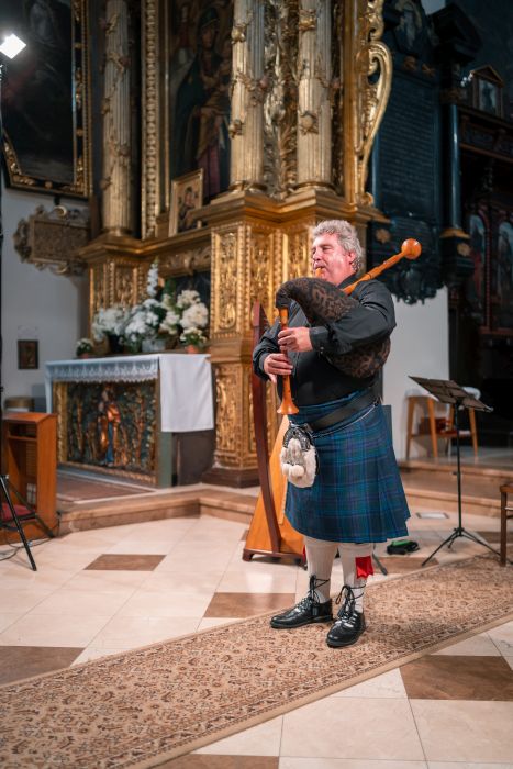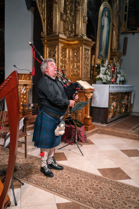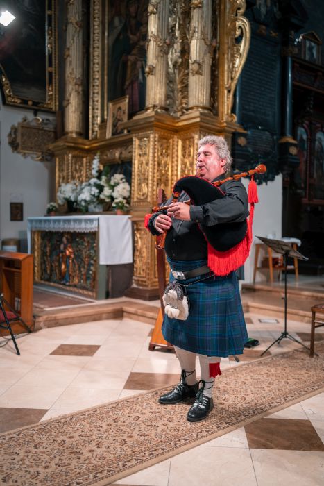 Koncert w krośnieńskiej Farze to była piękna podróż przez tradycje muzyki szkockiej, celtyckiej – zabrzmiały tradycyjne ballady, hymny, pibrochy, fragment suity koncertowej Tulsa, a także tradycyjna gaelicka pieśń śpiewana na Hebrydach (Taladh Chriosda, wspaniała Katarzyna Wiwer!), na finał koncertu usłyszeliśmy także monumentalne solo Lindsaya Davidsona na wielkich dudach szkockich „Highland Bagpipers solo”