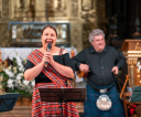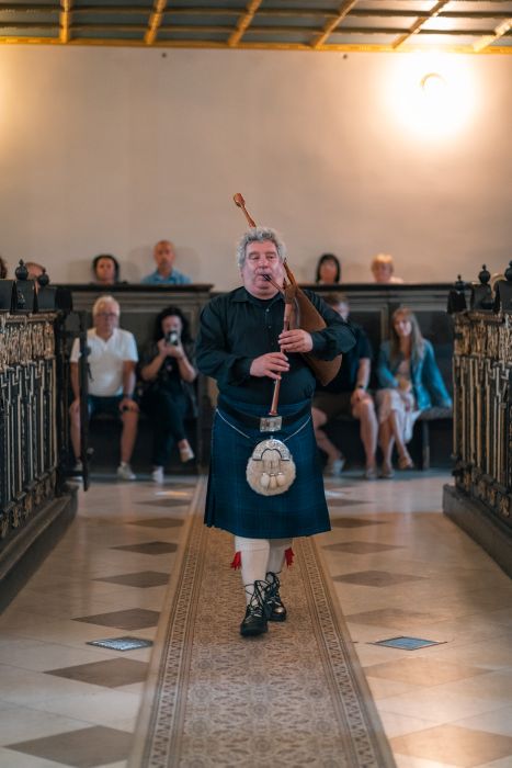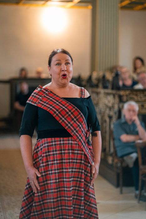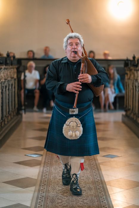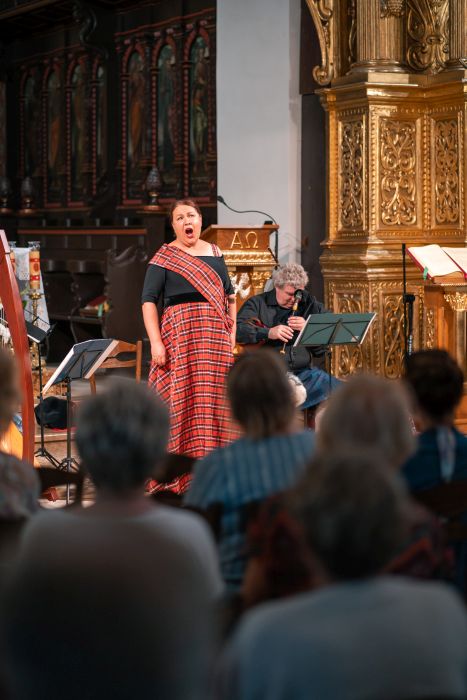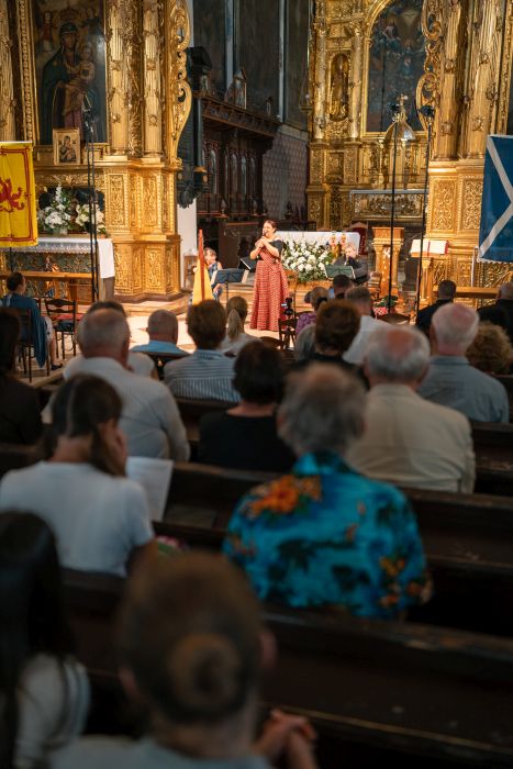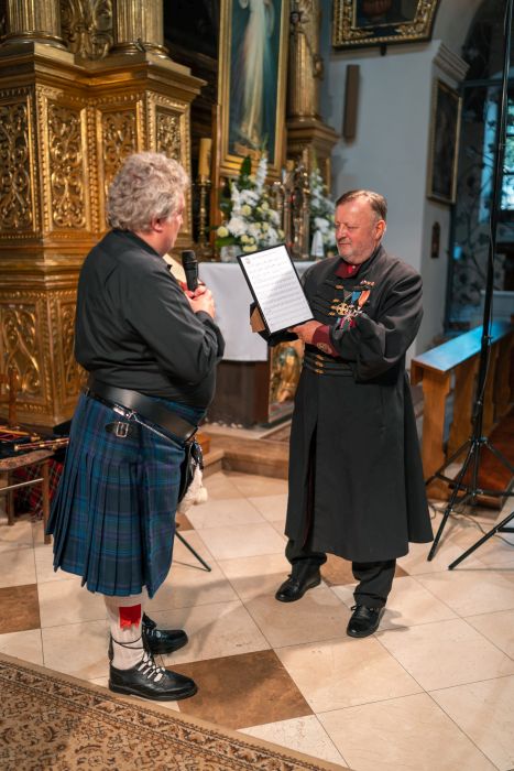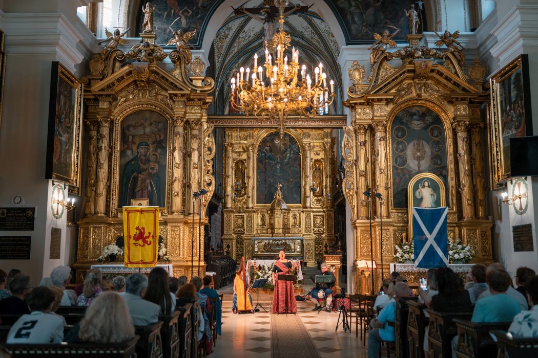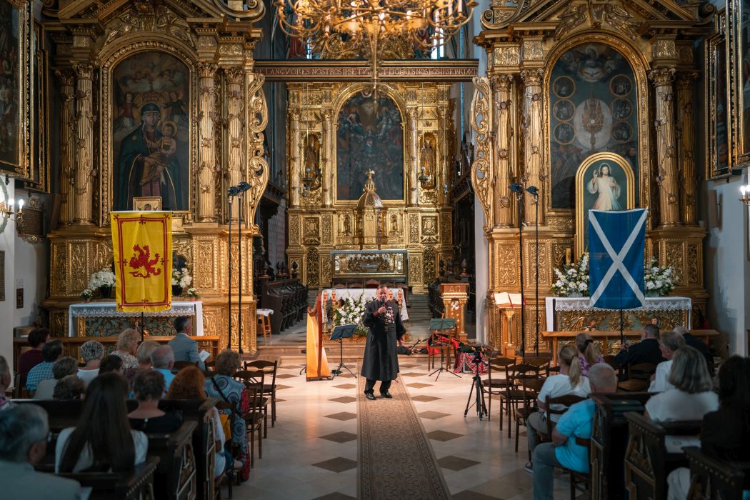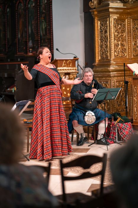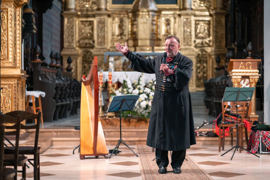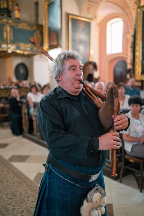 Koncert w krośnieńskiej Farze to była piękna podróż przez tradycje muzyki szkockiej, celtyckiej – zabrzmiały tradycyjne ballady, hymny, pibrochy, fragment suity koncertowej Tulsa, a także tradycyjna gaelicka pieśń śpiewana na Hebrydach (Taladh Chriosda, wspaniała Katarzyna Wiwer!), na finał koncertu usłyszeliśmy także monumentalne solo Lindsaya Davidsona na wielkich dudach szkockich „Highland Bagpipers solo”
