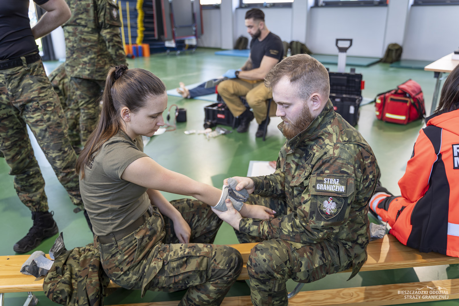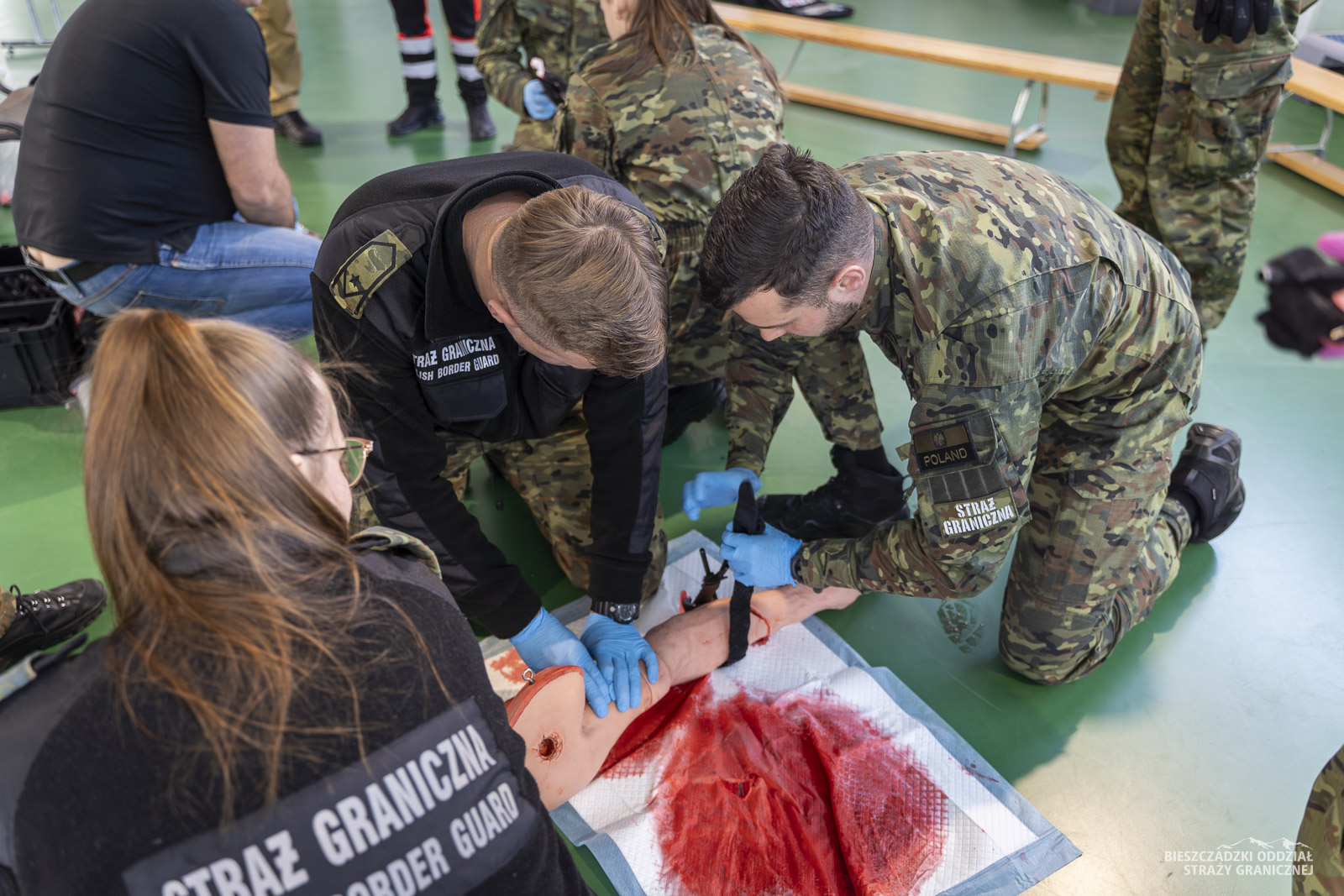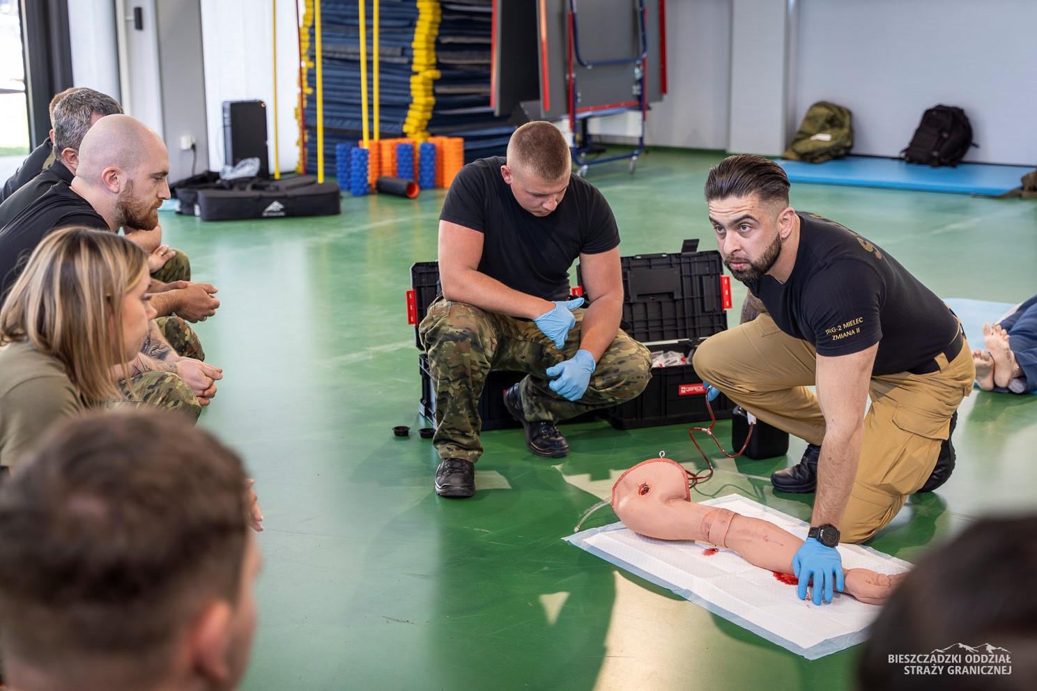 Szkolenie prowadzą ratownicy medyczni z Ośrodka Szkoleń Specjalistycznych Straży Granicznej w Lubaniu oraz z Bieszczadzkiego Oddziału SG. Jeden z paneli przeprowadził strażak PSP z Rzeszowa. Uczestnicy szkolenia ćwiczą oraz doskonalą umiejętności m.in. w zakresie: resuscytacji, elementów anatomii, zasad defibrylacji, taktyki działań ratowniczych oraz ewakuacji ze strefy zagrożenia. W ramach szkolenia przeprowadzane są zajęcia teoretyczne oraz praktyczne, a po ich zakończeniu odbędzie się egzamin przed komisją.