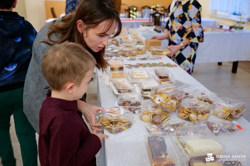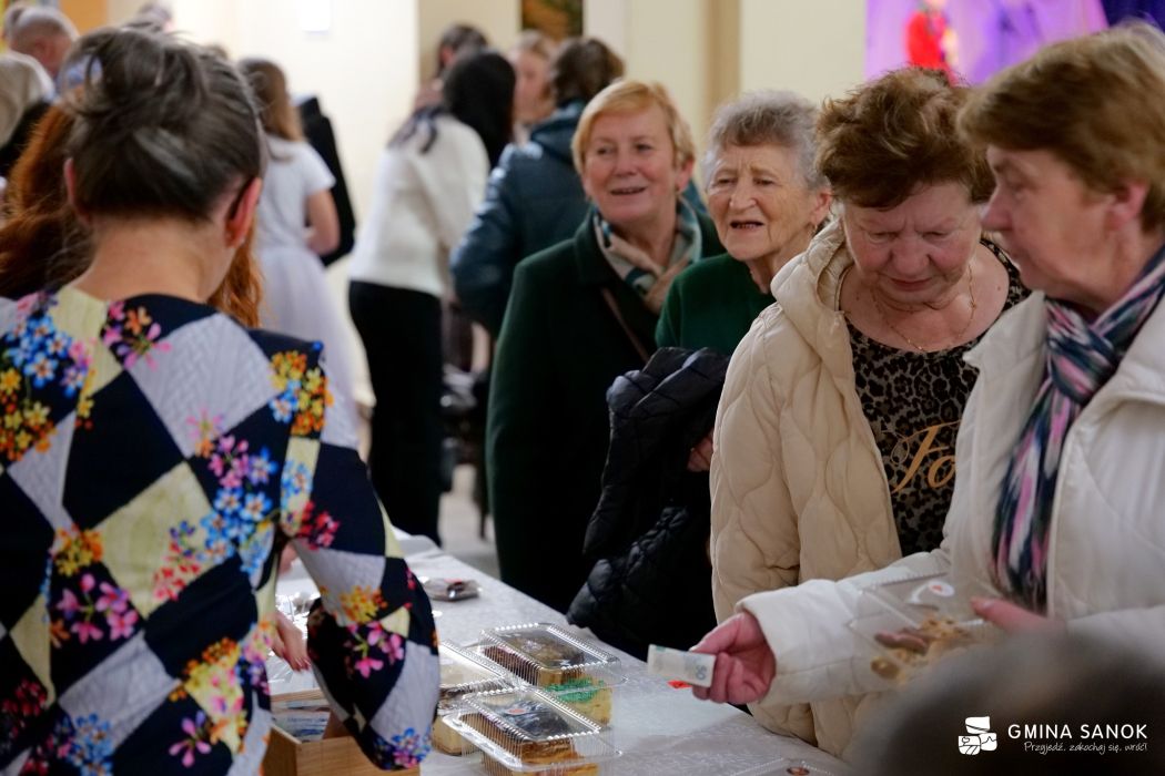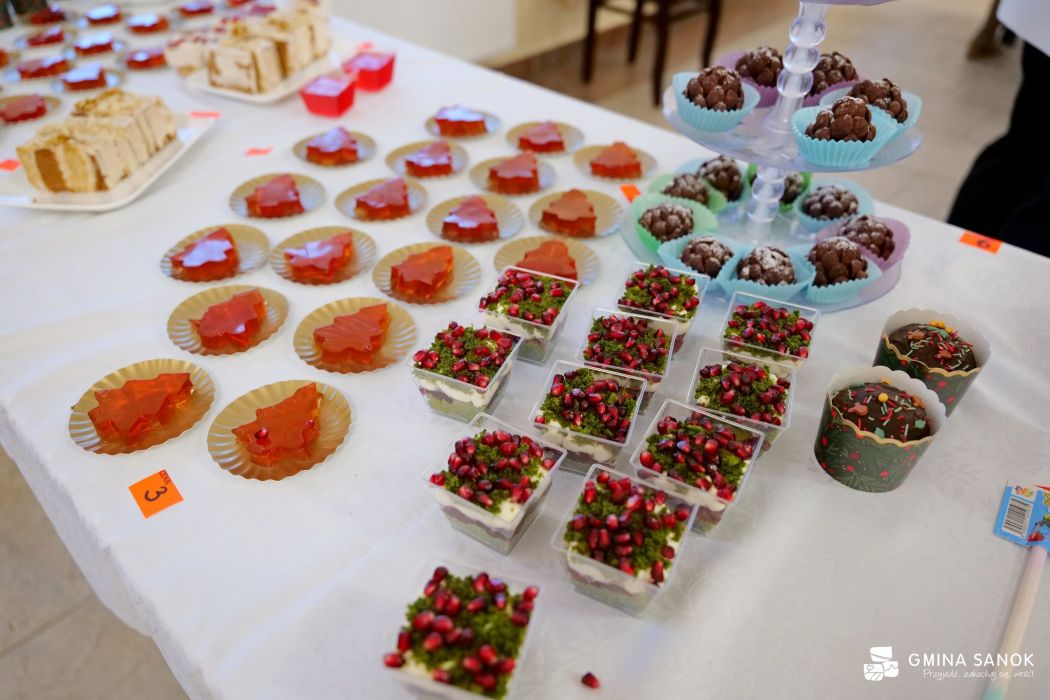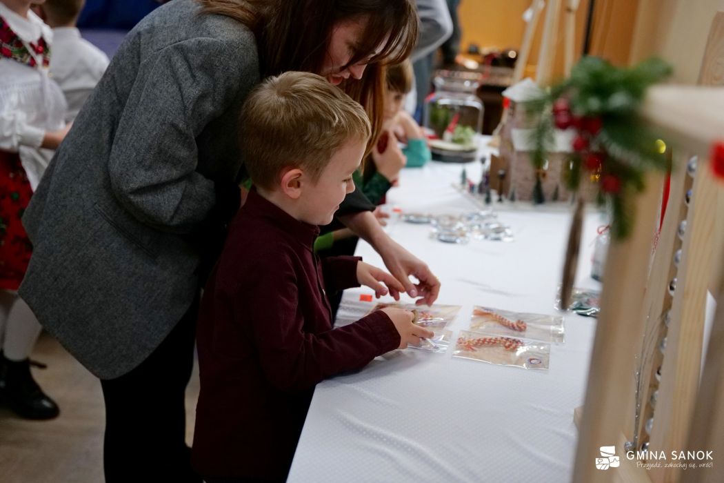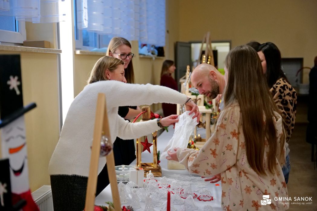 Wydarzeniu towarzyszył również kiermasz świąteczny, który cieszył się ogromnym zainteresowaniem uczestników. Na stoiskach można było znaleźć ręcznie wykonane ozdoby bożonarodzeniowe, stroiki oraz domowe wypieki i słodkości przygotowane przez rodziców i uczniów szkoły. Kolorowe dekoracje, zapach świątecznych ciast i serdeczna atmosfera sprawiły, że wydarzenie miało wyjątkowo rodzinny charakter.
