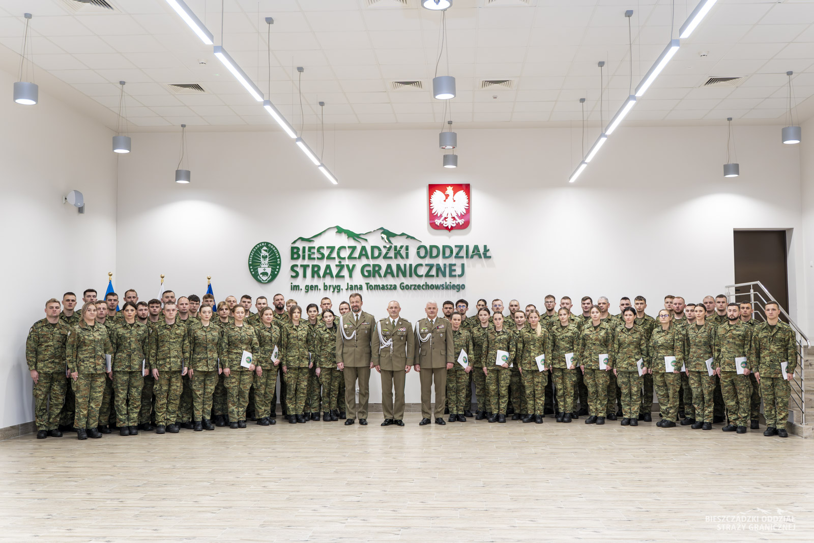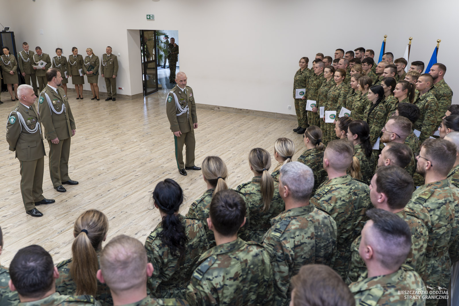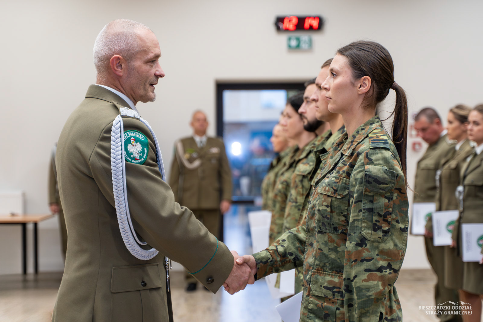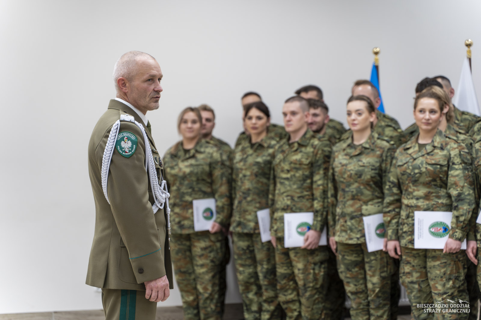 Z kolei 59 funkcjonariuszy uzyskało stopień kaprala po ukończeniu szkolenia podstawowego, a następnie podoficerskiego w Ośrodku Szkoleń Specjalistycznych Straży Granicznej w Lubaniu. Komendant Bieszczadzkiego Oddziału Straży Granicznej pogratulował wszystkim awansowanym, życząc im wytrwałości oraz satysfakcji z pełnienia odpowiedzialnej służby na rzecz bezpieczeństwa państwa.