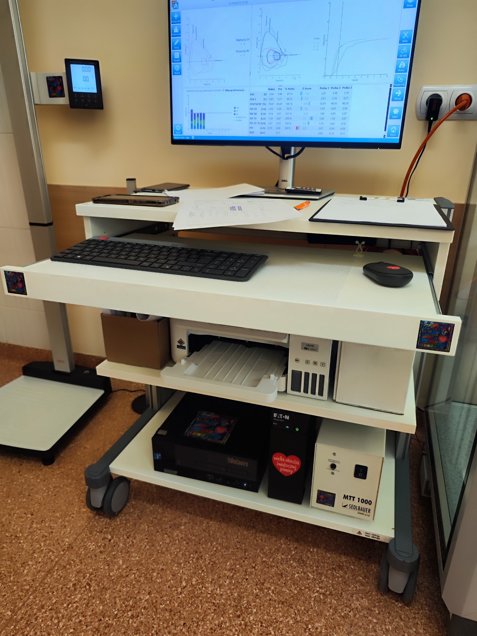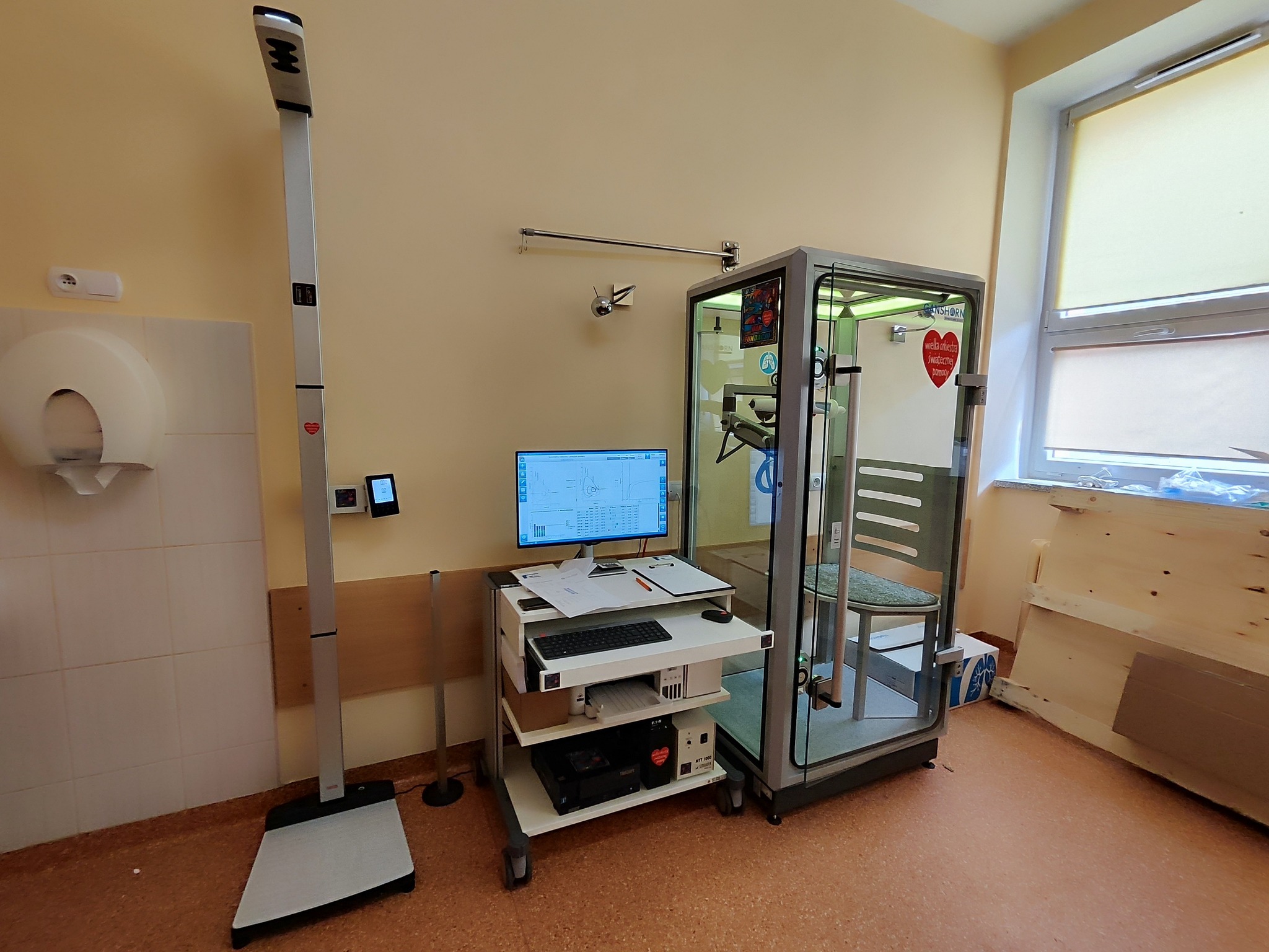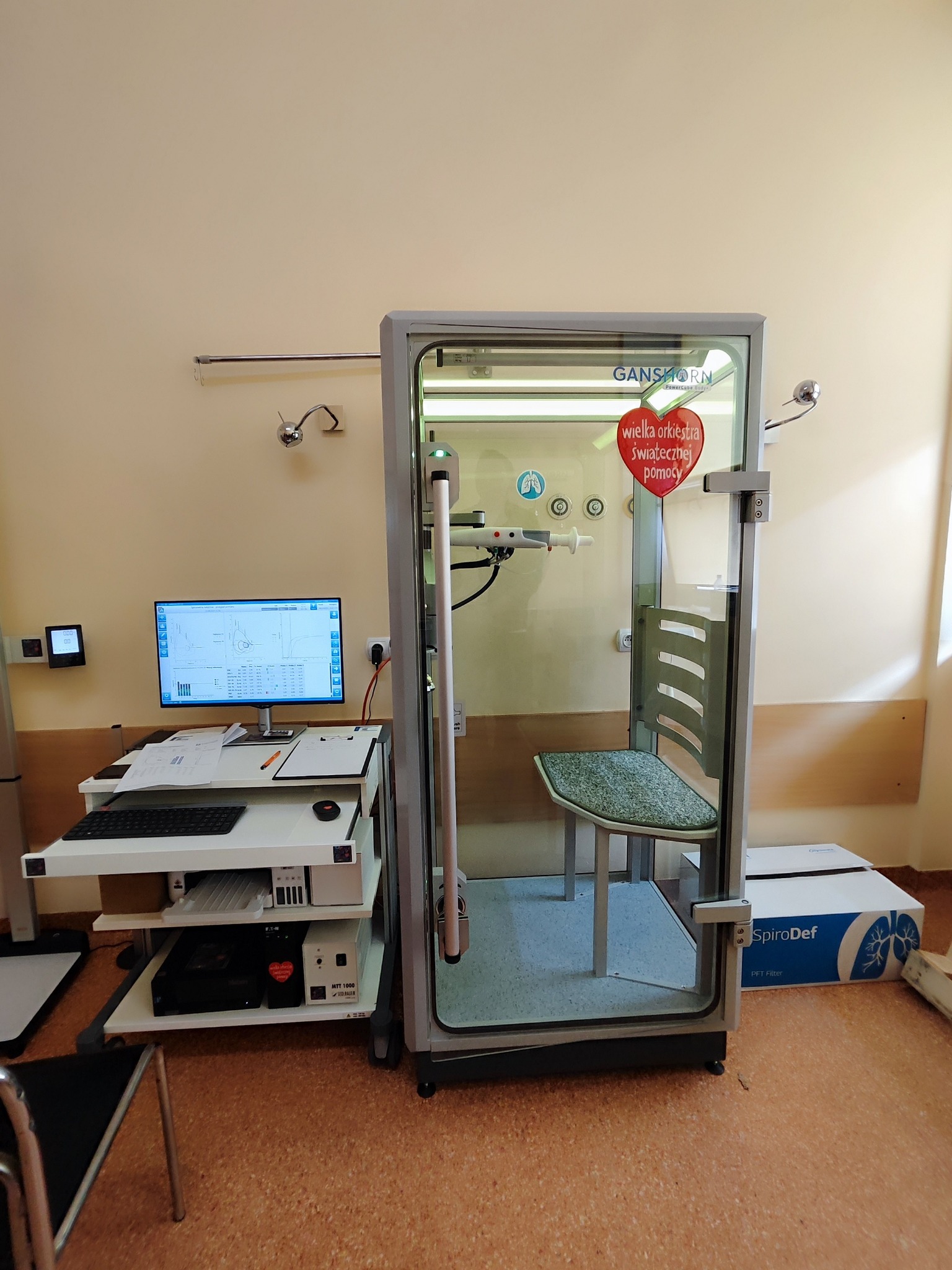 Nowy bodypletyzmograf pozwala m.in. na pomiar całkowitej pojemności płuc (TLC), objętości zalegającej (RV), oporu w drogach oddechowych (Raw), a także wykonanie spirometrii i testów dyfuzyjnych (DLCO). Urządzenie umożliwia również przeprowadzanie testów prowokacyjnych oraz oceny wentylacji płuc. Badania odbywają się w specjalnej, przezroczystej kabinie, z zachowaniem najwyższych standardów precyzji.