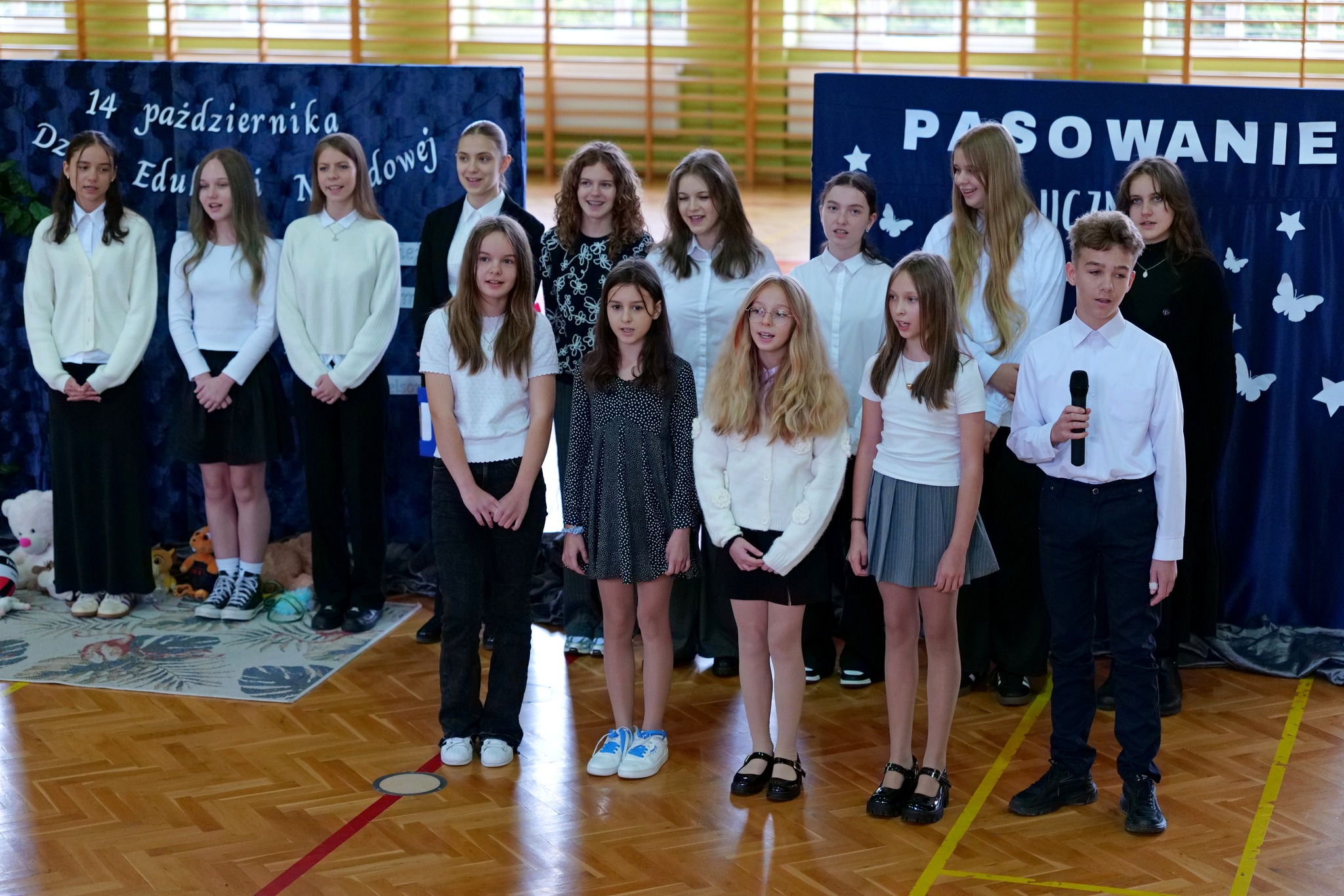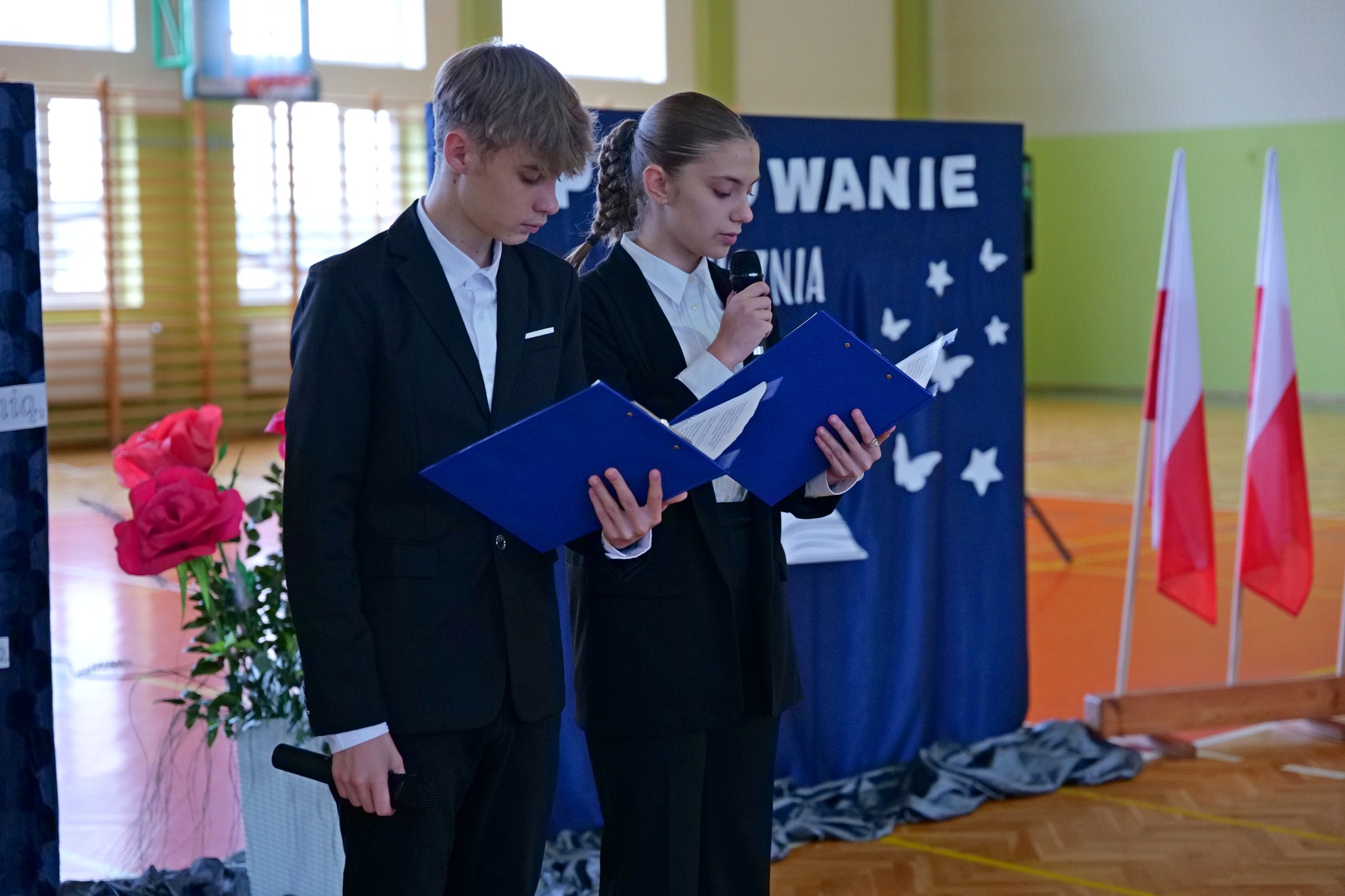 Uroczystość rozpoczęła się od powitania wszystkich zebranych przez dyrektor szkoły Magdalenę Wiszyńską. Po wprowadzeniu sztandaru i odśpiewaniu hymnu państwowego odbyła się część artystyczna przygotowana przez uczniów klas starszych, a następnie przez pierwszoklasistów wraz z wychowawczynią. Mali uczniowie z dumą zaprezentowali swoje umiejętności, po czym w obecności dyrekcji, nauczycieli, rodziców i zaproszonych gości złożyli ślubowanie i zostali symbolicznie pasowani na uczniów.