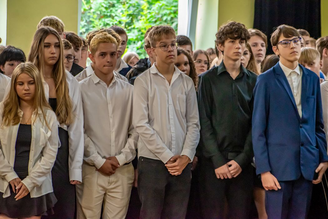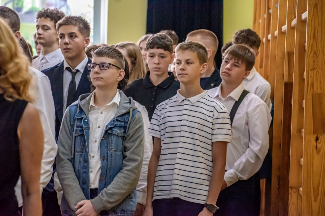 Uroczystość rozpoczęła się Mszą Świętą w kościele Farnym, po czym kontynuowano ją w sali gimnastycznej szkoły. To tam uczniowie klas pierwszych spotkali się z nauczycielami i dyrekcją oraz złożyli uroczyste ślubowanie, stając się pełnoprawnymi członkami szkolnej społeczności.