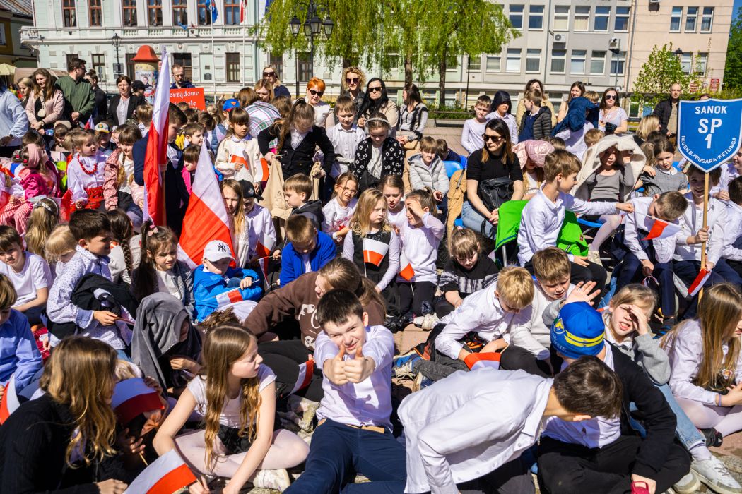 Z tej okazji warto wspomnieć wyjątkowe wydarzenie, które miało miejsce 28 kwietnia na sanockim Rynku. Podczas akcji „Przedszkolaki z Biało-Czerwoną”, najmłodsi mieszkańcy miasta – ubrani w narodowe barwy, z flagami i chorągiewkami w dłoniach – z dumą zamanifestowali swoją miłość do Ojczyzny. Były wspólne piosenki, wiersze, występy artystyczne i dużo uśmiechu – wszystko to w duchu radości i patriotyzmu.