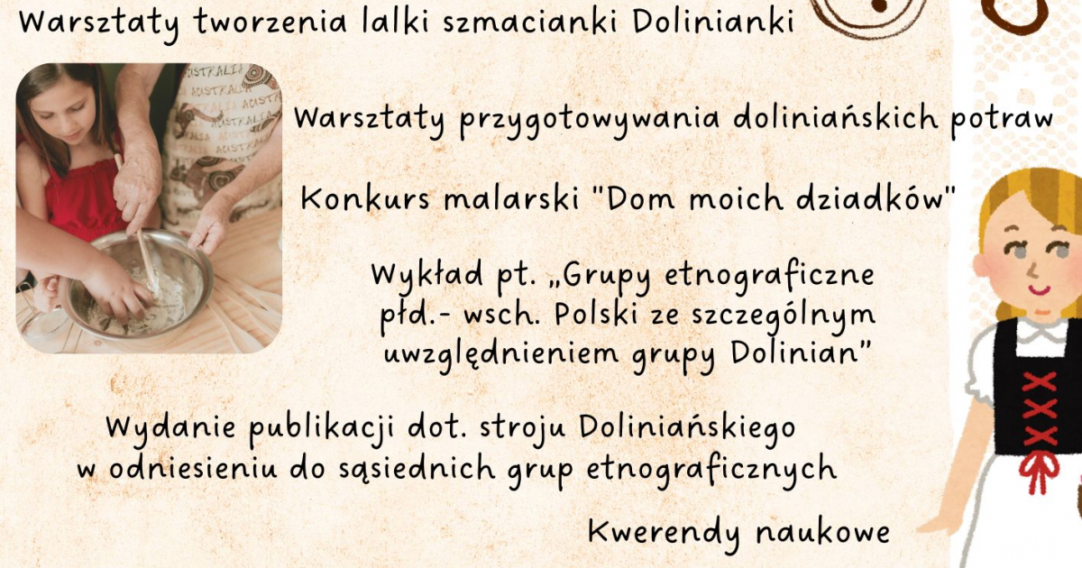 Projekt ma na celu przybliżenie dzieciom i młodzieży dziedzictwa kulturowego Dolinian, grupy etnograficznej zamieszkującej kiedyś okolice Sanoka. To cykl działań edukacyjno-animacyjnych, które nie tylko przypominają o bogactwie lokalnych tradycji, ale także aktywnie angażują młode pokolenie w ich ochronę, dokumentowanie i twórczą interpretację.