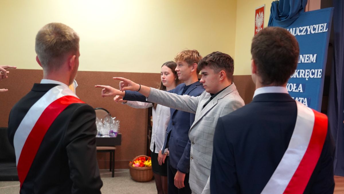 Szczególnym momentem uroczystości było ślubowanie uczniów klas pierwszych. Nowi uczniowie złożyli przysięgę i stali się pełnoprawnymi członkami społeczności szkolnej.