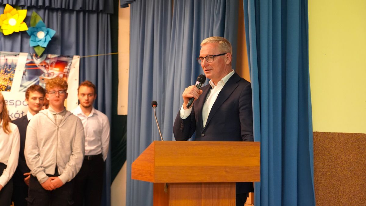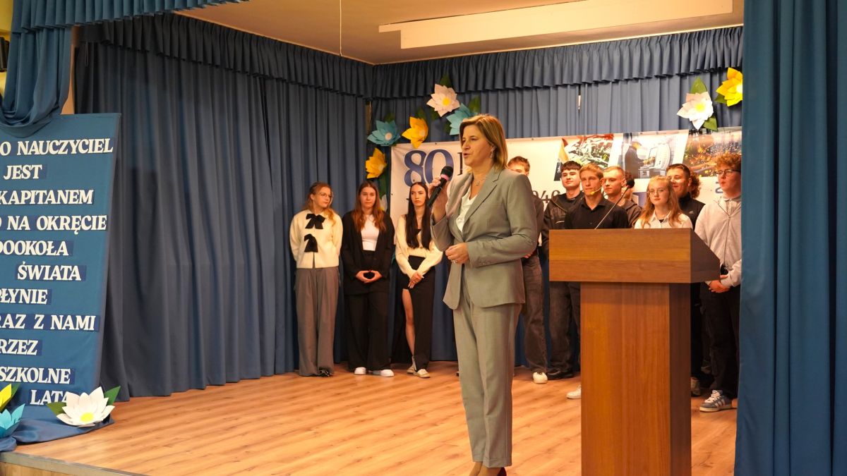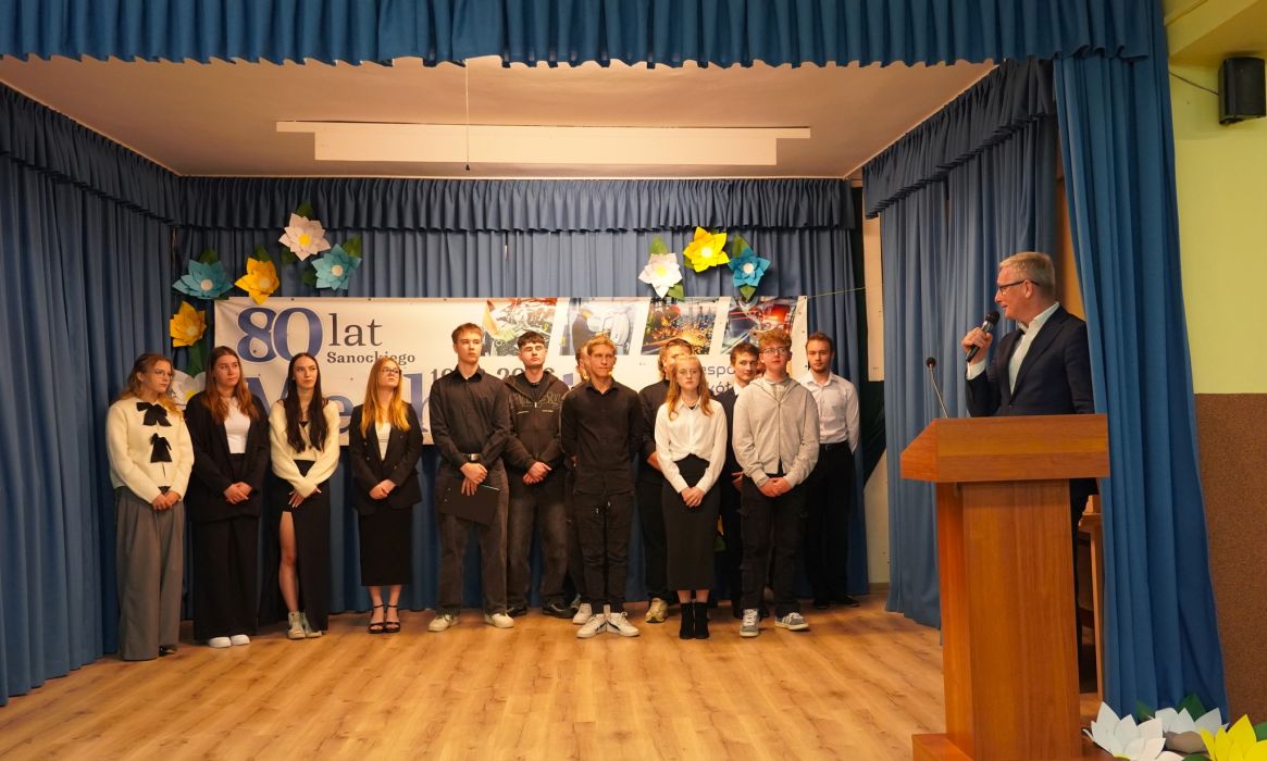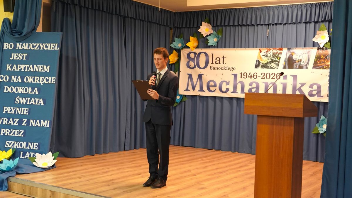 Podczas wydarzenia głos zabrał Starosta Sanocki Robert Pieszczoch, który złożył serdeczne życzenia wszystkim nauczycielom i pracownikom szkoły. Dziękował za ich codzienny trud, zaangażowanie oraz pasję w przekazywaniu wiedzy i wychowywaniu młodego pokolenia. Starosta pogratulował również uczniom, którzy przygotowali część artystyczną uświetniającą szkolne święto.