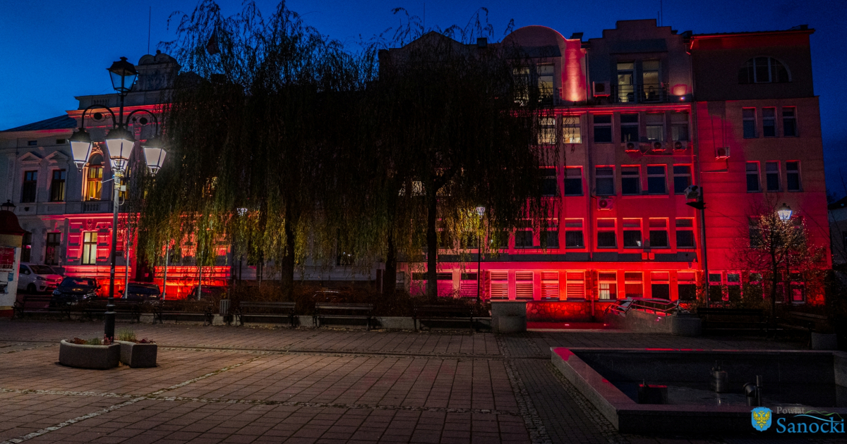 W ramach ogólnopolskich działań i w geście solidarności z pokrzywdzonymi, Powiat Sanocki włączył się w akcję symbolicznego podświetlenia budynków na kolor czerwony. Jest to barwa jednoznacznie symbolizująca sprzeciw wobec przemocy.