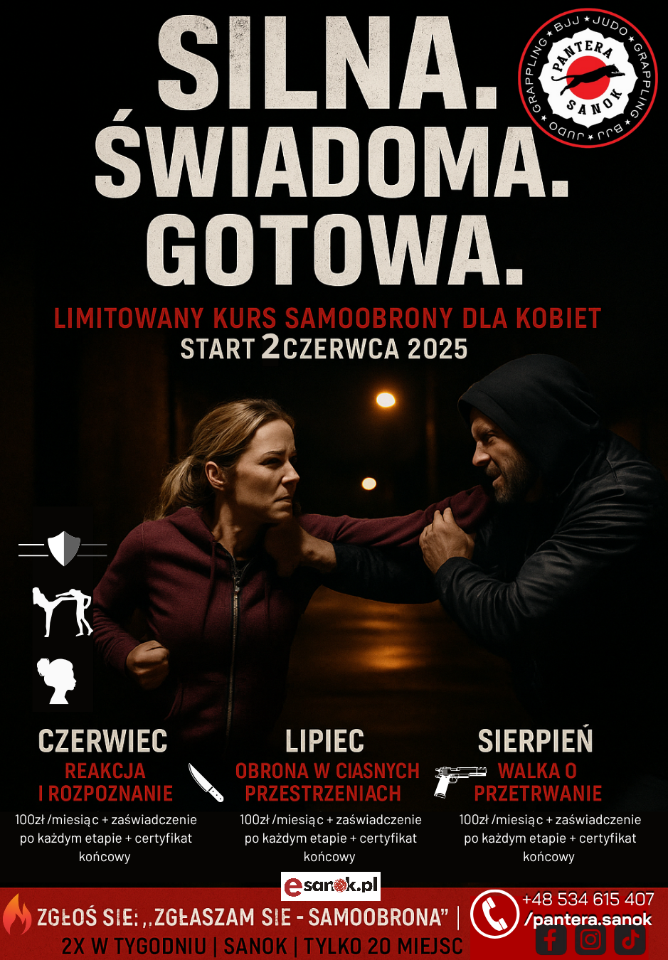 SANOK. W Klubie Sportowym Pantera Sanok rusza wyjątkowy, intensywny kurs samoobrony zaprojektowany specjalnie dla kobiet, które chcą czuć się bezpiecznie – w każdej sytuacji. Trzy miesiące praktycznego treningu, zero teorii i półśrodków, tylko konkretne umiejętności, które mogą uratować życie.