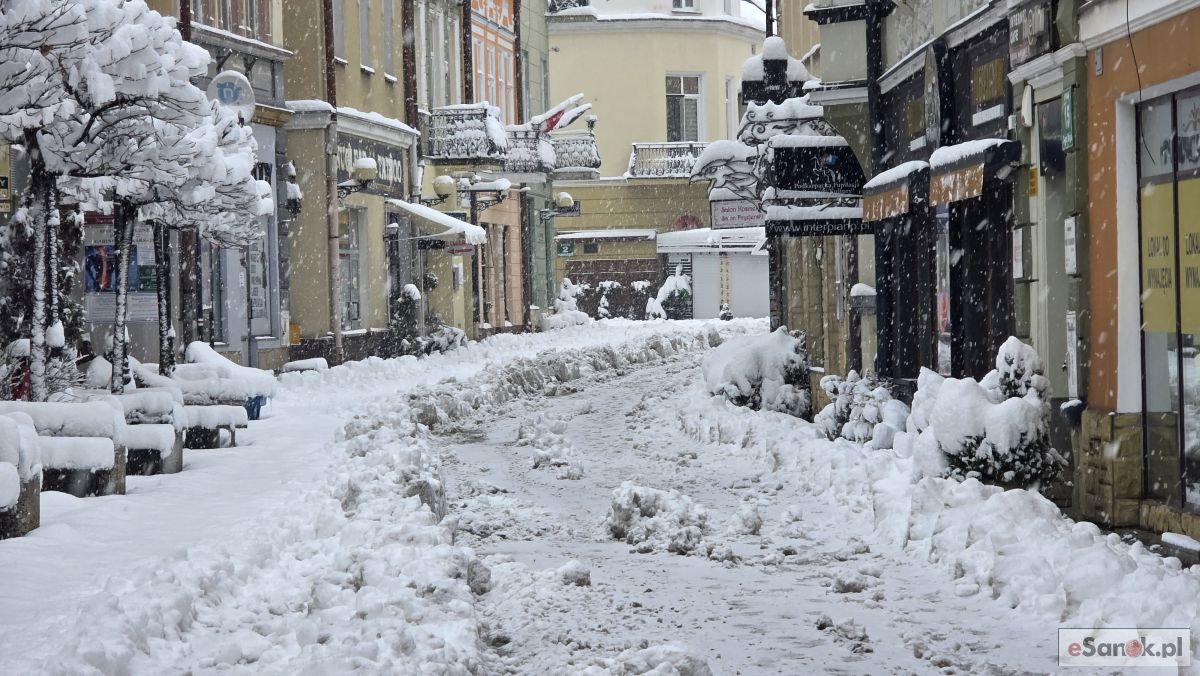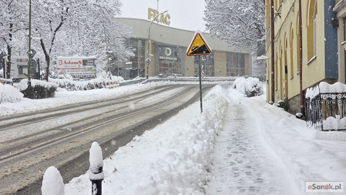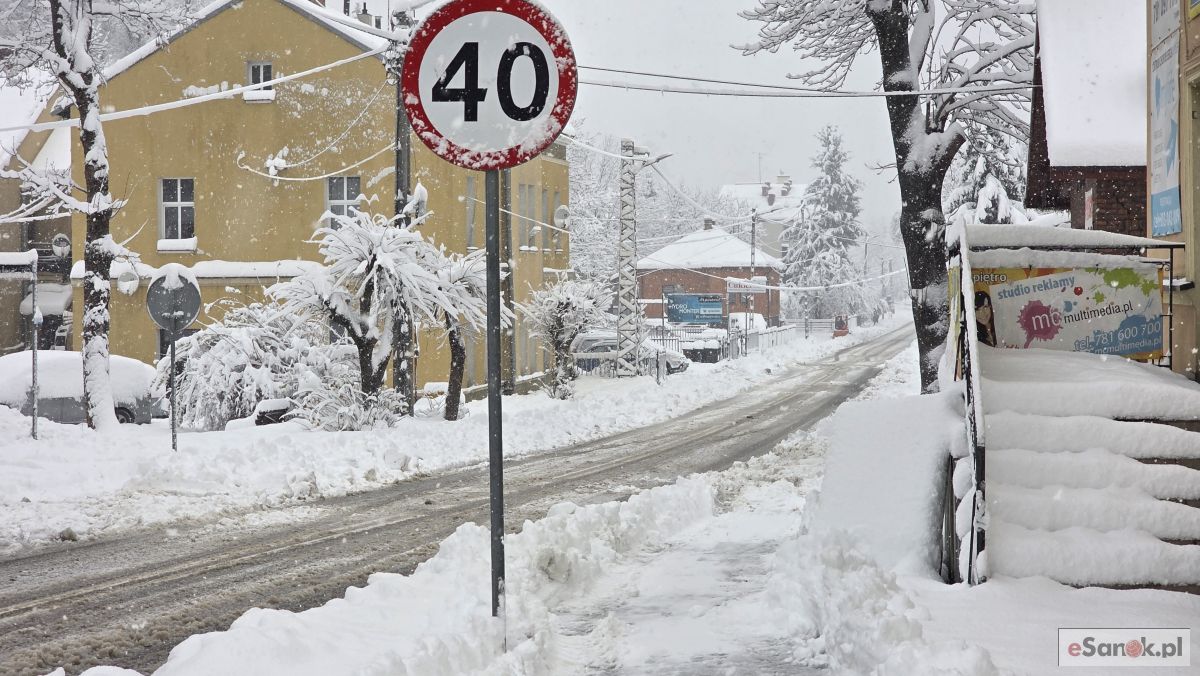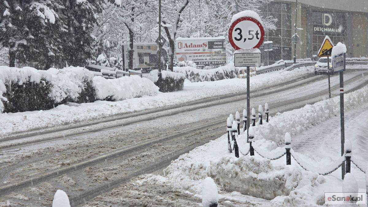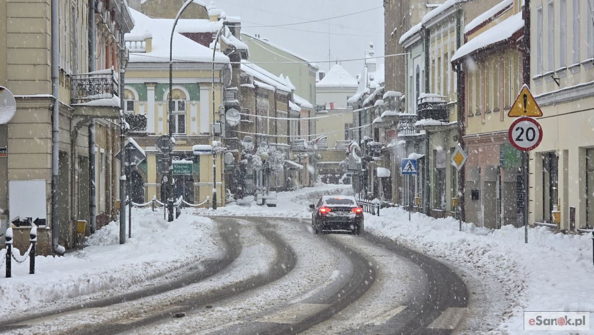Sanok i okoliczne miejscowości od rana zmagają się z wyjątkowo intensywnymi opadami śniegu. Prognozy wskazują, że jeszcze dziś pokrywa śnieżna może osiągnąć nawet 35 centymetrów, co znacząco utrudnia poruszanie się po mieście i drogach powiatowych. Służby miejskie oraz gminne pracują nieprzerwanie, odśnieżając główne ulice, chodniki i miejsca newralgiczne dla ruchu pieszych i kierowców.