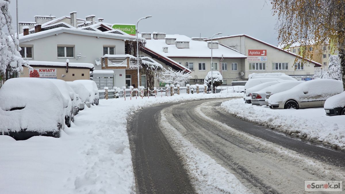 Pierwszy śnieg w Sanoku. Policja ostrzega kierowców – IMGW wydaje alerty [ZDJĘCIA]