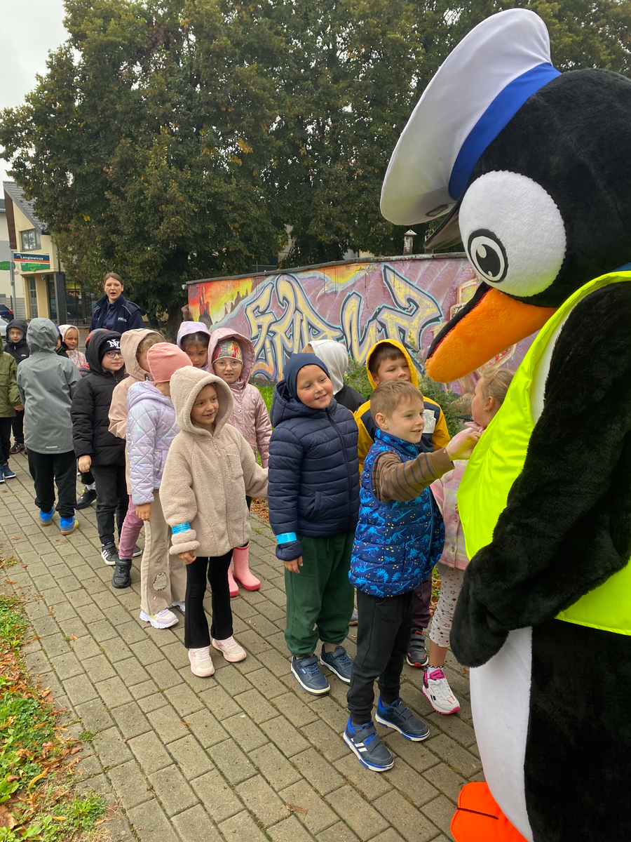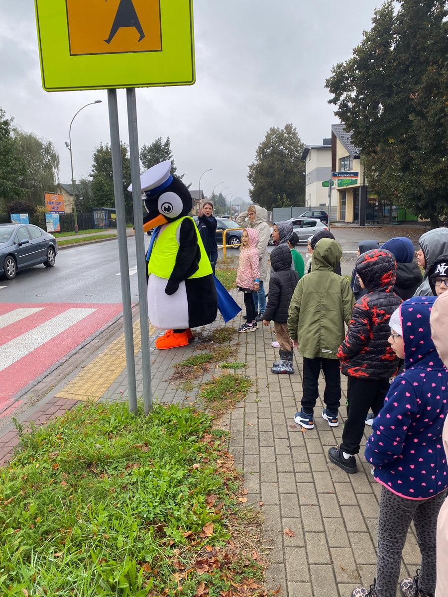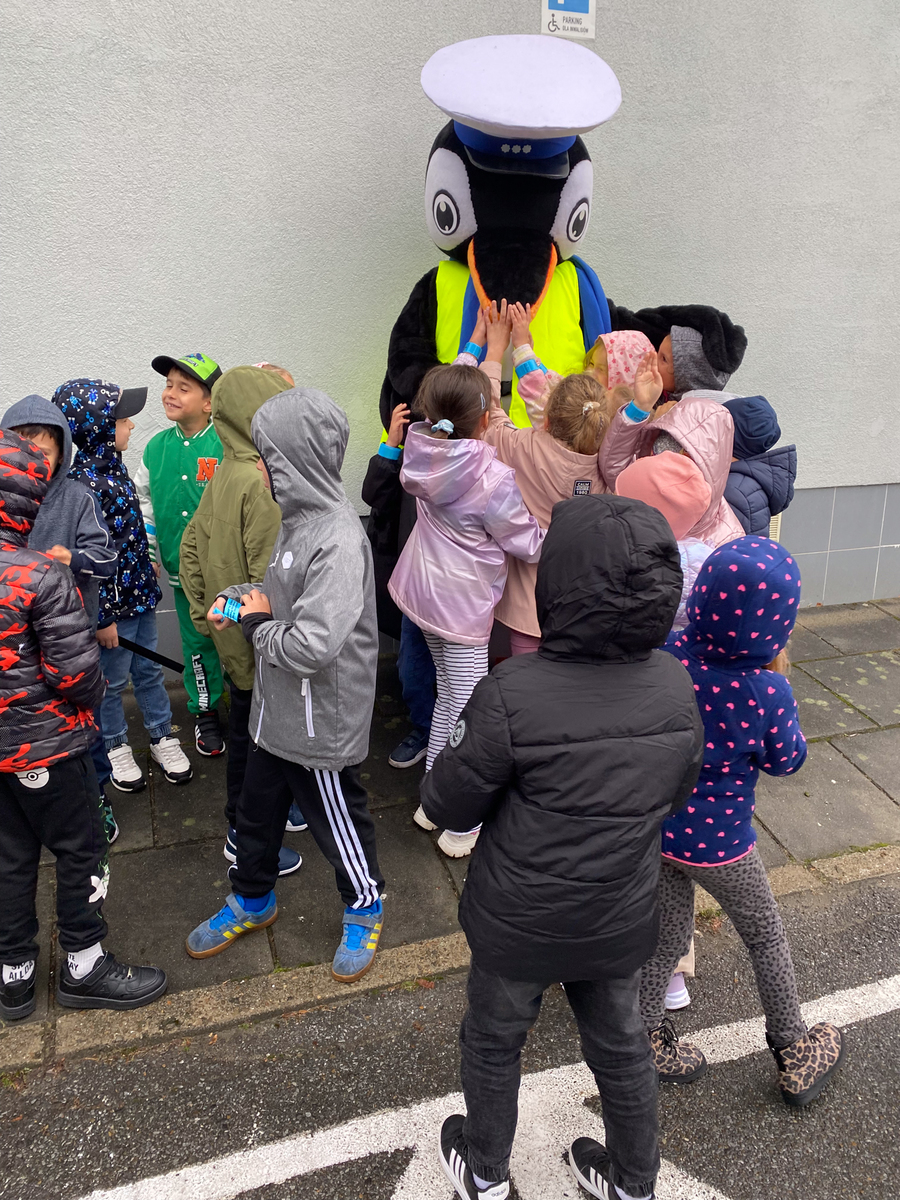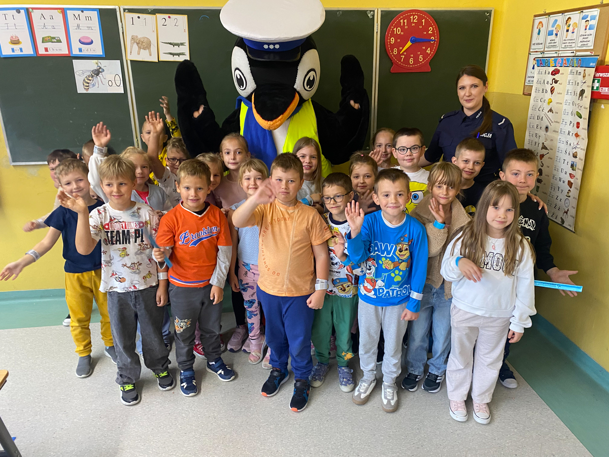 SANOK: Policjanci dbają o bezpieczeństwo najmłodszych. Pomaga im pingwin Stefan