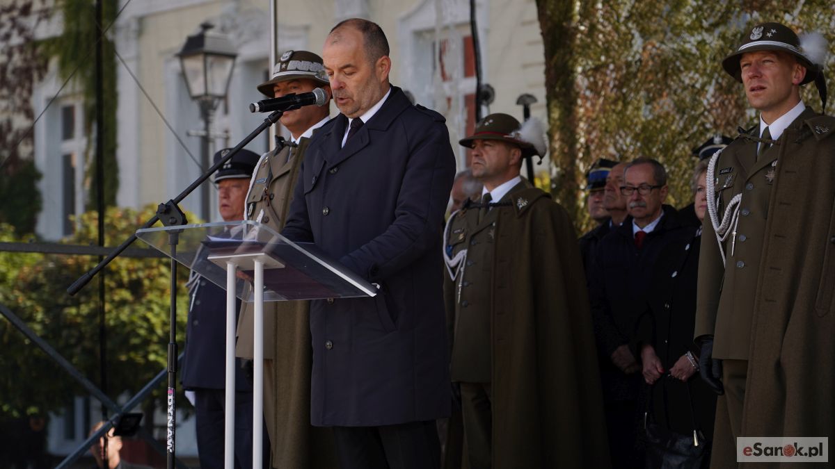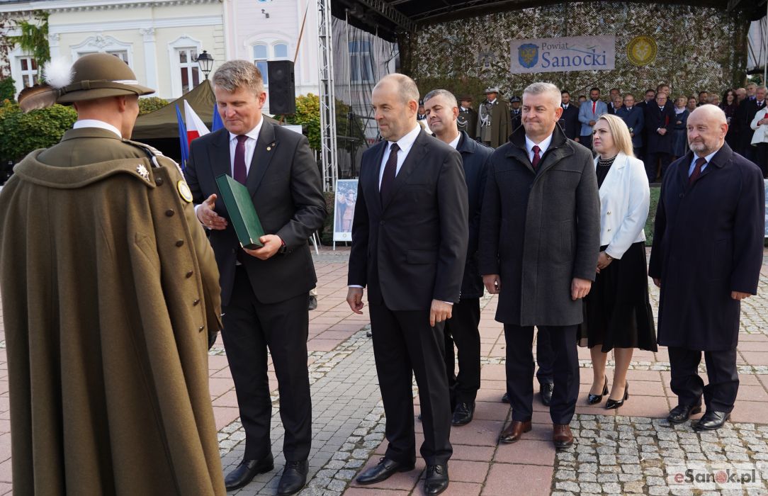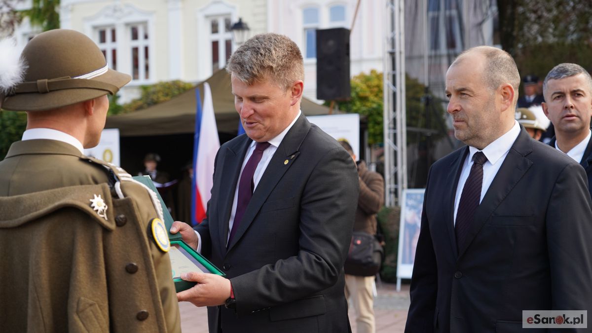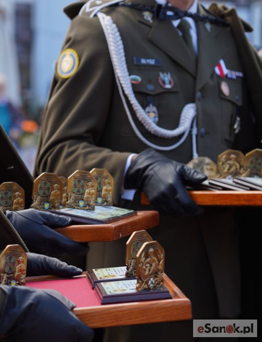 Po nabożeństwie uczestnicy obchodów, w tym przedstawiciele władz samorządowych, służb mundurowych, organizacji społecznych, młodzież szkolna oraz mieszkańcy Sanoka, przemaszerowali na rynek, gdzie odbył się uroczysty apel. W jego trakcie wręczono chorągiew – symbol honoru i wierności wojskowym ideałom – oraz odznaczenia i medale dla zasłużonych osób.