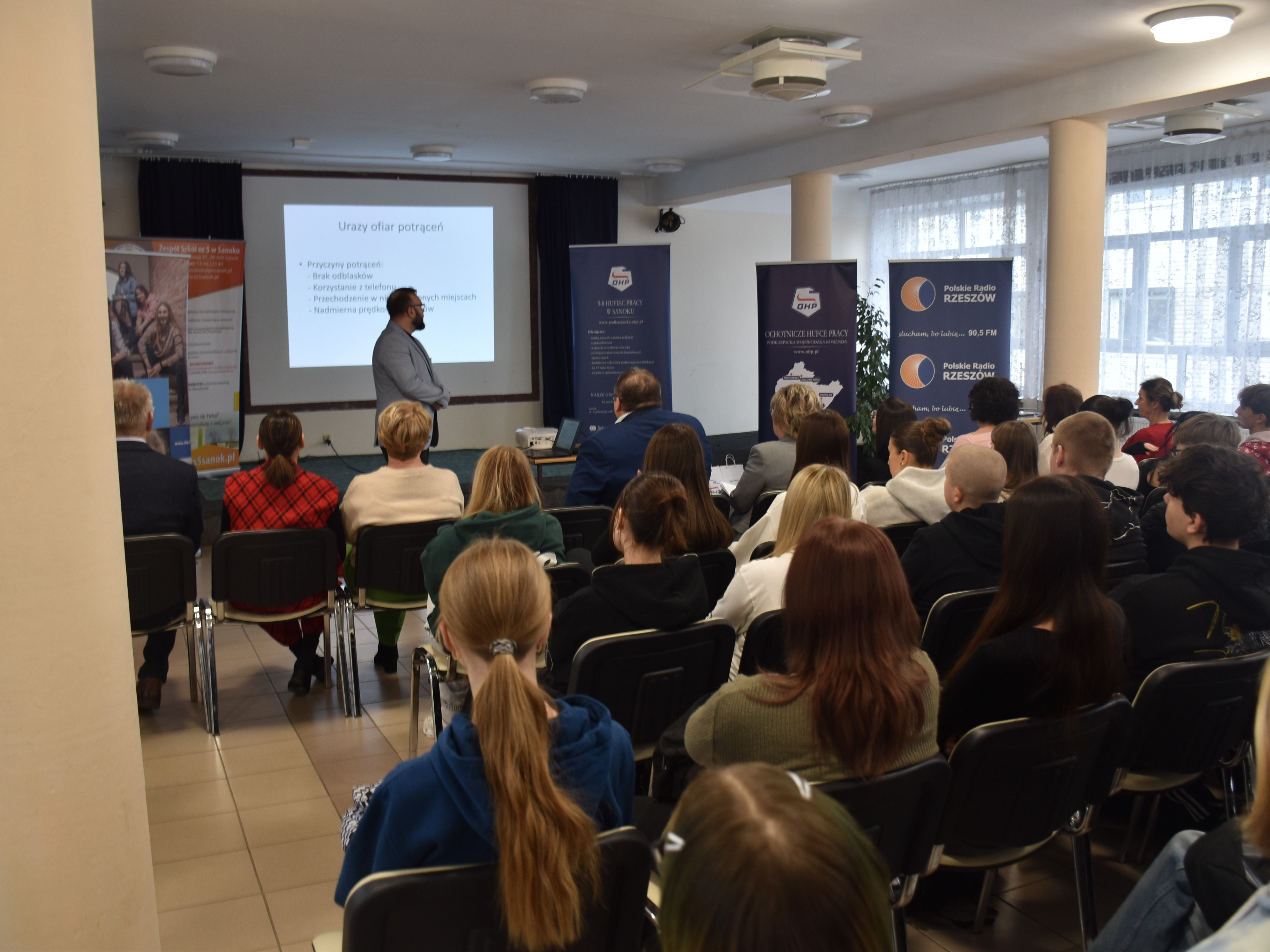 Sanok w tym tygodniu stał się centrum rozmów o bezpieczeństwie na drogach. W Zespole Szkół nr 5 odbyła się kolejna konferencja z cyklu poświęconego ochronie młodych pieszych, zorganizowana przez Podkarpacką Wojewódzką Komendę OHP w ramach kampanii #WIDOCZNIWMROKU. Wydarzenie zgromadziło młodzież, kadrę, partnerów oraz lokalnych przedstawicieli życia społecznego, podkreślając znaczenie korzystania z elementów odblaskowych w słabo oświetlonych miejscowościach.