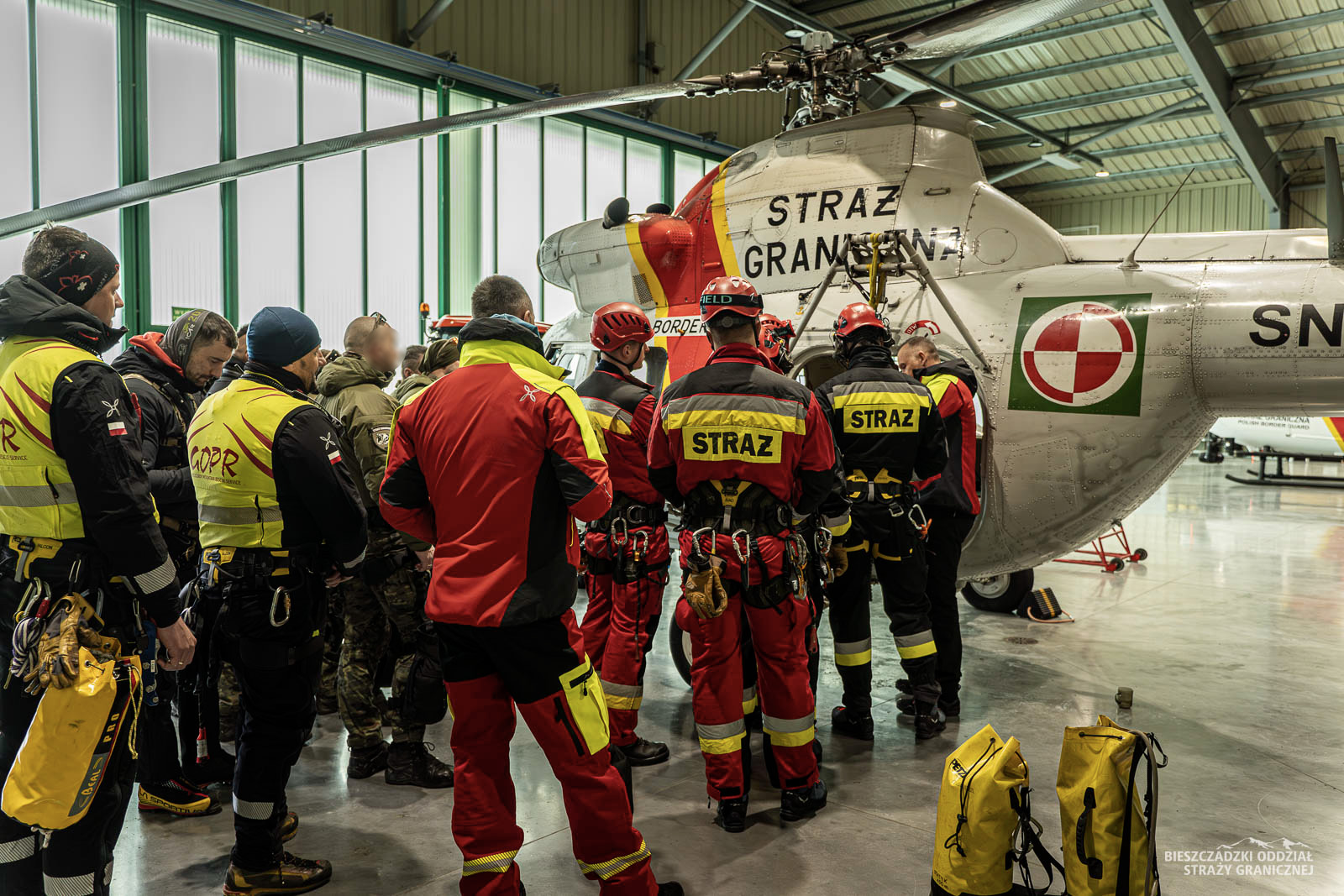 W 4-dniowym szkoleniu uczestniczyło łącznie blisko 30 funkcjonariuszy i ratowników. Byli to głównie funkcjonariusze Wydziału Zabezpieczenia Działań Bieszczadzkiego Oddziału SG oraz ich odpowiednicy z Nadodrzańskiego Oddziału SG, a także ratownicy Grupy Bieszczadzkiej GOPR i funkcjonariusze Specjalistycznej Grupy Ratownictwa Wysokościowego KM PSP w Rzeszowie. Szkolenie zrealizowano z wykorzystaniem śmigłowca należącego do IV Wydziału Lotniczego Biura Lotnictwa SG w Huwnikach, a za jego sterami siedział jeden z najbardziej doświadczonych pilotów SG mjr SG Cezary Kolibek, pełniący obowiązki naczelnika wydziału.