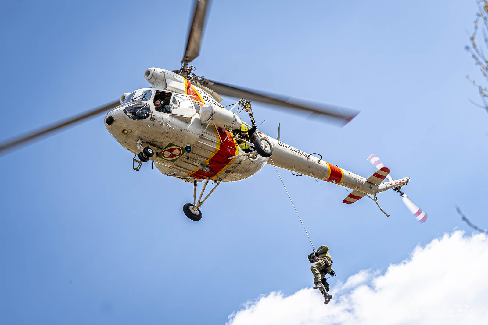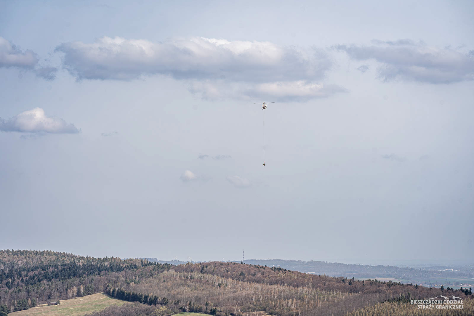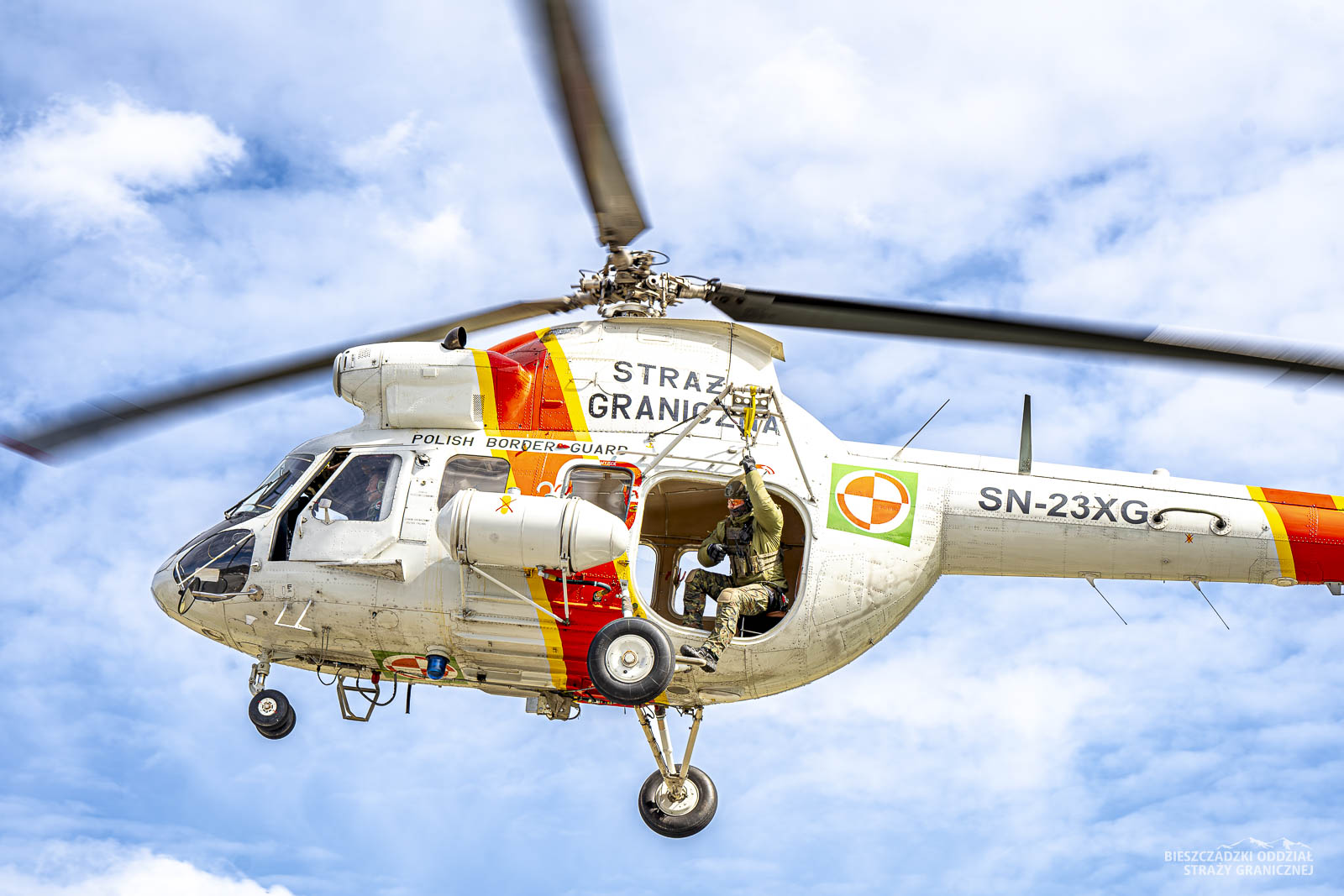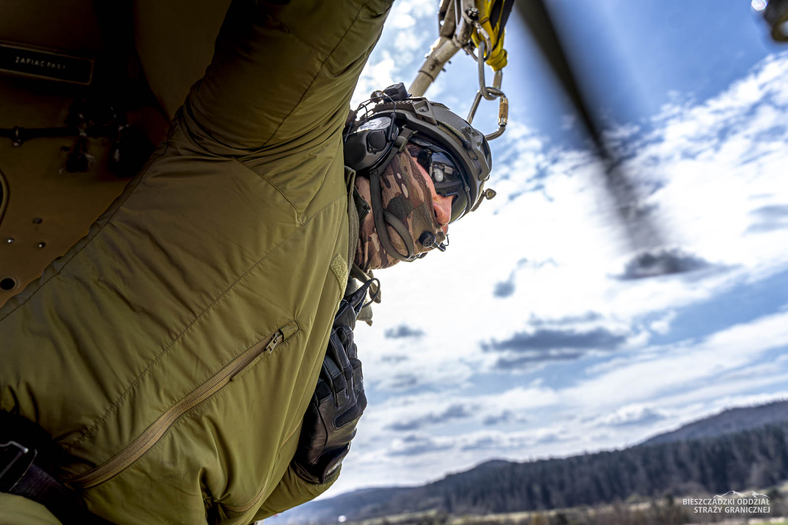 BIESZCZADY. W okolicach Huwnik i Arłamowa funkcjonariusze Straży Granicznej, Państwowej Straży Pożarnej i ratownicy Bieszczadzkiego GOPR-u szlifowali umiejętności wykorzystania technik ratowniczych z udziałem śmigłowca SG.