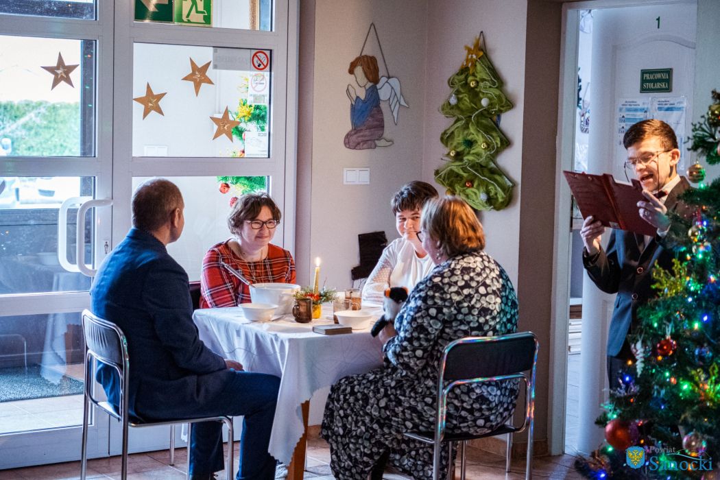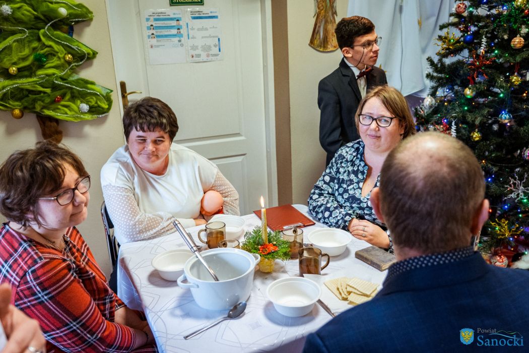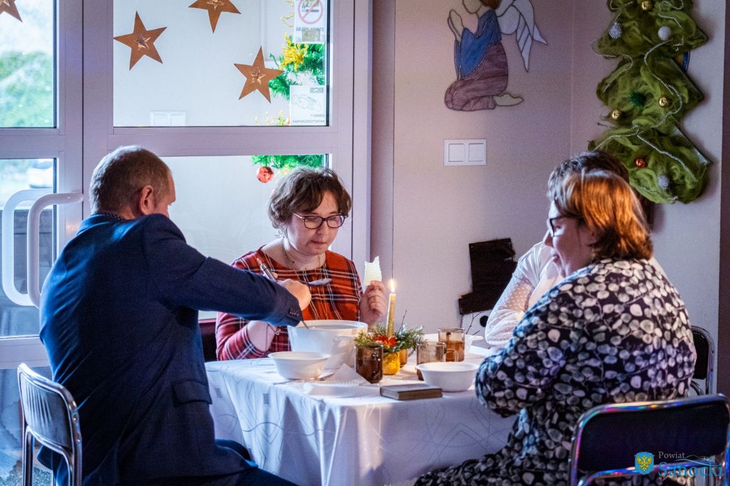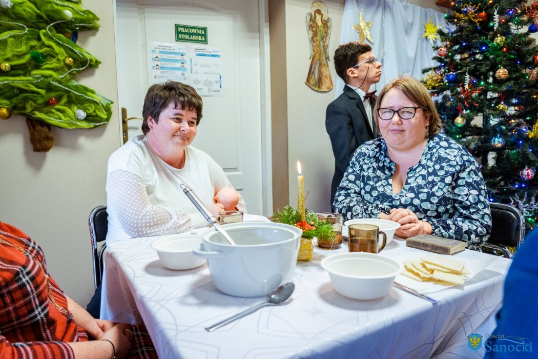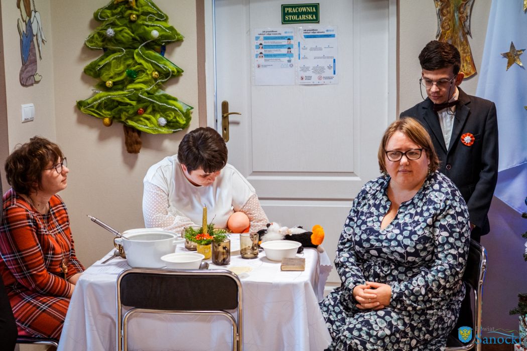 Po części artystycznej wszyscy zasiedli do wspólnej wigilii. Nie zabrakło świątecznych potraw, serdecznych życzeń oraz wspólnego śpiewania kolęd. Atmosfera była ciepła i rodzinna, a spotkanie stało się okazją do integracji, rozmów i podkreślenia, jak ważną rolę w lokalnej społeczności pełni Środowiskowy Dom Samopomocy w Wolicy.