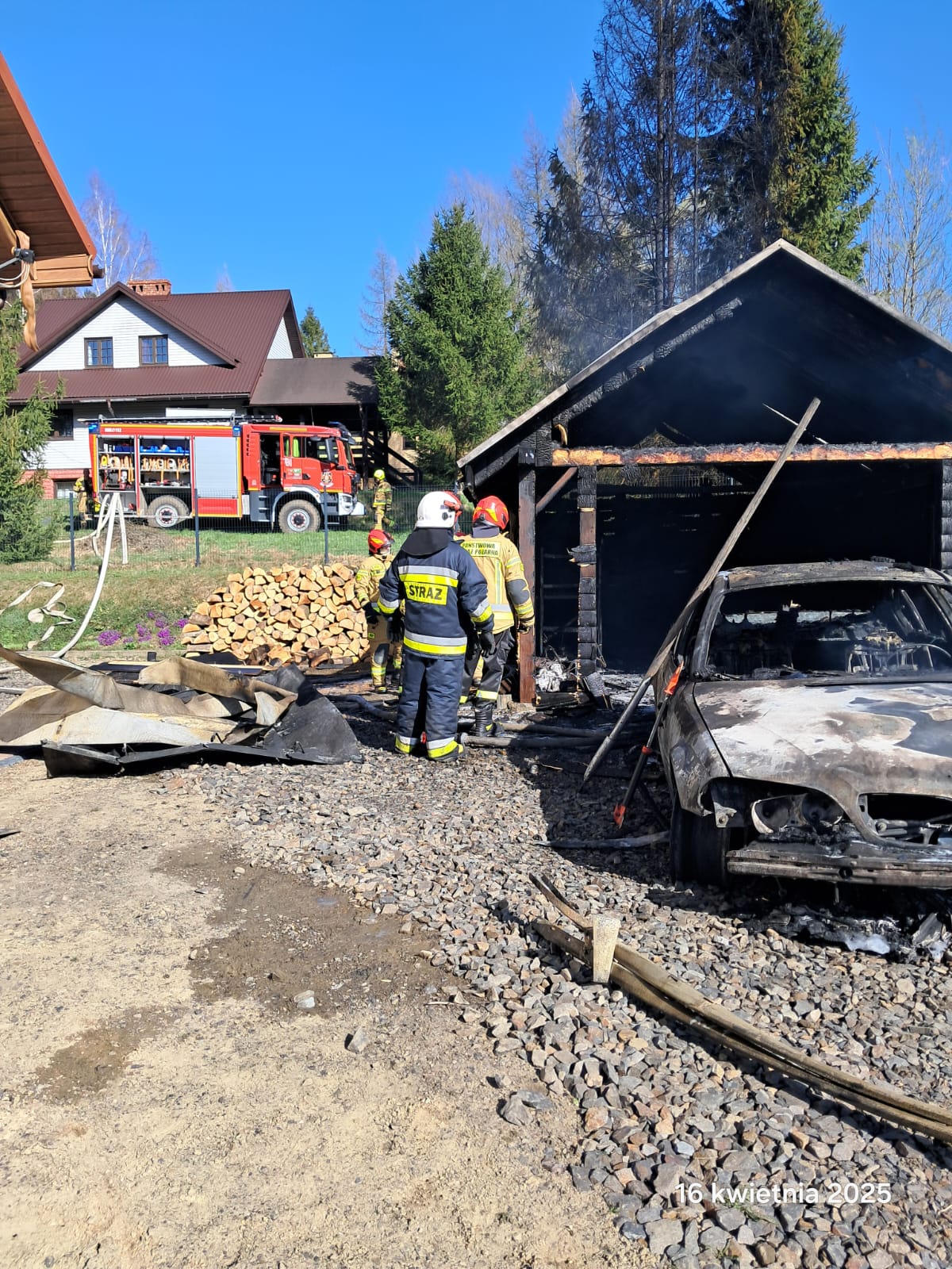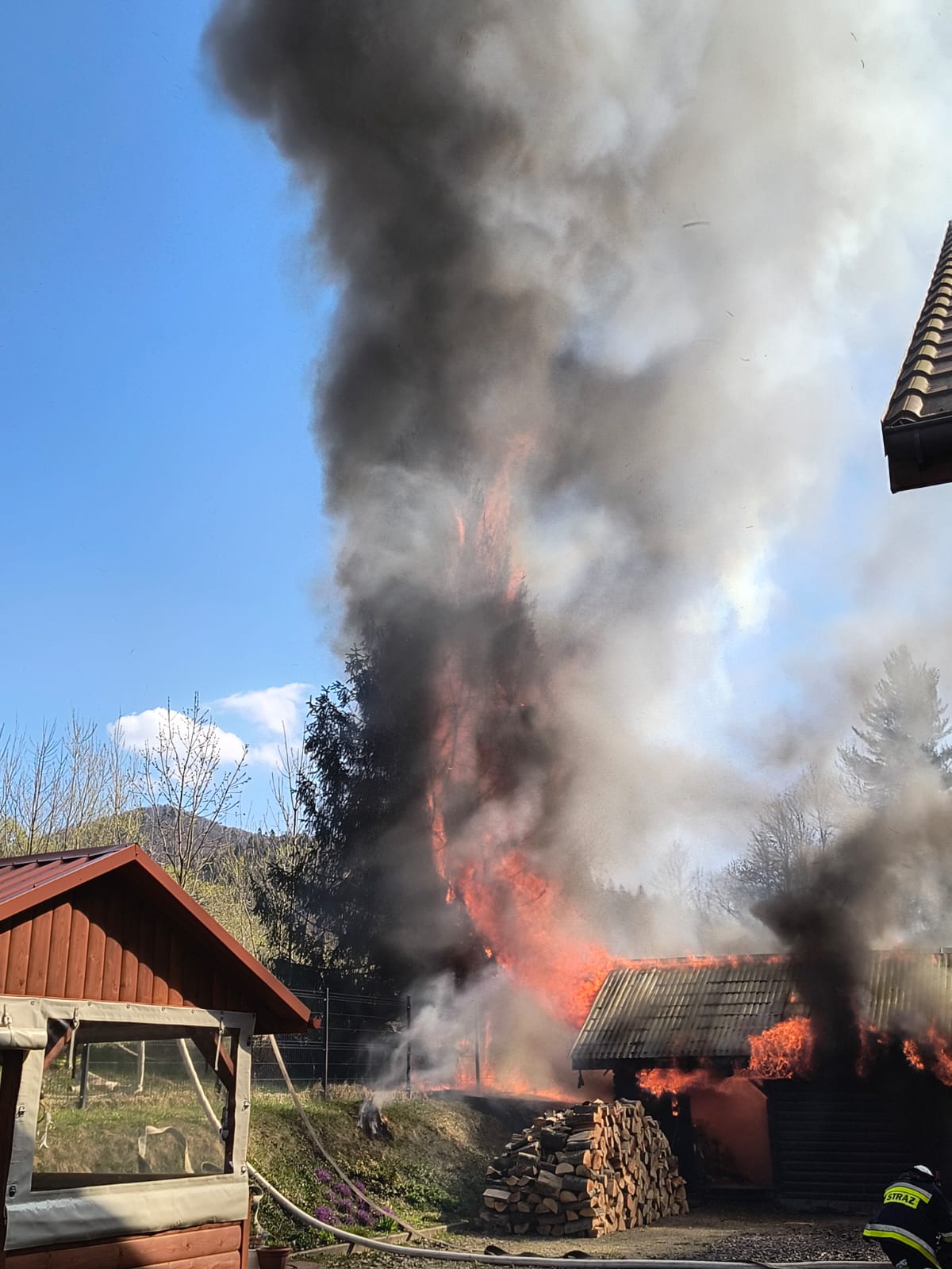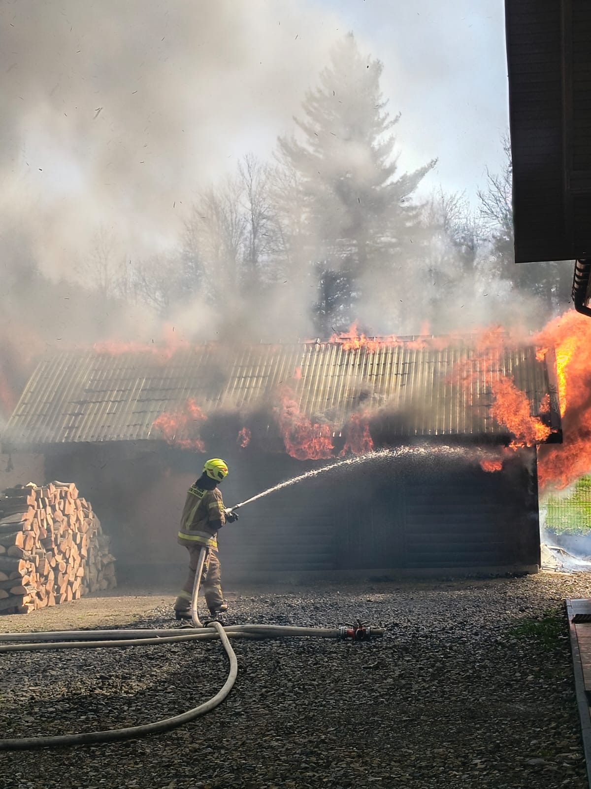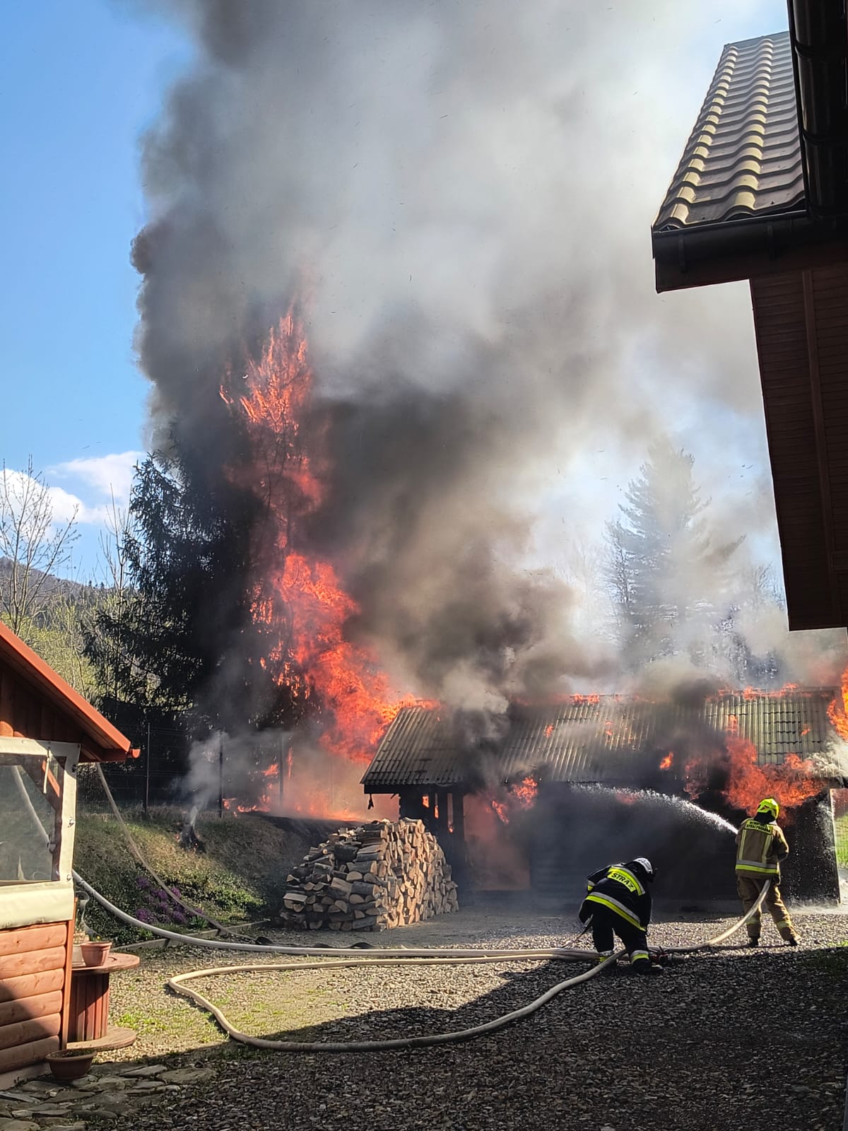 BYSTRE. Dziś, około godziny 15:14, strażacy zostali zadysponowani do pożaru garażu w miejscowości Bystre (gm. Baligród). Po przybyciu na miejsce zastano rozwinięty pożar, który obejmował już cały budynek.