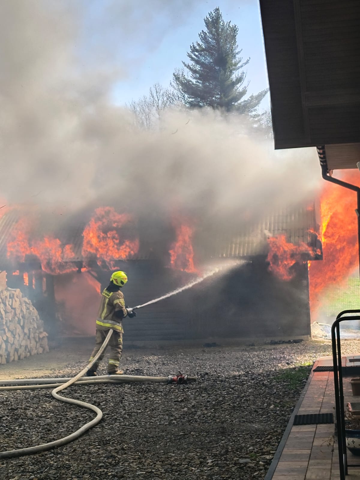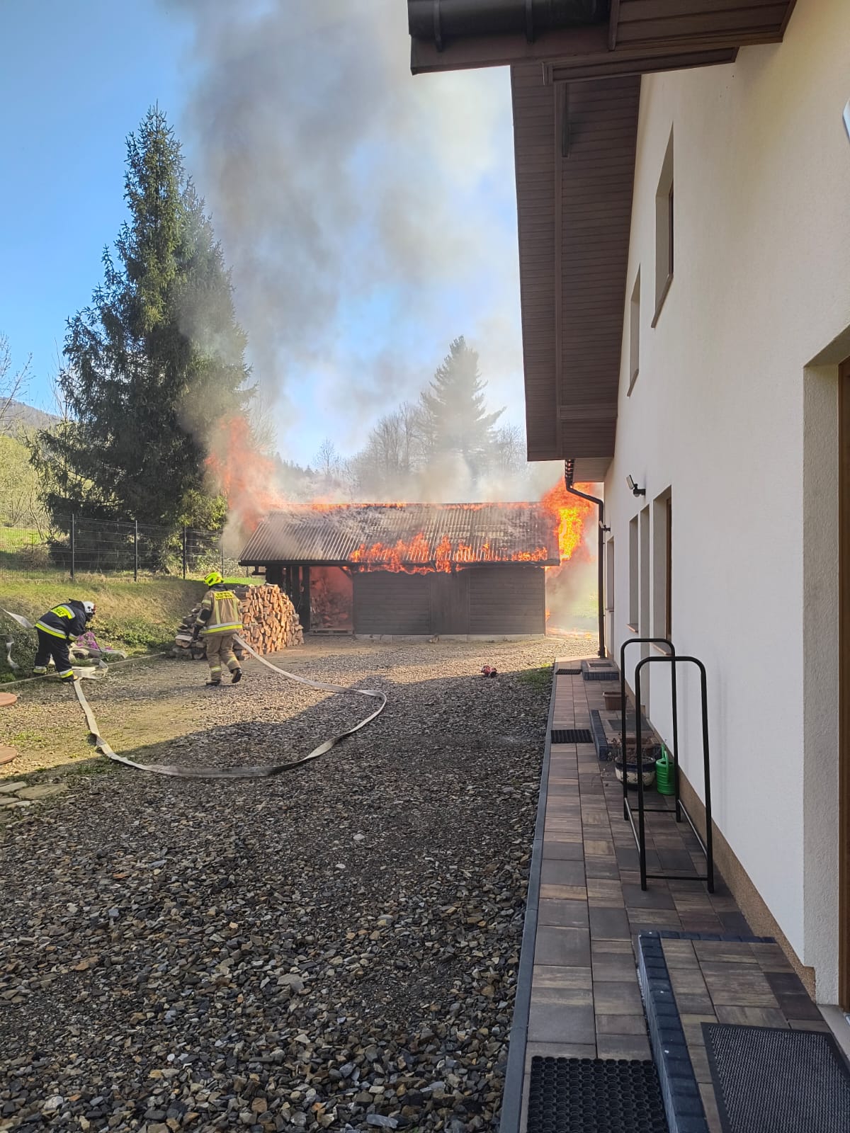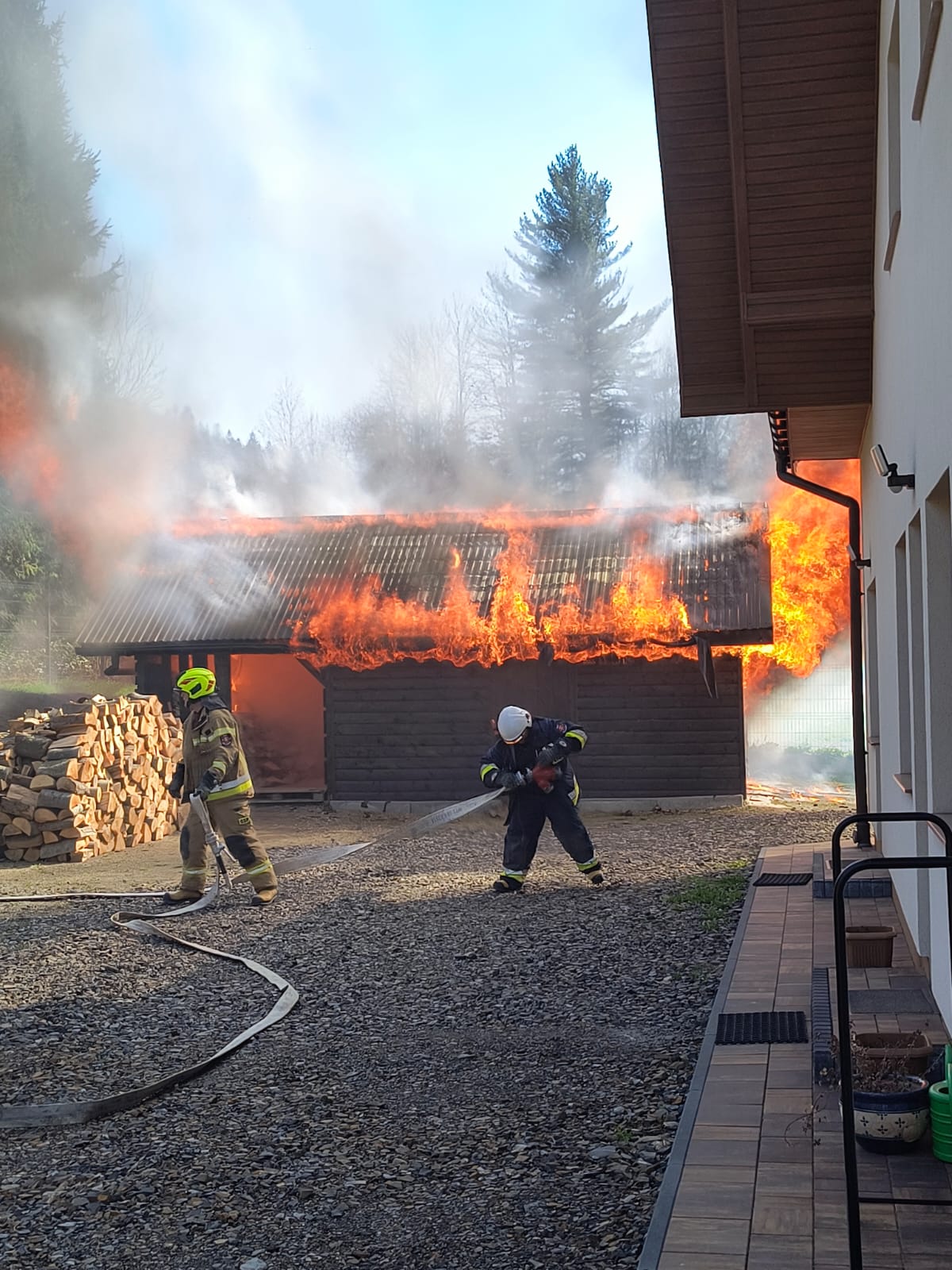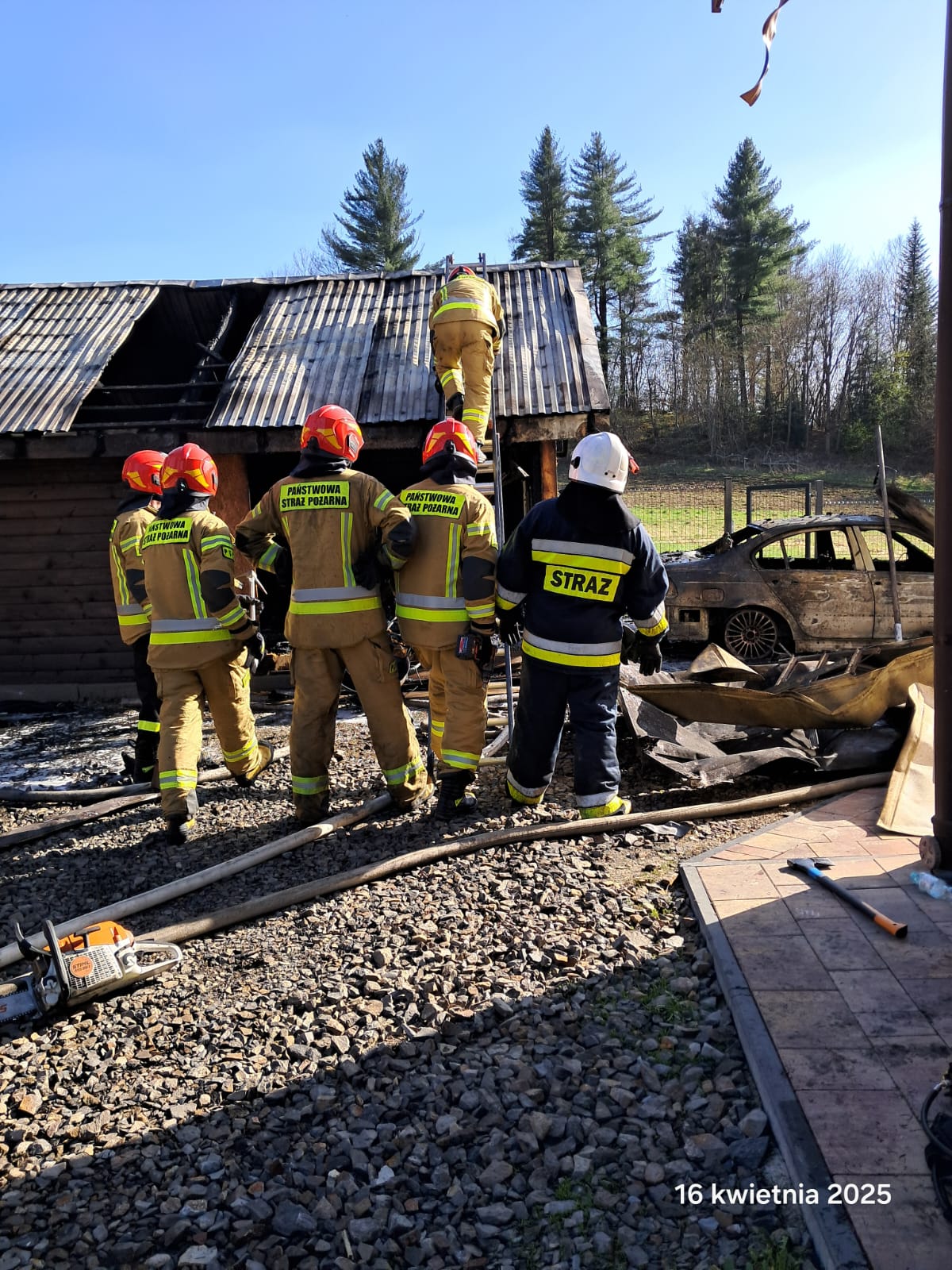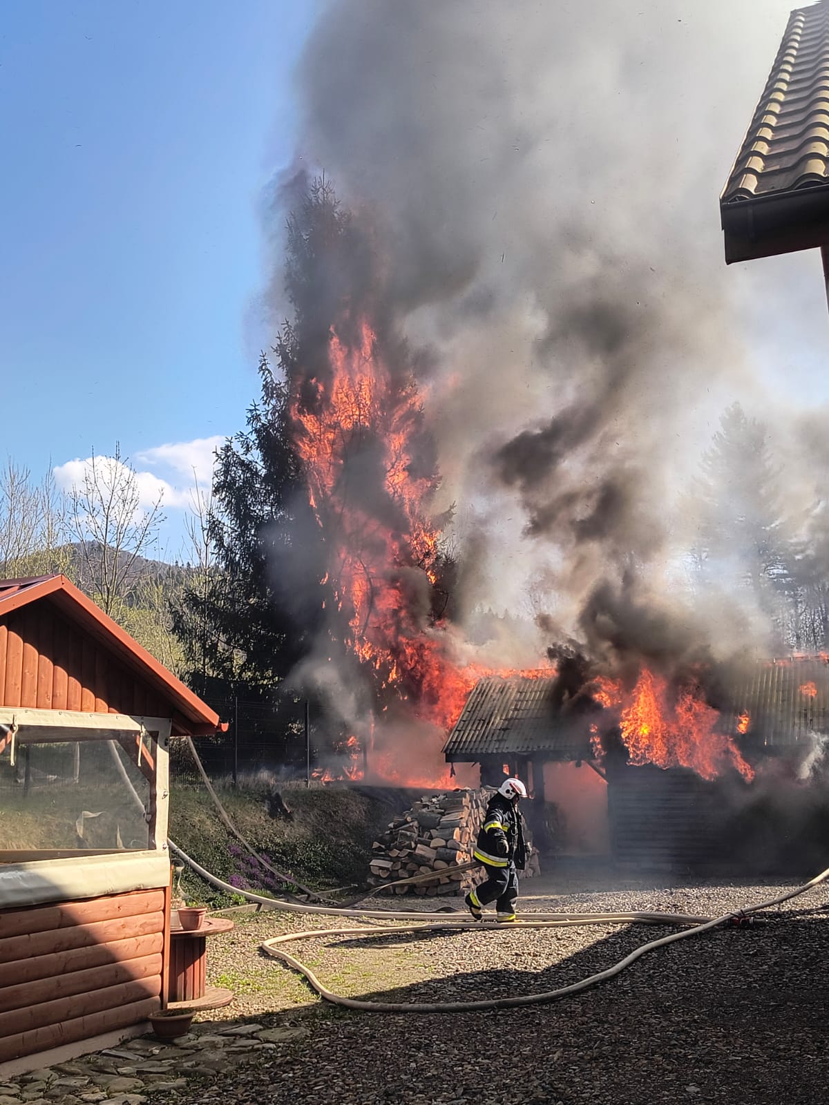 BYSTRE. Dziś, około godziny 15:14, strażacy zostali zadysponowani do pożaru garażu w miejscowości Bystre (gm. Baligród). Po przybyciu na miejsce zastano rozwinięty pożar, który obejmował już cały budynek.