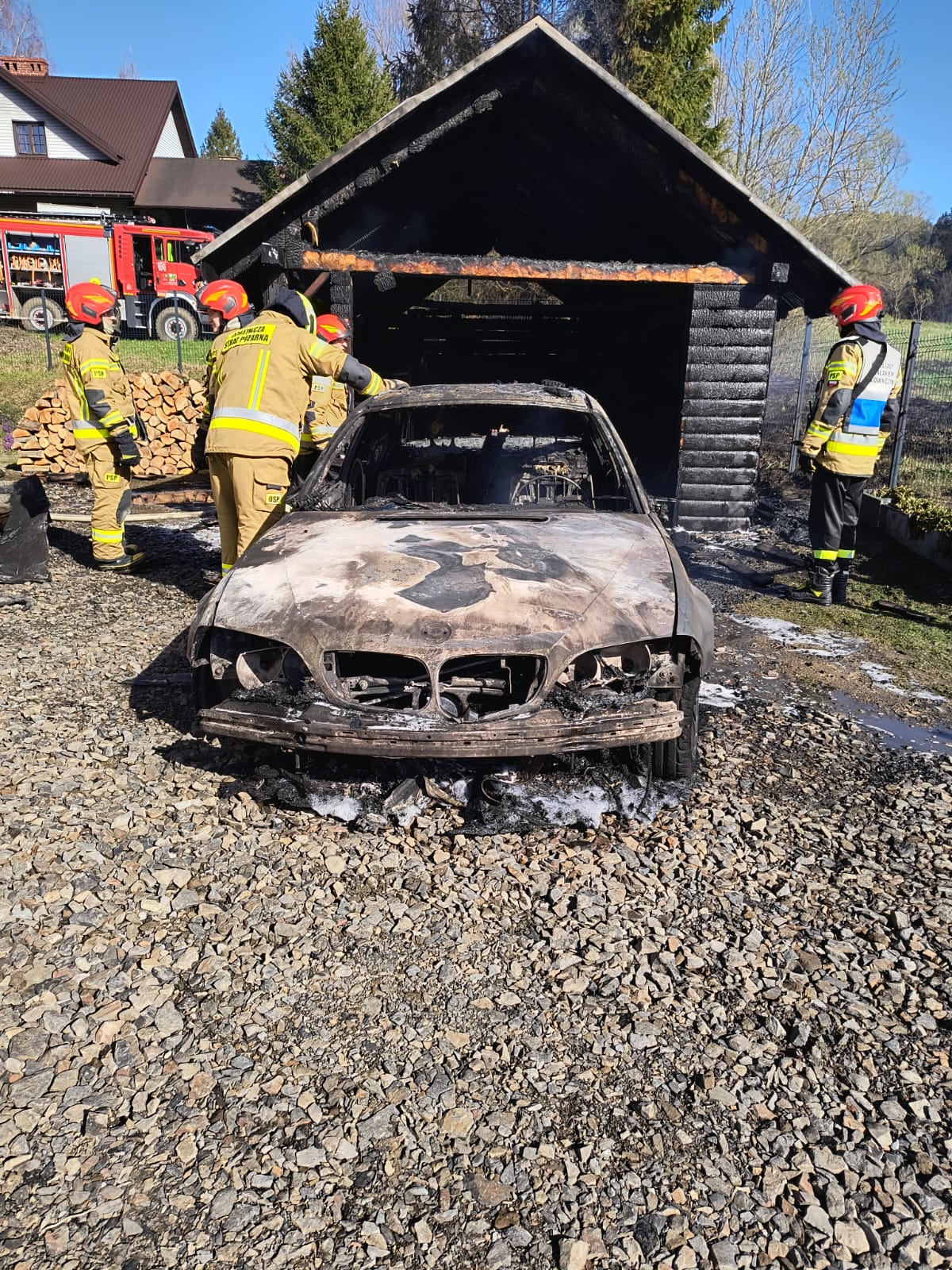 Mimo szybkiej reakcji i intensywnych działań gaśniczych, nie udało się uratować garażu ani znajdującego się w środku samochodu, które spłonęły doszczętnie. Działania strażaków skupiły się przede wszystkim na obronie sąsiednich zabudowań, które były bezpośrednio zagrożone, zwłaszcza z uwagi na silny i zmienny kierunek wiatru.