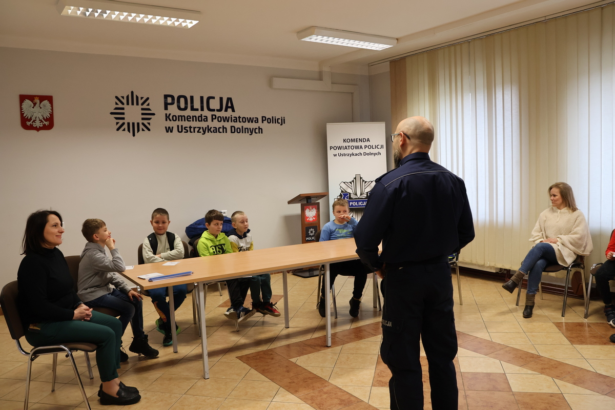 Uczniowie z Ropienki odwiedzili policjantów w Ustrzykach Dolnych