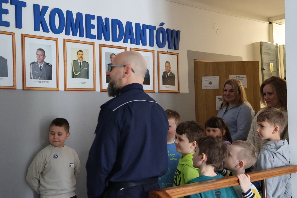 Z dużym zaciekawieniem uczniowie słuchali o zawodzie policjanta i oczywiście chętnie oglądały wyposażenie jakim dysponują. Dzieci miały możliwość przyjrzenia się z bliska policyjnemu radiowozowi, a także zwiedzenia komendy.