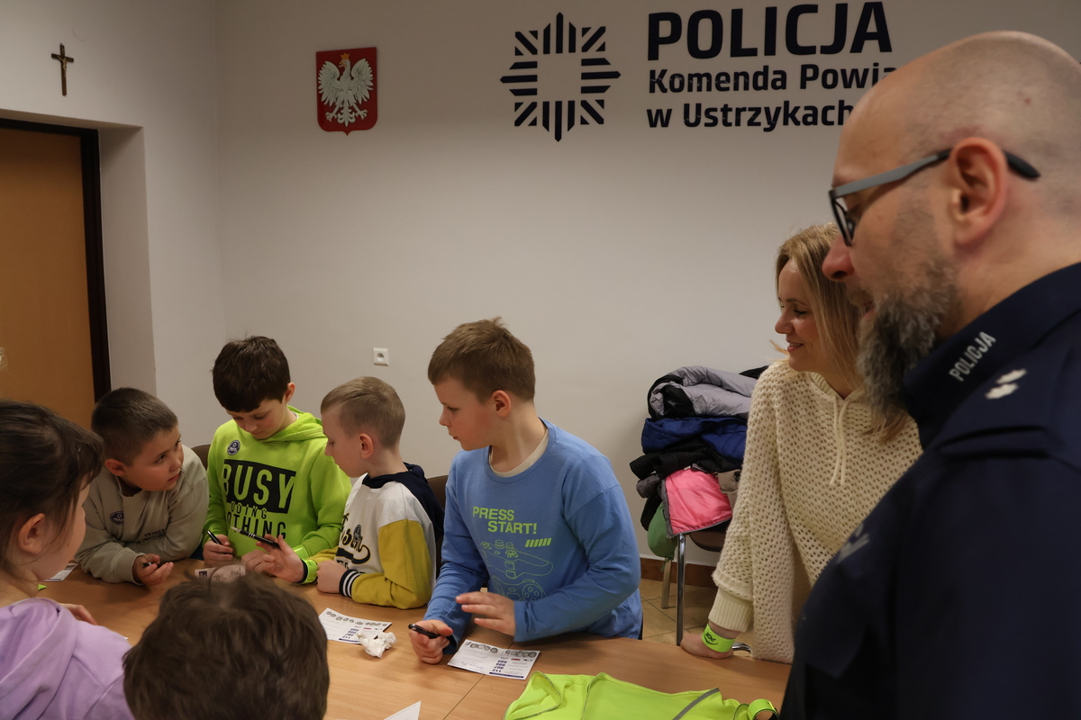 Dzieci ze Szkoły Podstawowej w Ropience wspólnie z opiekunami i rodzicami, we wtorek odwiedzili ustrzyckich policjantów. Funkcjonariusze przypominali o bezpiecznych zachowaniach i odpowiadali na wiele pytań, jakie zadawali im pierwszoklasiści. Każde z dzieci chciało mieć na pamiątkę swoje odciski palców.